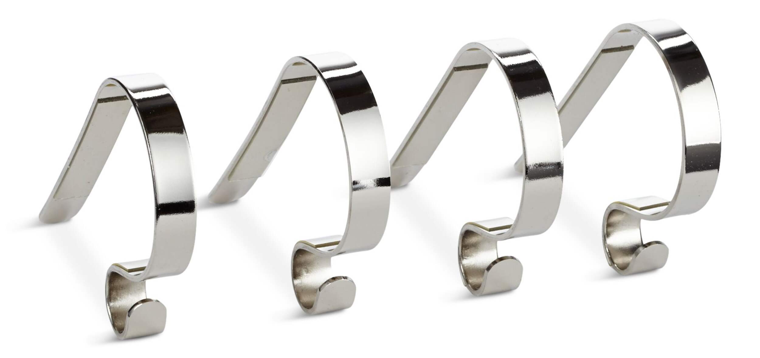 Deck the halls and mantel with ease using The Original Mantle Clip Christmas Decoration Adjustable Stocking Holder. This adjustable stocking holder keeps your Christmas decoration in place with non-slip grippers. Hang stockings securely on the mantel without nails or tape. The steel clips also hang garlands and other holiday décor. With a classic silver finish, these clips add festive flair while protecting your mantel.