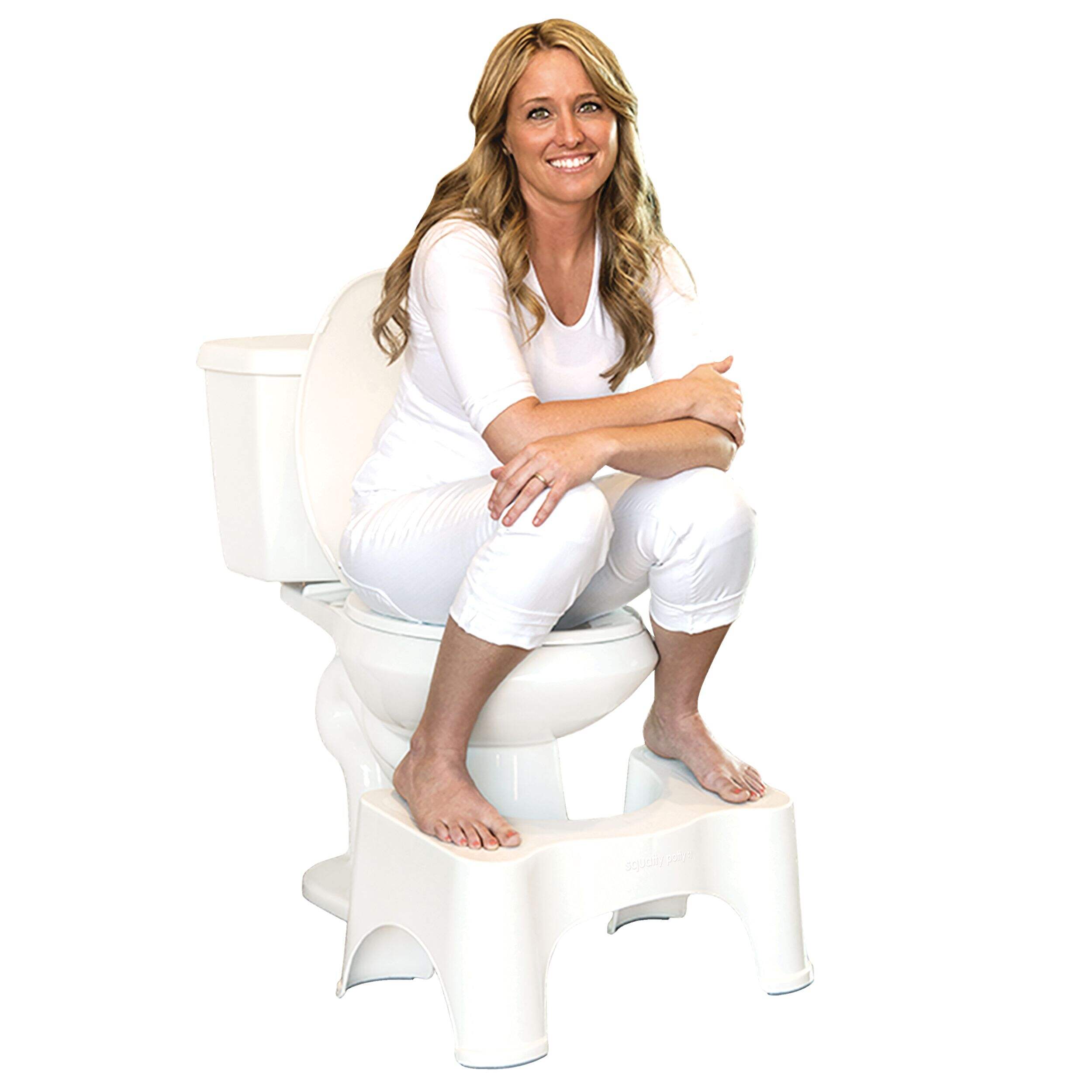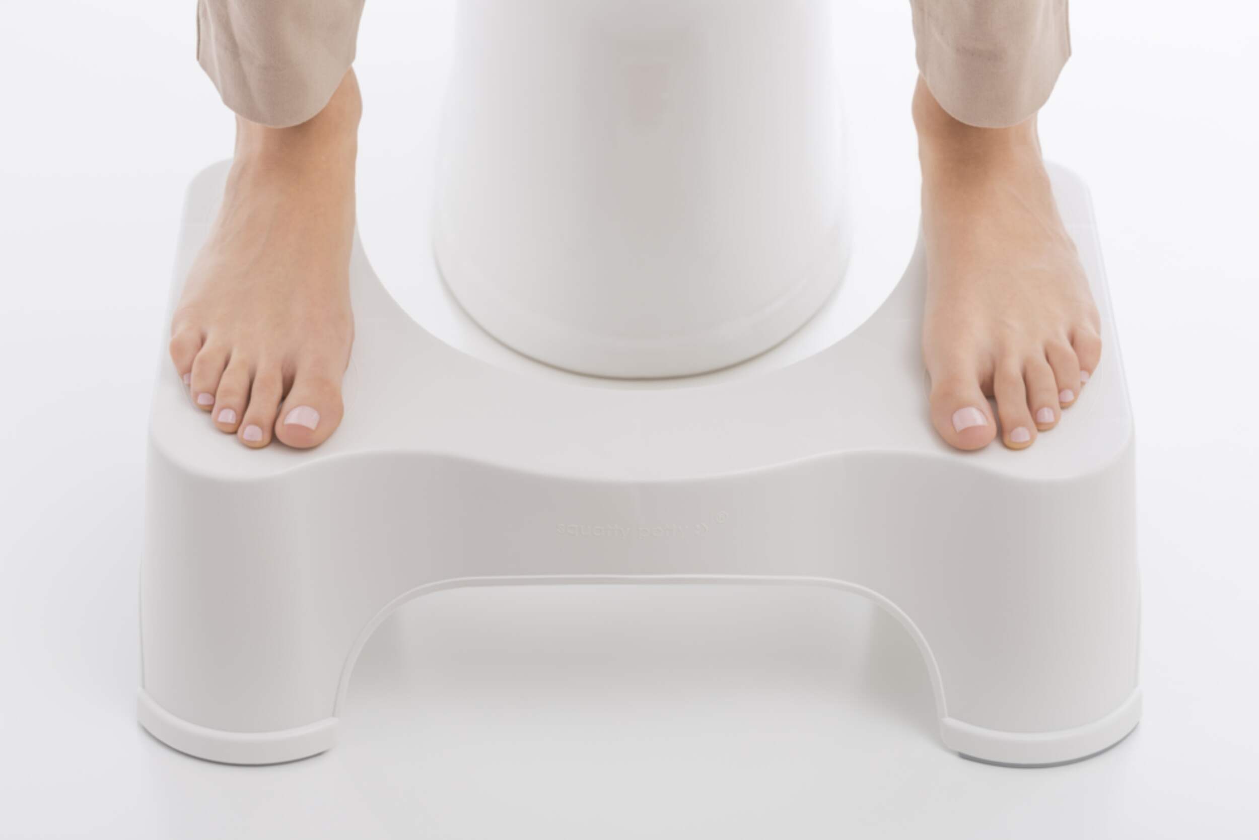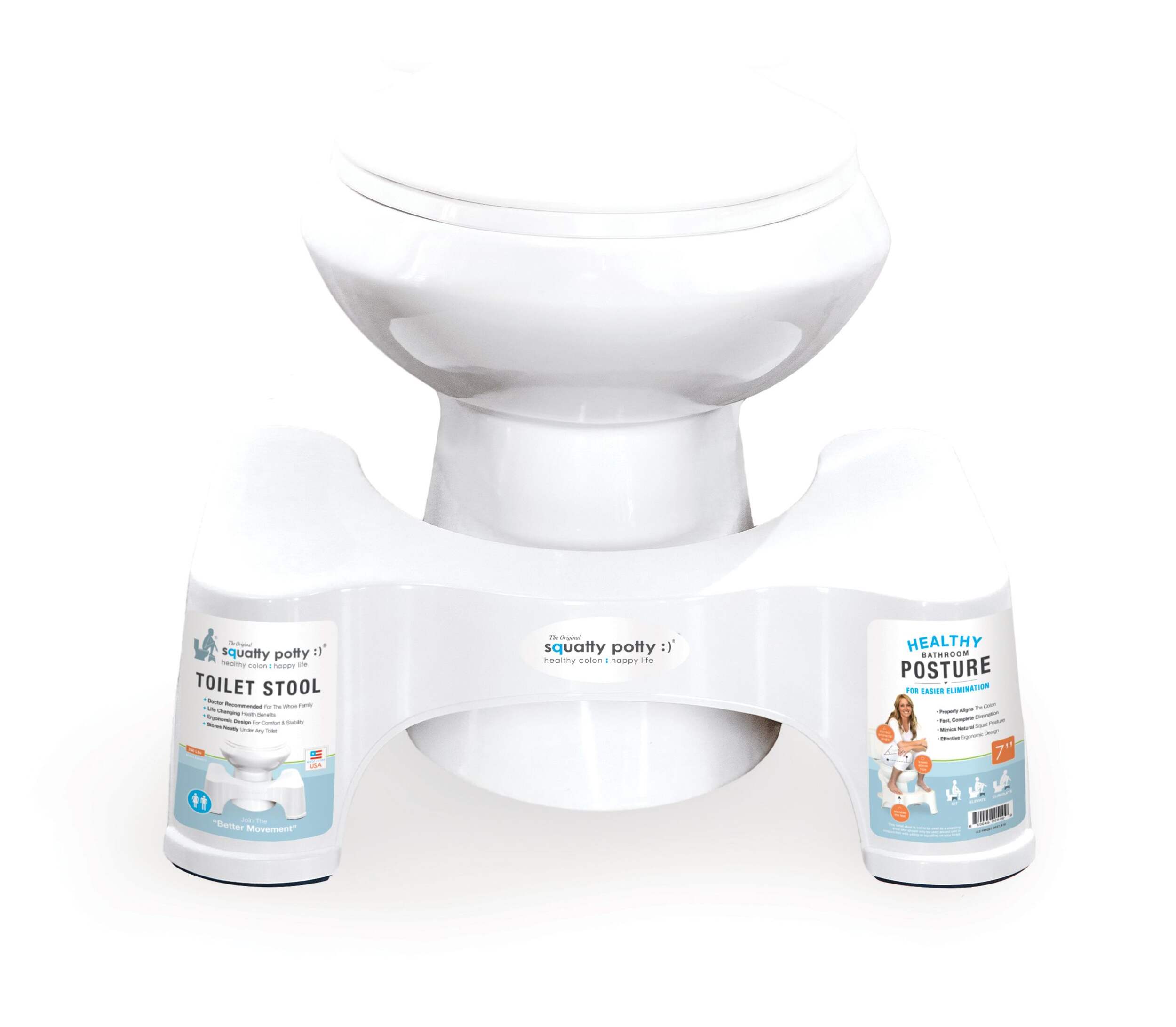 The Original Squatty Potty® Toilet Stool in classic white helps you maintain a natural and healthy posture while using the toilet. Fitting perfectly with standard toilets, it sits snugly against your toilet base, offering a comfortable resting place for your feet. This stool establishes the optimal position for toilet use, promoting overall wellness, with a stylish design suitable for a variety of bathroom decors.