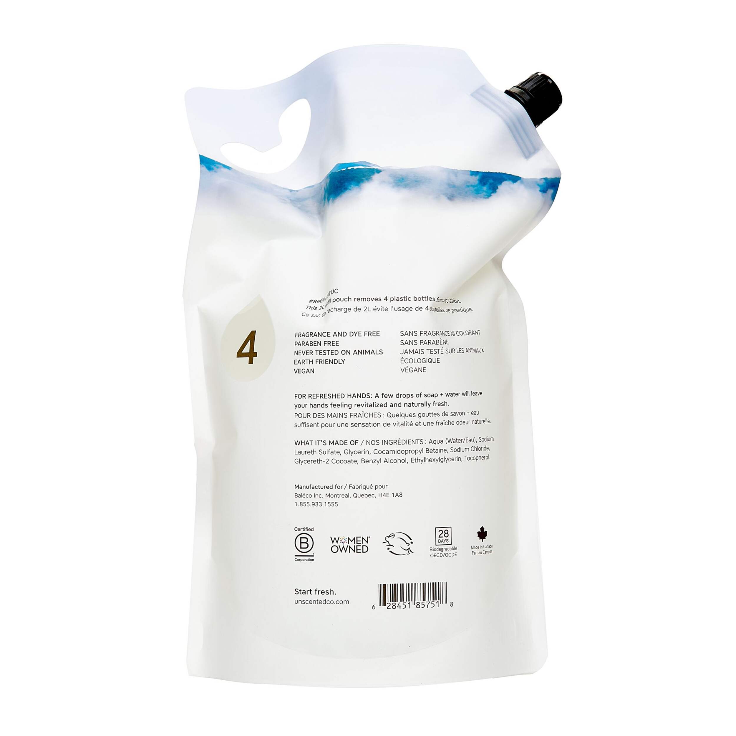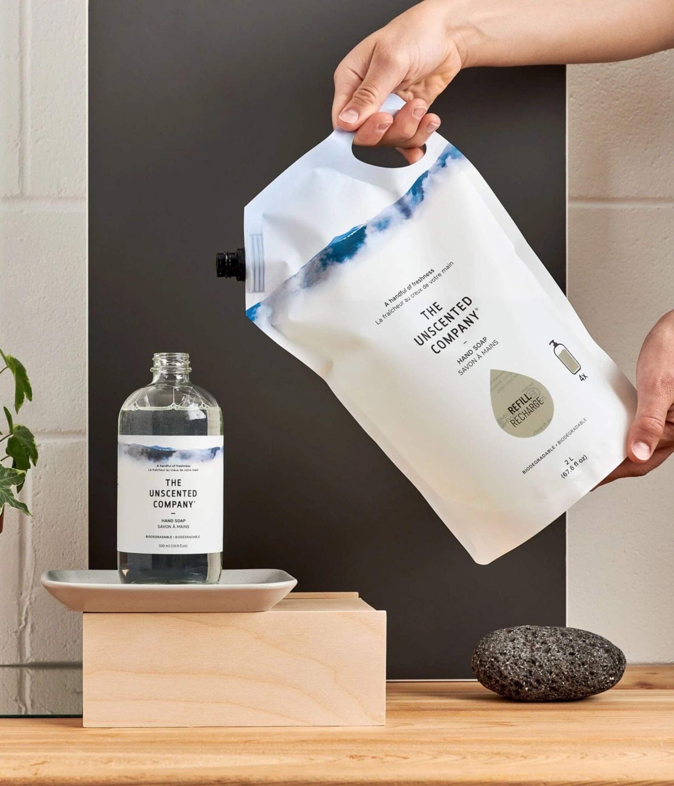 The Unscented Company Hand Wash Refill Bag removes 4 plastic bottles from circulation