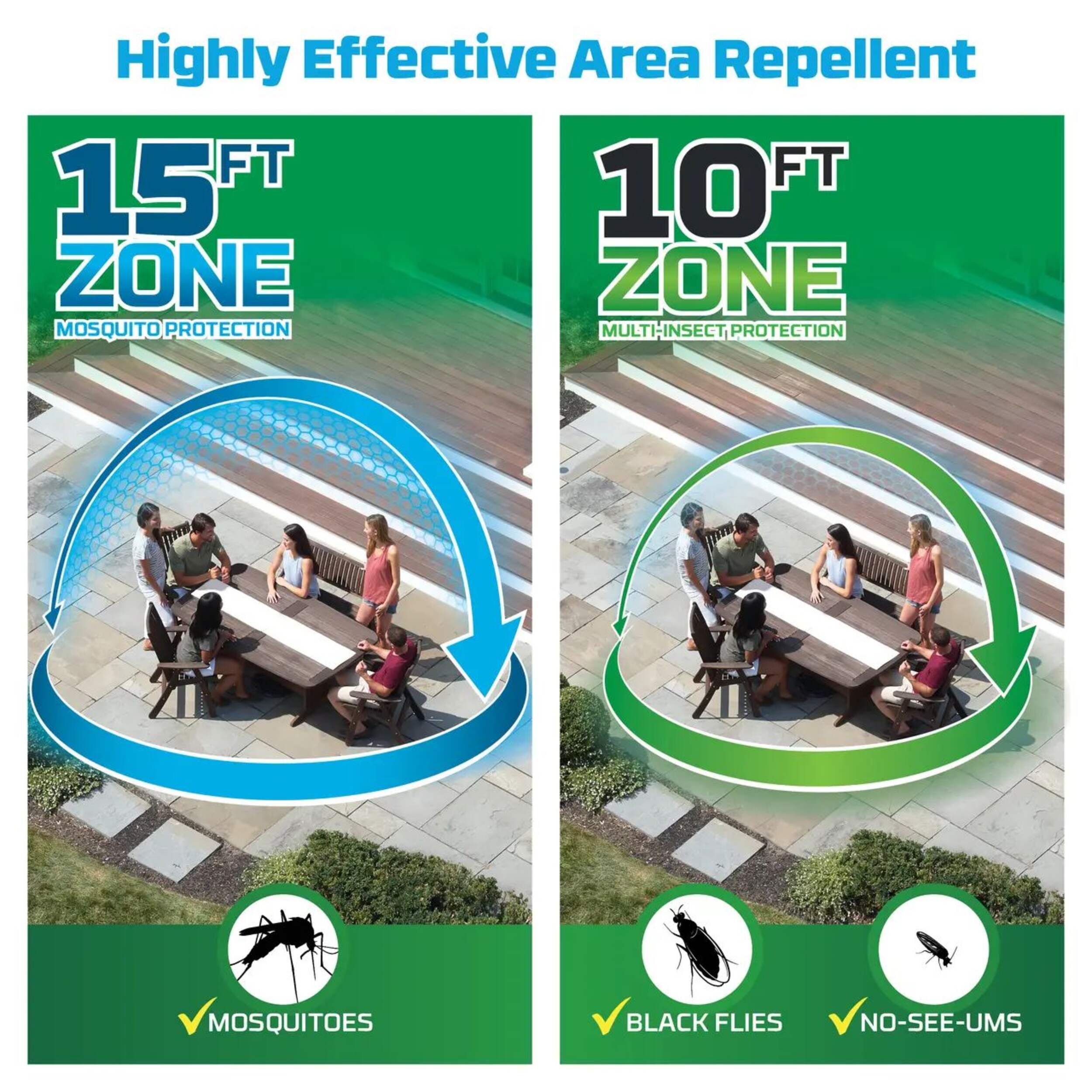 Creates a 15 ft (4.5 m) zone of protection against mosquitoes