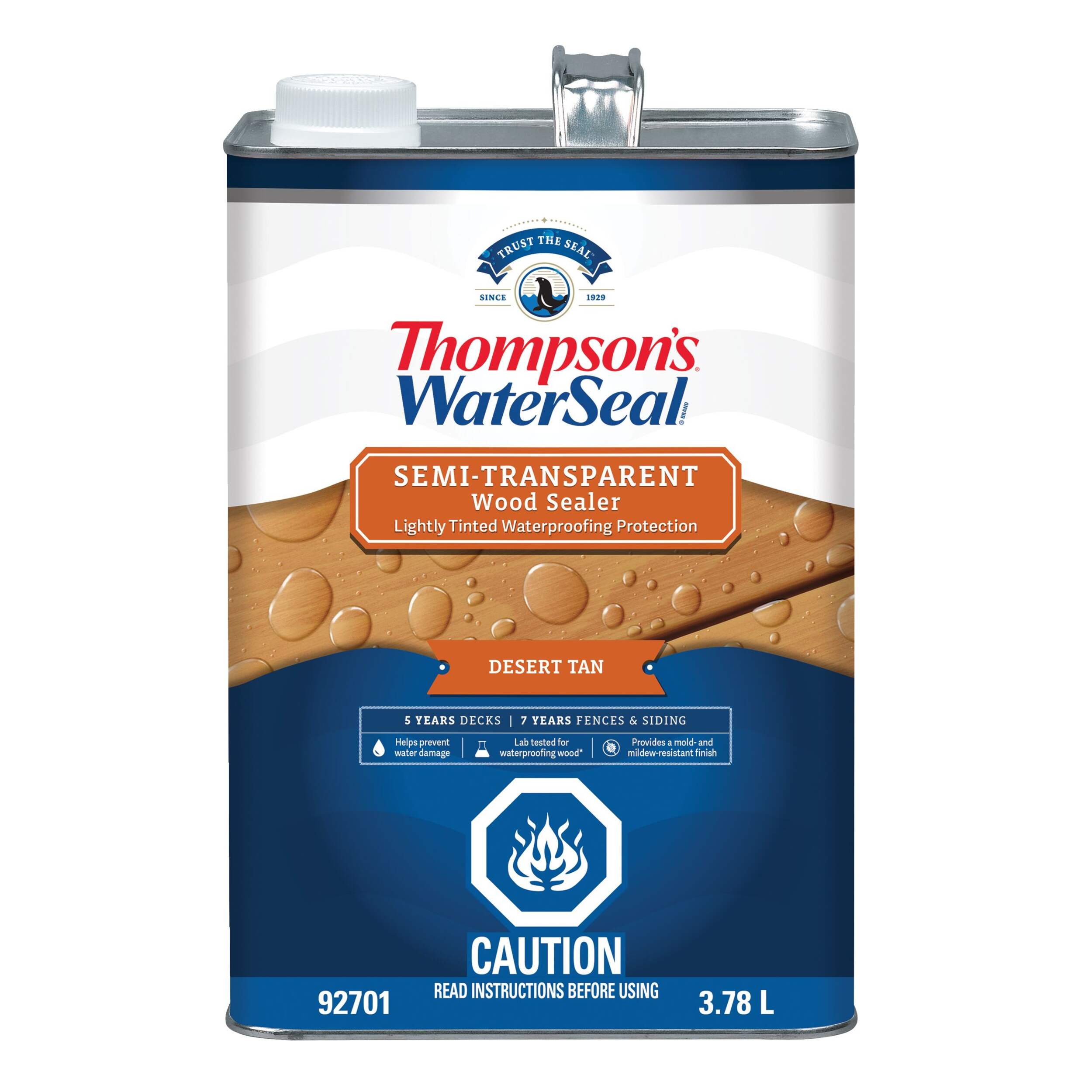 Protect outdoor wood with Thompson's WaterSeal® Semi-Transparent Exterior Wood Sealer and Waterproofer. This easy-to-apply sealant provides protection for all exterior wood surfaces, so it is ideal for decks and fences. With just one coat, you can protect wood from mould, mildew, sun damage and water. Exceeding industry standards for waterproofing wood, this Thompson's semi-transparent formula protects and allows the natural wood grain to show.