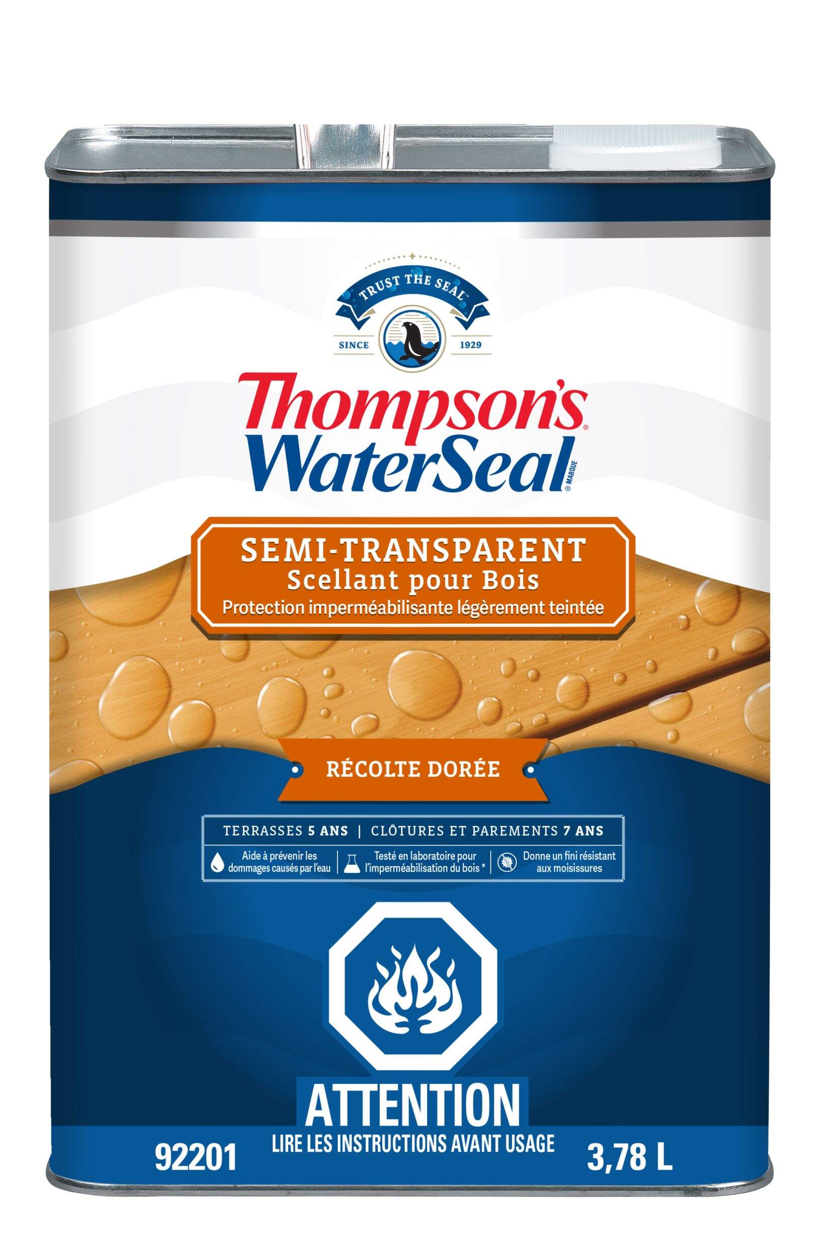 Thompson's WaterSeal® Semi-Transparent Exterior Wood Sealer & Waterproofer in Harvest Gold offers lasting protection and beauty for your outdoor wood projects. Its one-coat coverage shields against water and sun damage while resisting mould and mildew for low-maintenance care. Perfect for decks, fences, and more, this wood sealer helps ensure durable, weather-resistant performance to keep your outdoor spaces looking great.