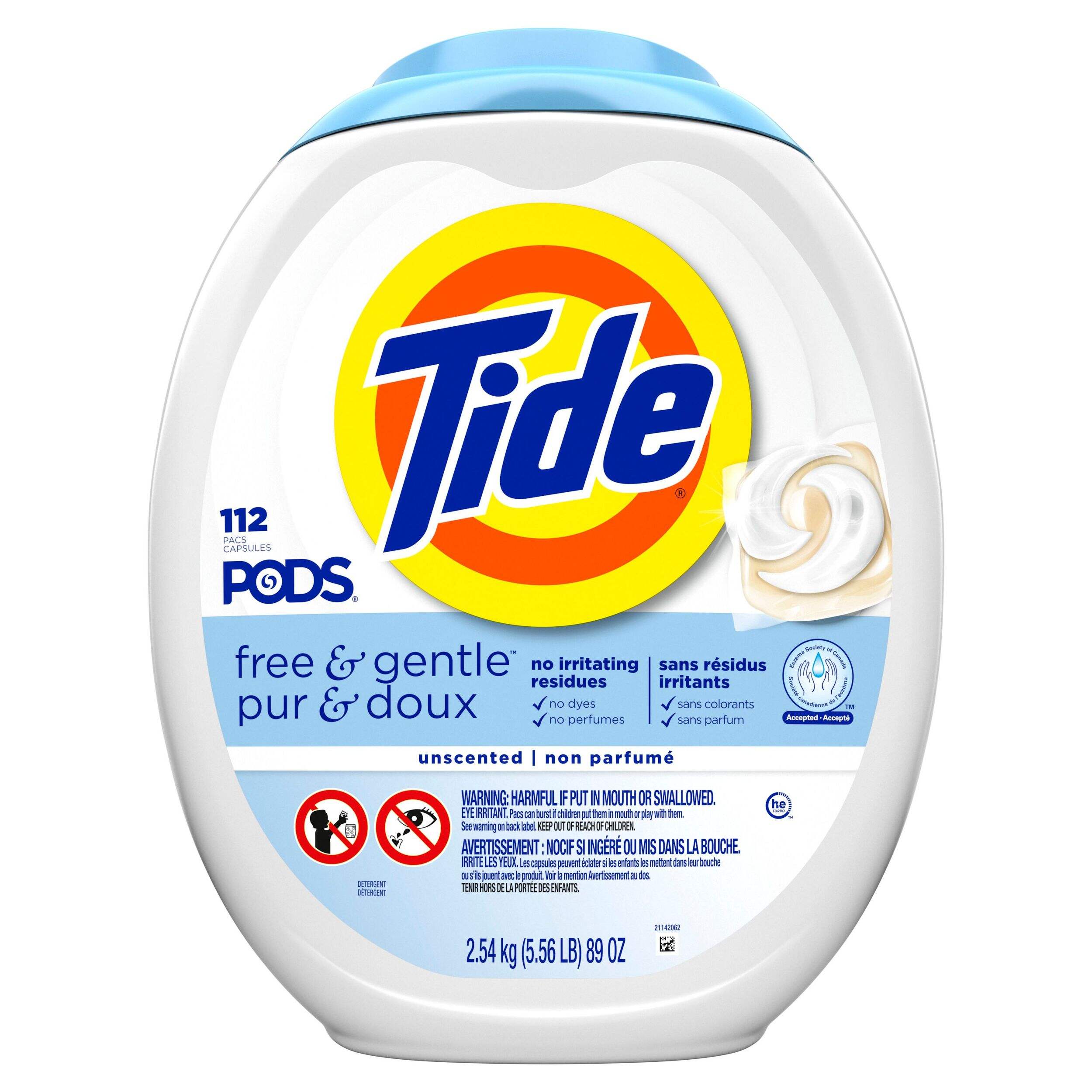 By combining concentrated detergents, powerful stain removers, and colour protectors into a convenient laundry pac, Tide PODS 3-in-1 Free and Gentle Liquid Laundry Detergent Pacs provide the clean you need. Tide 3-in-1 PODS work in any machine, HE or not, and are designed to provide a deep cleaning that's gentle on skin. Simply place a pod in the drum of your washing machine before adding clothing and you’re good to go. Get the clean of Tide laundry detergent with the convenience and confidence of Tide PODS in every load, every time, for every family.