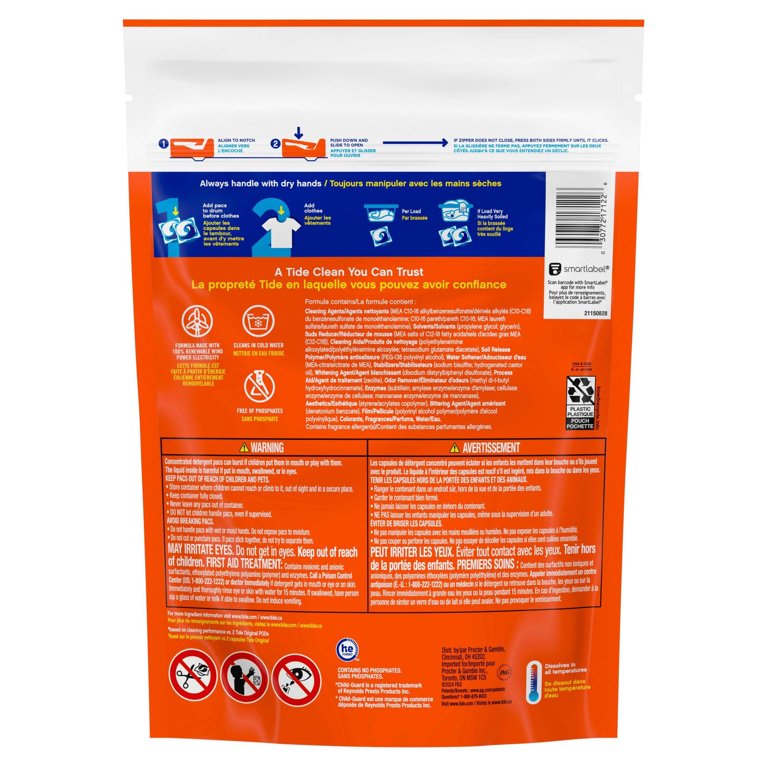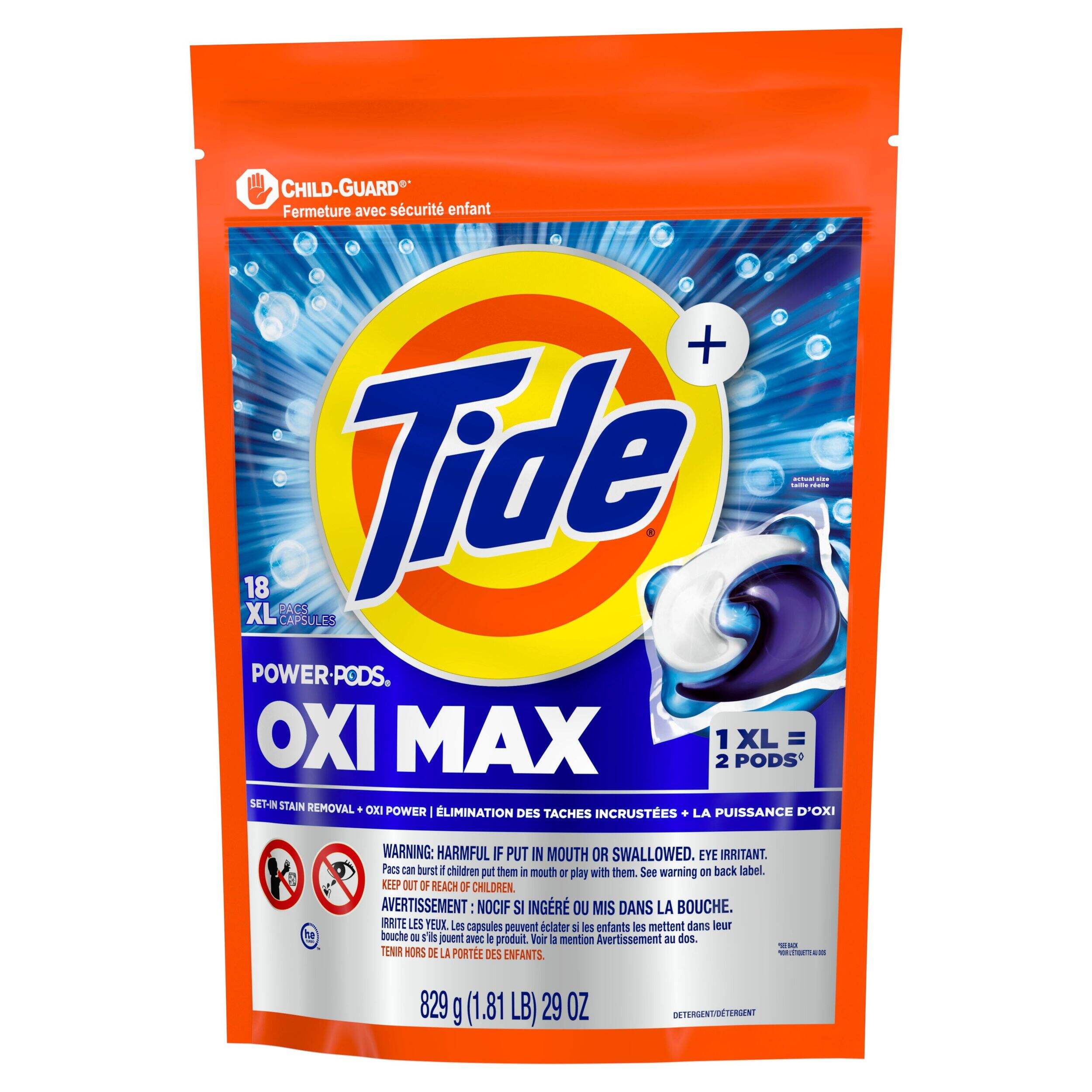 With 10x cleaning power and built-in pre-treaters, Tide PODS® Ultra OXI removes even the toughest stains. It’s the 4-in-1 laundry solution with detergent, stain remover, colour protector, and built-in pre-treaters for next-level stain fighting. The special film enables the multi-chamber technology to dissolve in both hot & cold water, while the quick-collapsing Smart Suds™ target tough stains and work in both HE and standard washing machines.