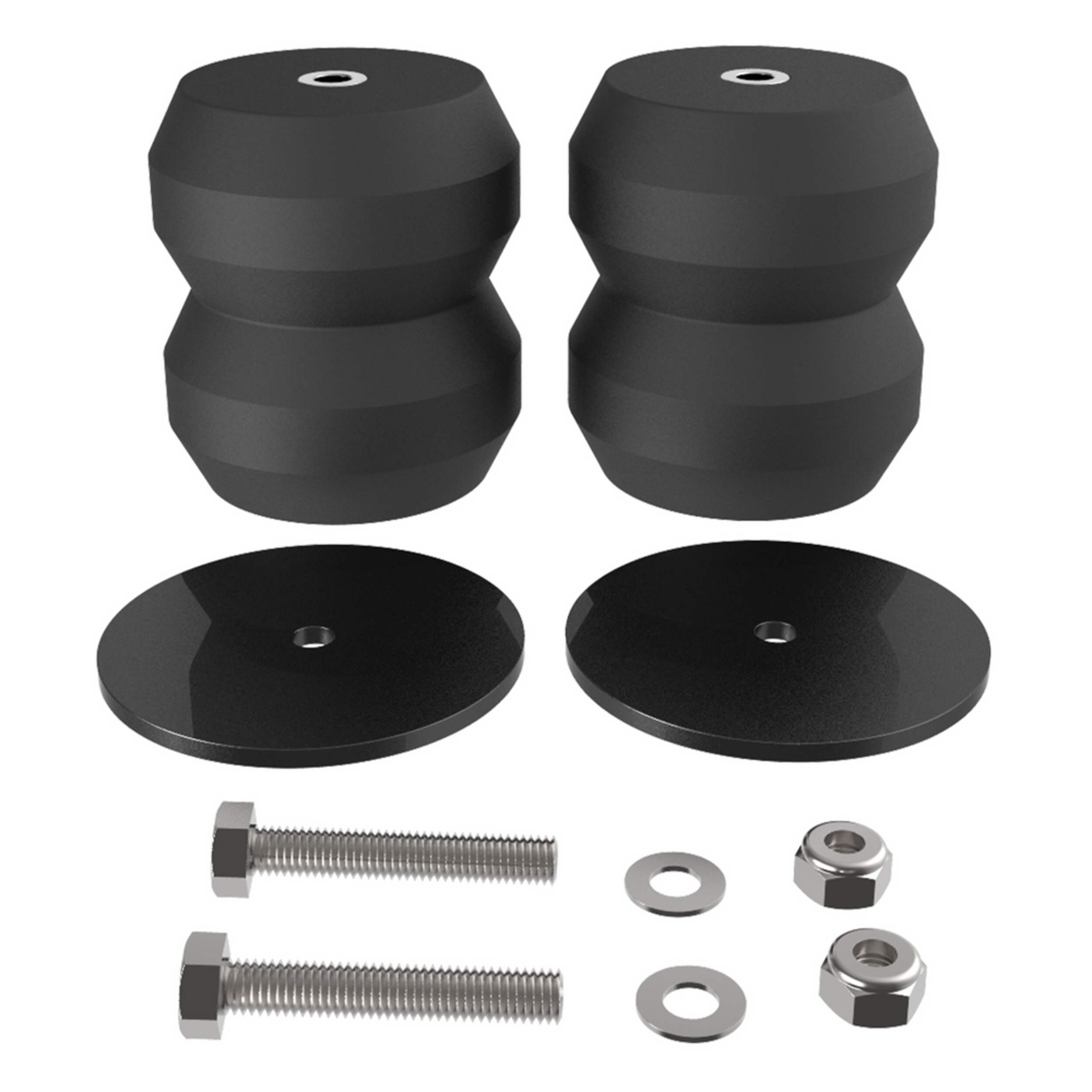 Timbren Rear GM Suspension Upgrade helps level and stabilize your vehicle from the rear axle up. The hollow rubber springs absorb road shock to provide a smooth, comfortable ride while improving roll stability over bumps. An easy addition that requires simple installation, the suspension upgrade helps maintain an even keel on long highway trips or daily commutes.