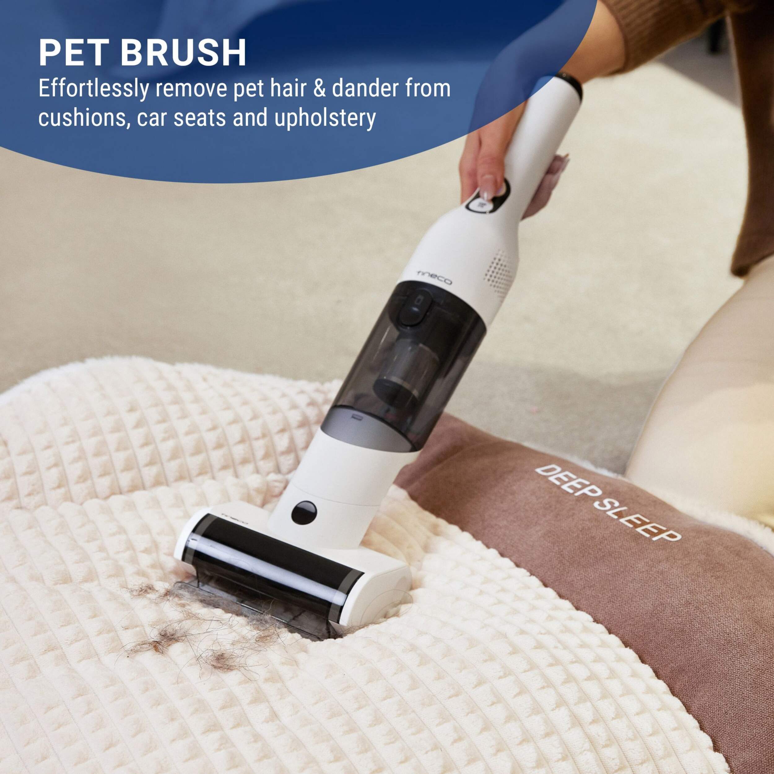 Introducing the Tineco GO MINI PET, the ultimate handheld vacuum cleaner designed for quick cleanups on any surface, from home to car. This lightweight, portable handvac, weighing less than 4 lbs, is perfect for pet owners. Equipped with a specialized Pet Brush, it effortlessly removes pet hair and dander from couch cushions, car seats, and upholstery. With cordless convenience and up to 20 minutes of battery life per charge, it’s ideal for spot cleaning and small spaces. Enjoy whisper-quiet operation and MAX mode for boosted suction on tougher messes. Experience the power and versatility of the Tineco GO MINI PET today!