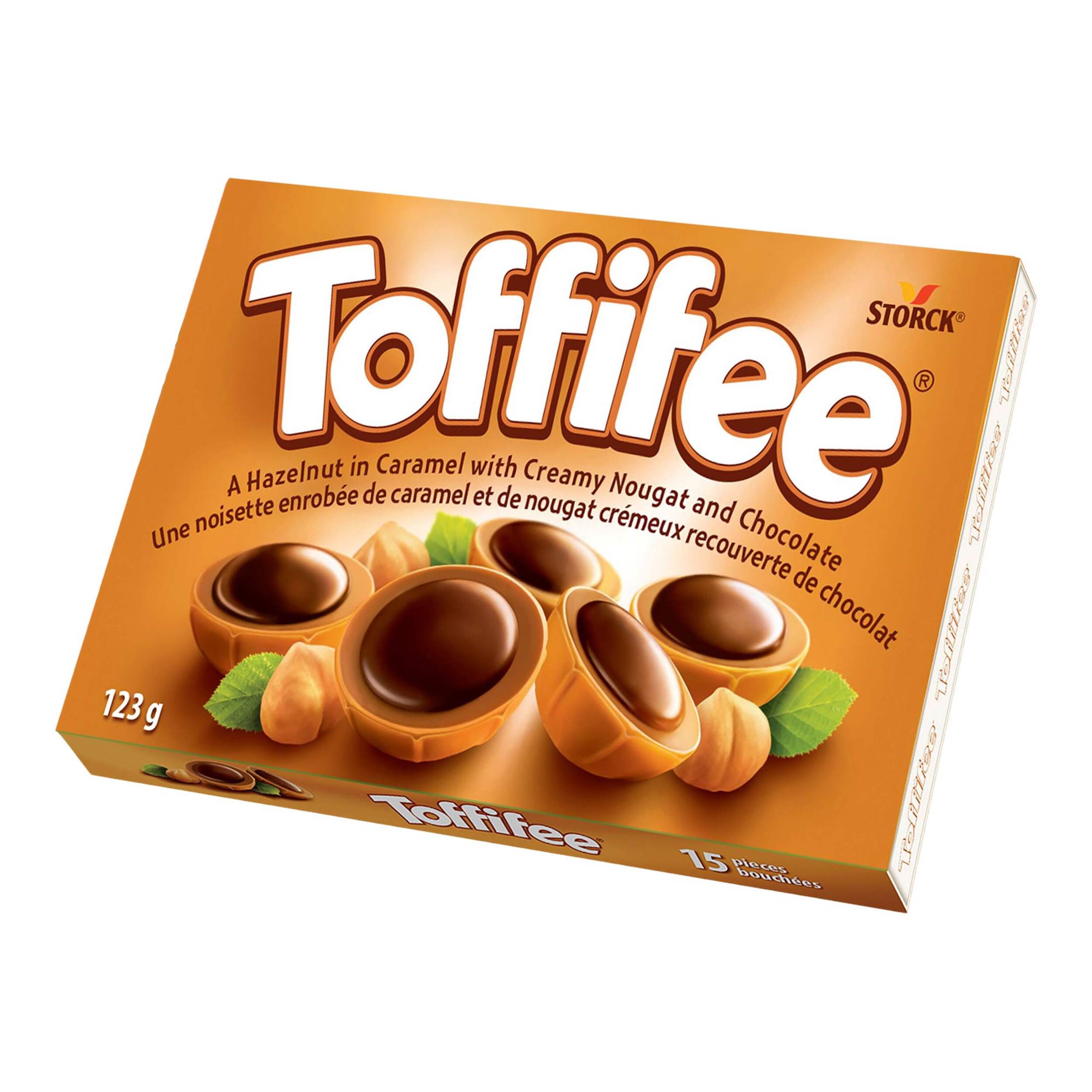 Toffifee® 123g is the unique treat that has something for everyone: a roasted hazelnut in a delicious caramel shell, smooth and creamy nougat filling, plus a drop of rich dark chocolate! Toffifee® 123g is the everyday pack, with 15 pieces of delicious Toffifee, that you can enjoy all on your own! Made in Germany and enjoyed in Canada for 30+ years...There is so much fun in Toffifee!