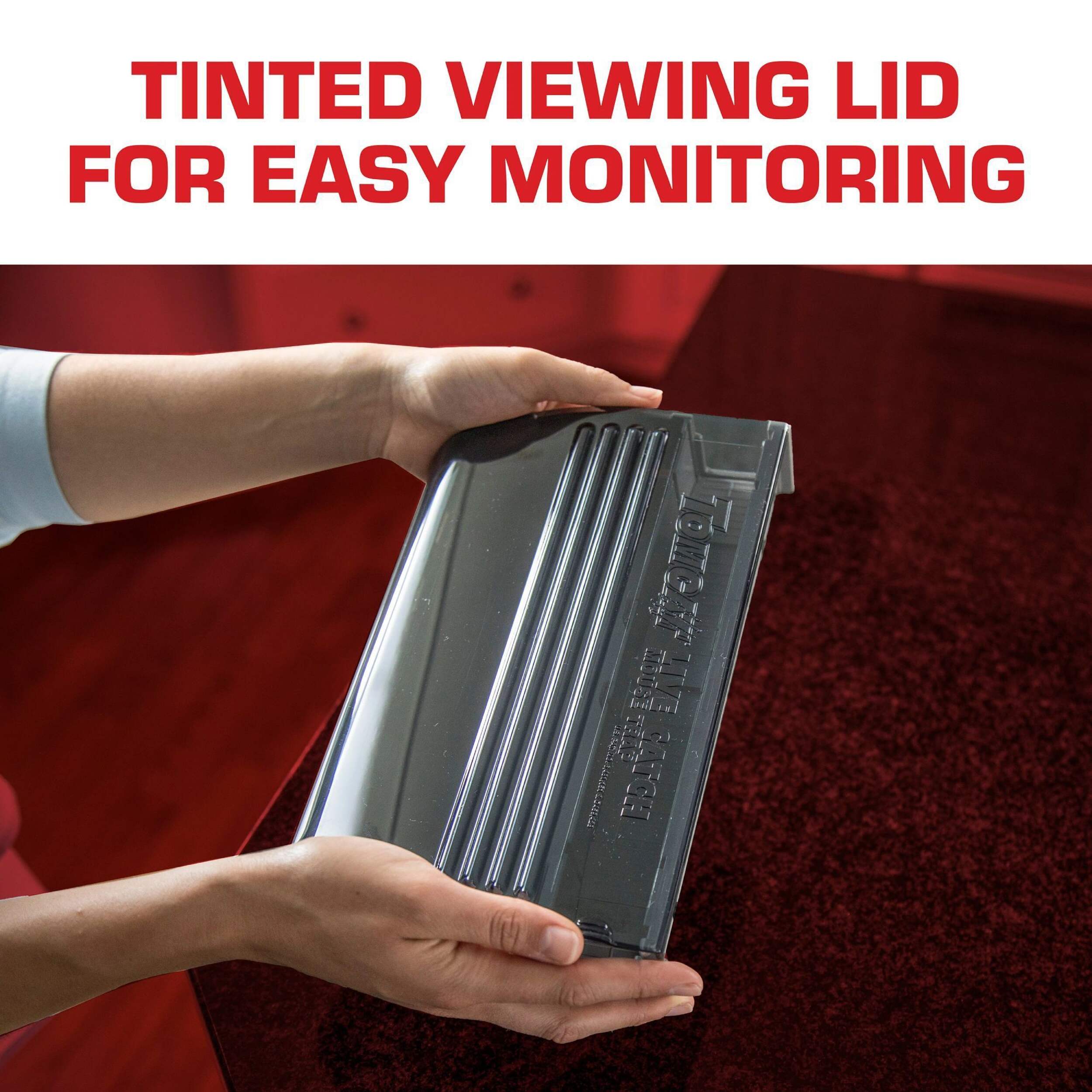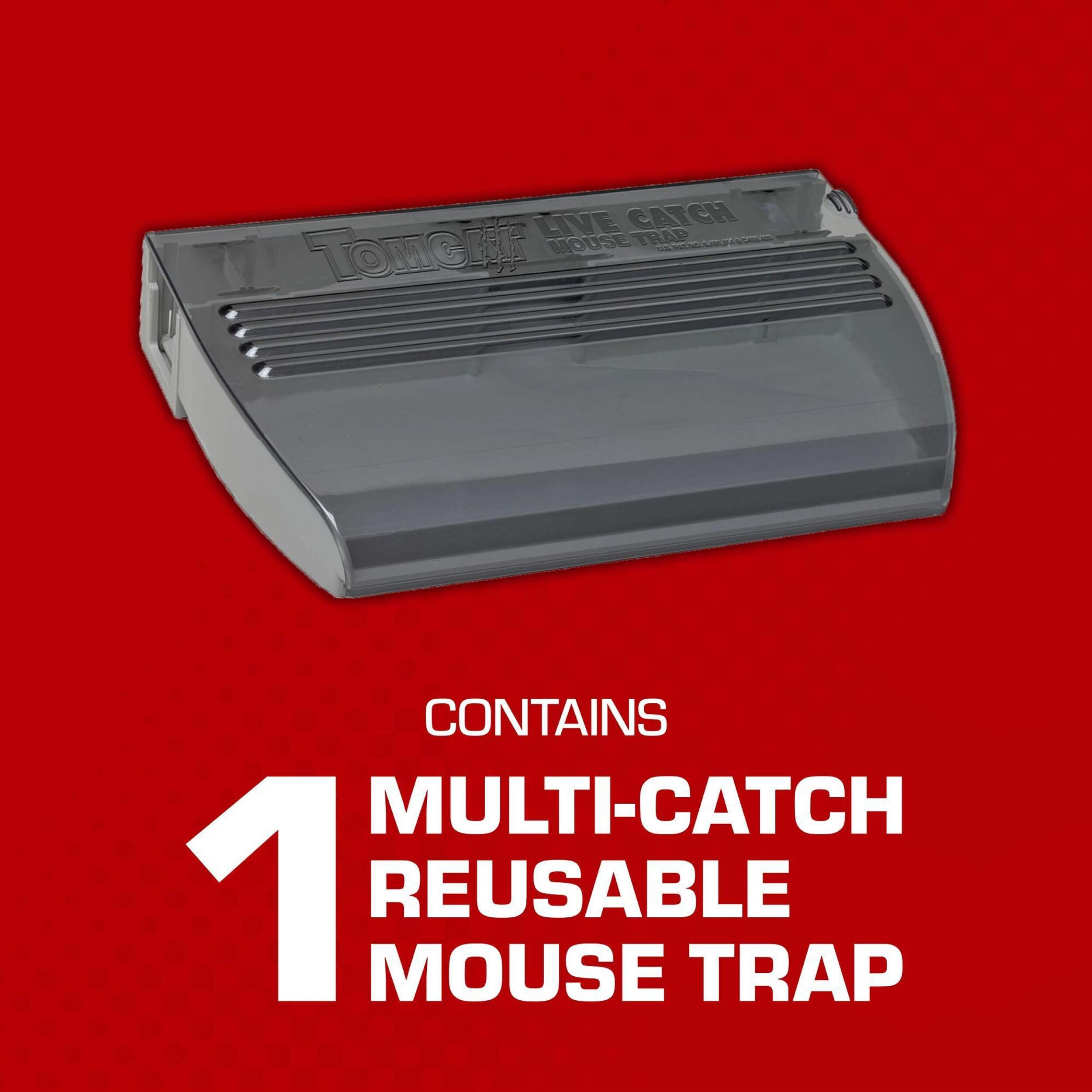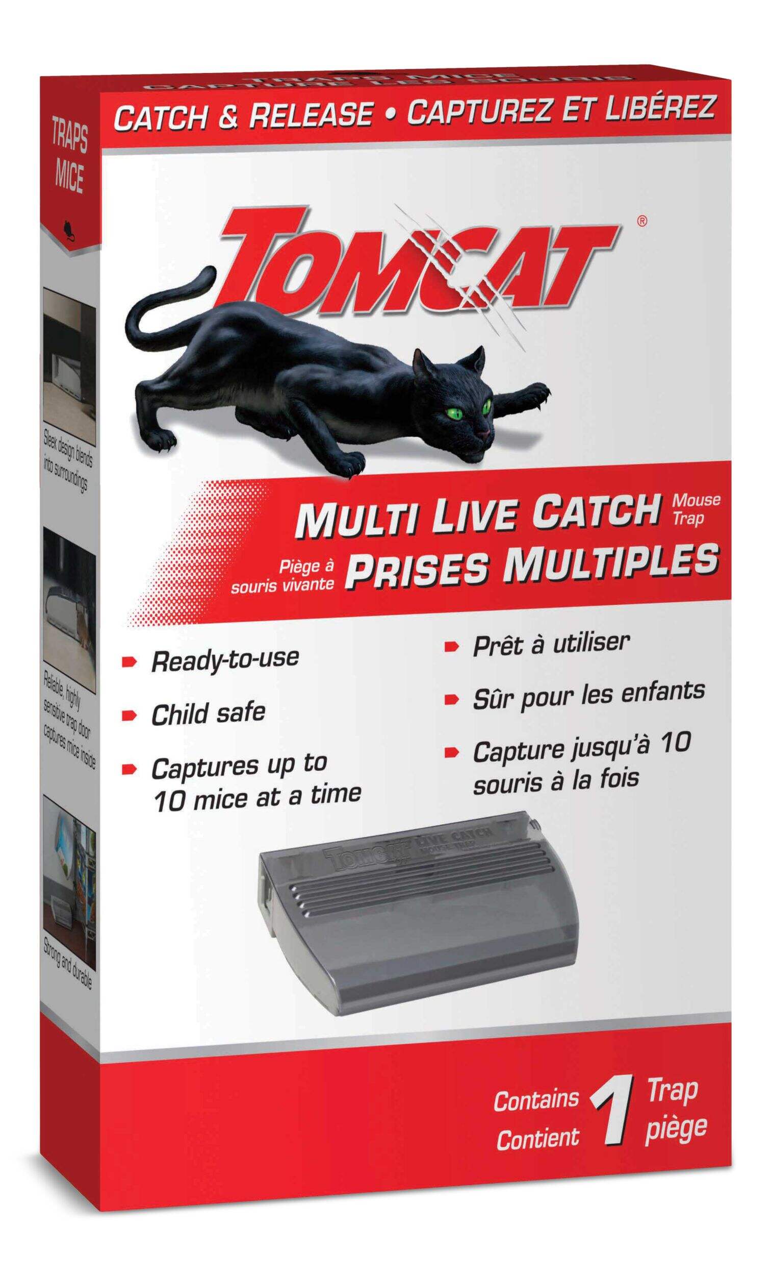 The Tomcat Live & Catch Humane Mouse Trap offers a humane way to catch and release unwanted mice. This reusable trap can hold up to 10 mice at once, minimizing the need for constant monitoring. The durable plastic construction and safe trap door design make it harmless for children and pets. The tinted viewing window allows for easy checking to see when mice have been caught. With its spacious capacity and childproof build, Tomcat trap is the hassle-free, humane solution for catching mice and releasing them unharmed.