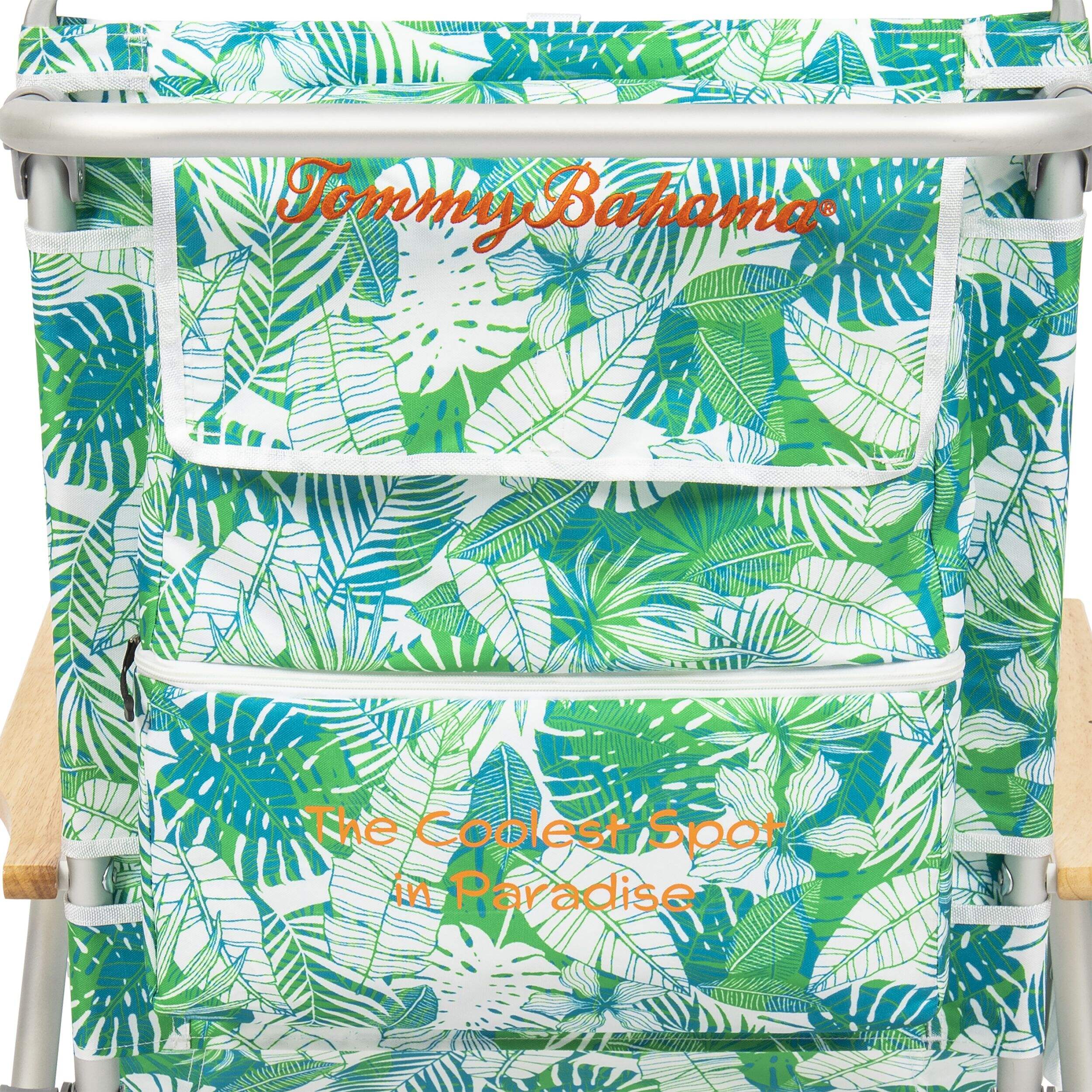 The Tommy Bahama Classic 5-Position Folding Backpack Beach Adjustable Chair with Cup Holder is a multi-color reclining beach chair with a cooler and cup holder. Its durable rust-proof aluminum frame is lightweight and easy to carry. The portable folding design is ideal for tanning. The chair includes a mesh pouch on the side to store your keys, phone, and wallet. With five reclining positions, this classic lay-flat backpack beach chair offers comfortable seating options.
