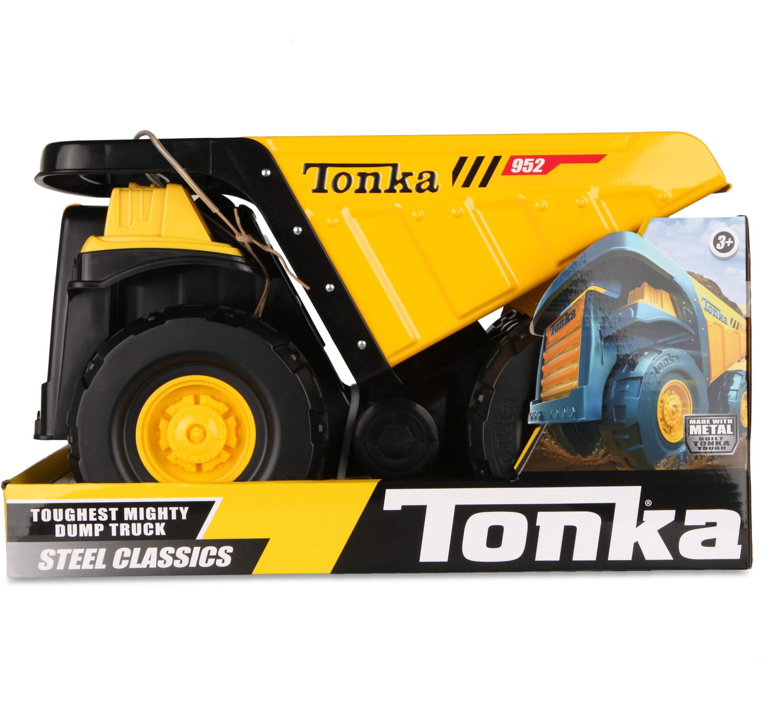 Get your child away from their screen and back to real play with this Tonka Steel Classics Toughest Mighty Dump Truck Toy. Featuring a durable construction that's built to last, this toy dump truck can withstand even the toughest play. With a movable truck bed, kids can load, haul then tilt to dump sand, rocks or anything else they can imagine for hours of play. This classic toy makes a great gift for any child.