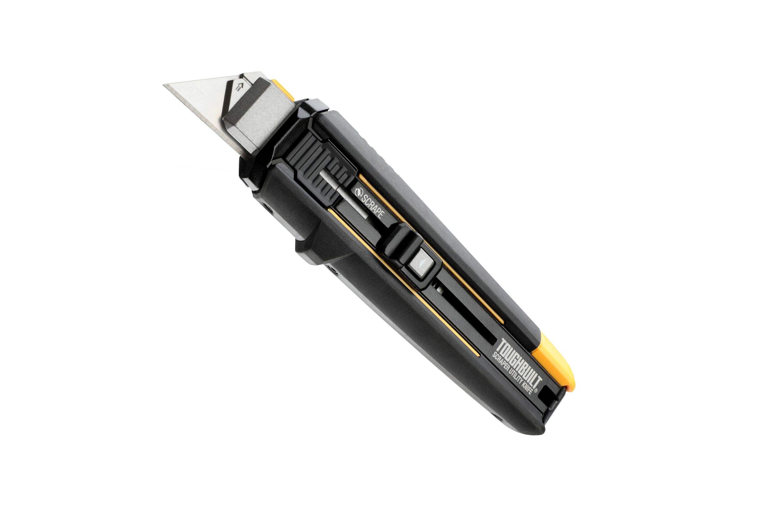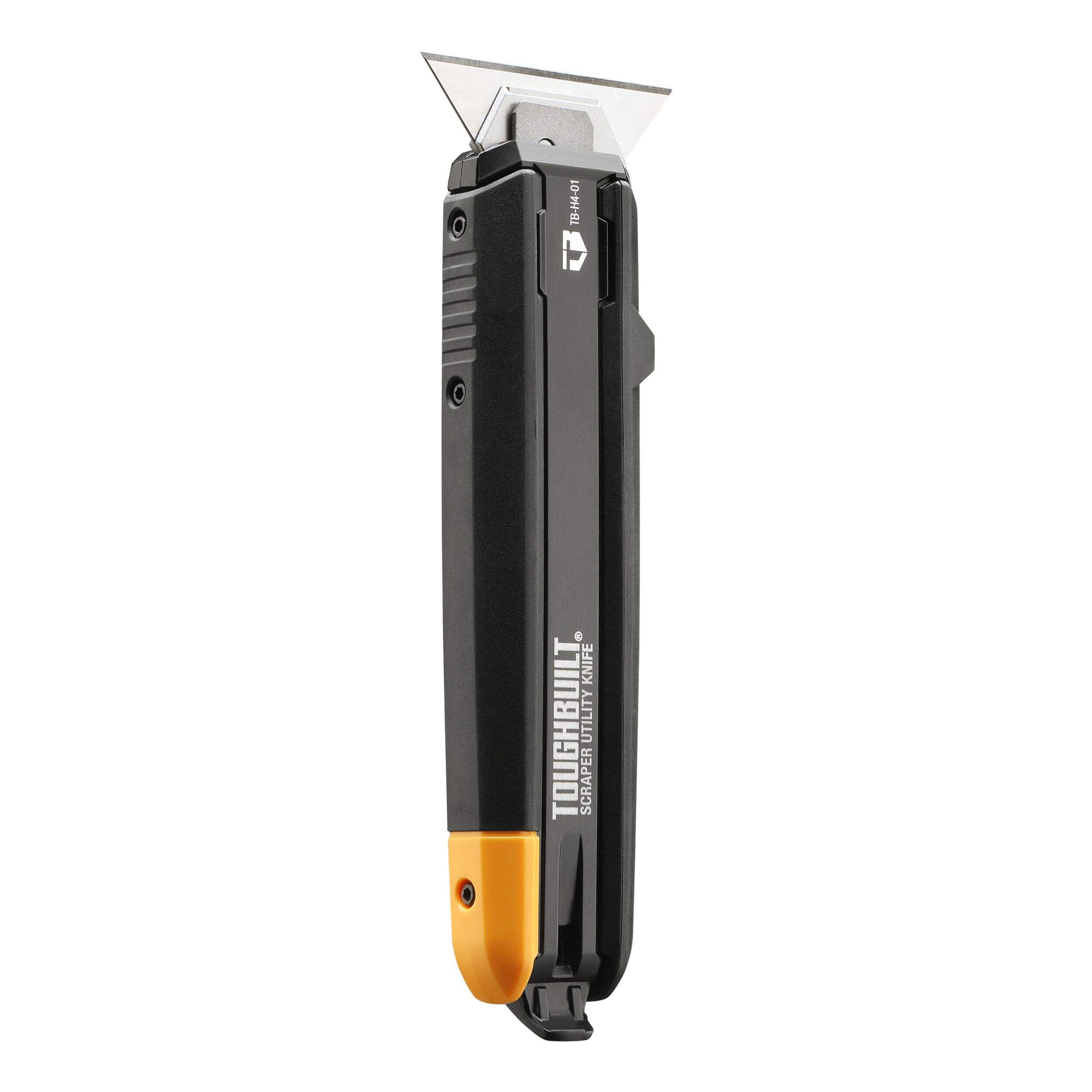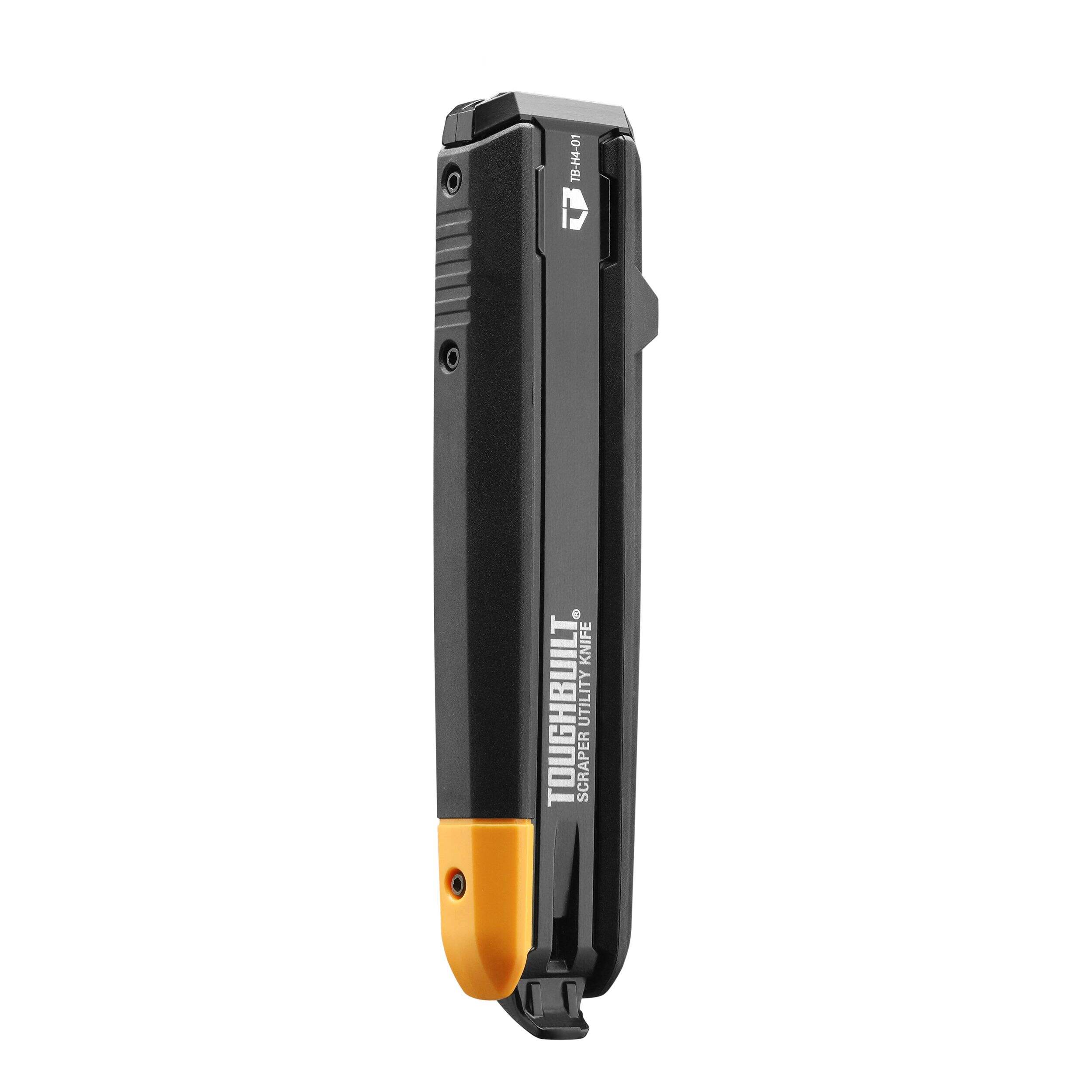 • Uses ToughBuilt’s patented mechanism to effortlessly transform from a utility knife to a scraper with the press of a thumb