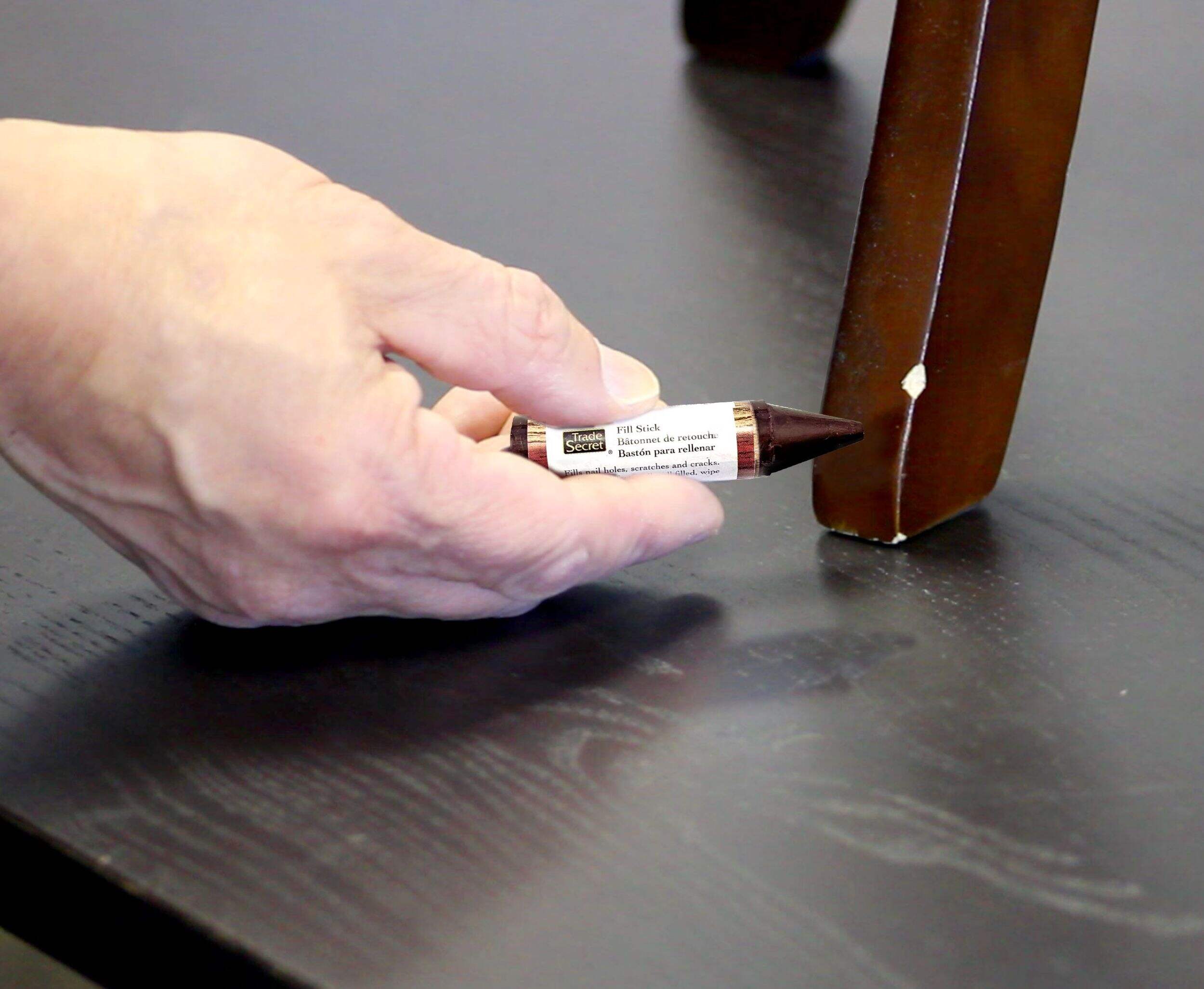 Crayons are for drawing pictures, but if you want to properly repair deeper nicks and gouges in your finished furniture, wood surfaces and flooring, Trade Secret Fill Sticks are what you need. The 100% wax formulation sets the Fill Sticks apart from your run-of-the-mill putty stick that is too greasy to top coat with paint or other finishes. With our wax formulation there is less shrinking versus putty stick repairs as well as a more colourfast solution. Simply rub into the repair and wipe off the excess. The wax will fill and form to the contour of the surrounding area! The Trade Secret Fill Stick wood tones come conveniently packed in a trio format that ensures you get the right colour every time. Save the hassle of returning or exchanging at your local hardware store. Whether repairing dining tables, floors, kitchen cabinets or even melamine countertops, the Trade Secret Fill Stick gets the job done. Not available in Hot Magenta™, Purple Mountain Majesty™ or Atomic Tangerine™. Sorry.