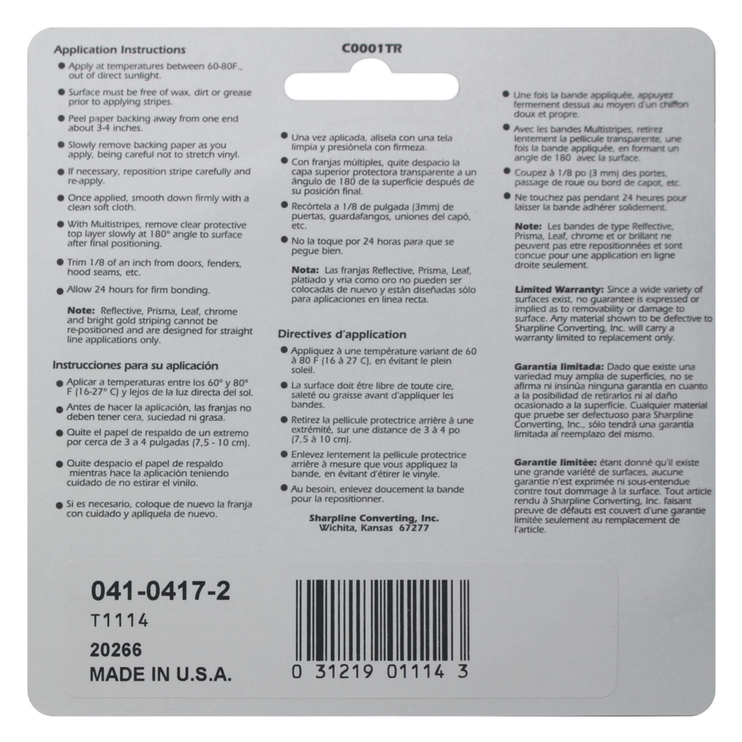 The Trimbrite Solid Stripe, Black, 1/8-in x 36-ft, creates an eye-catching graphic accent for your ride. The solid black colourway adds subtle but stylish flair when applied to the edges of hoods, doors, and tailgates of compact performance cars, pickups, and SUVs. The Trimbrite vinyl blend stands up to the elements while remaining flexible enough to contour smoothly around corners and curves. Give your ride an instant custom look with this easy-to-apply graphic accent.