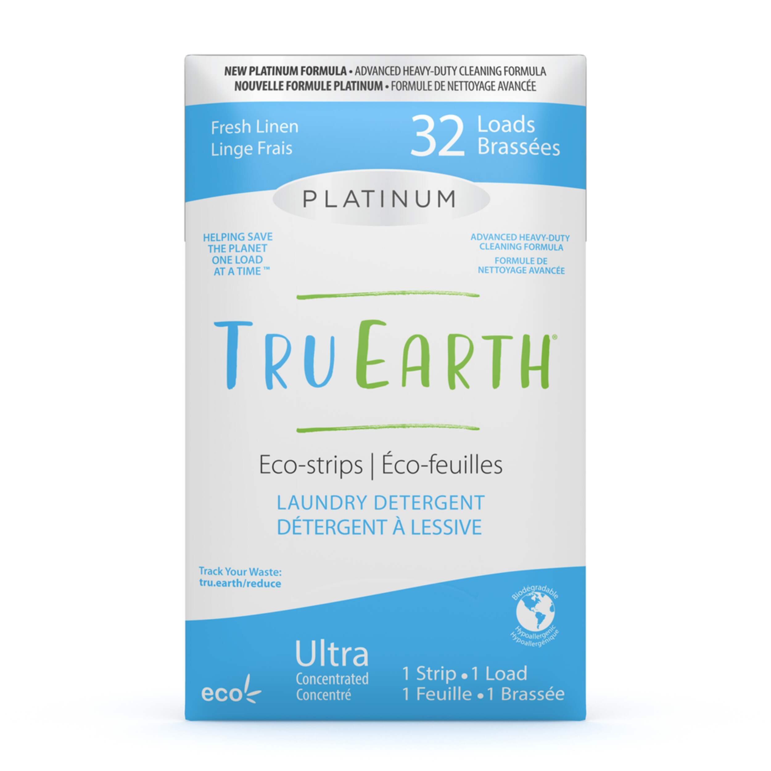 Tru Earth Platinum Laundry Detergent Strips deliver a pre-measured strip of laundry detergent that dissolve completely in cold or hot water