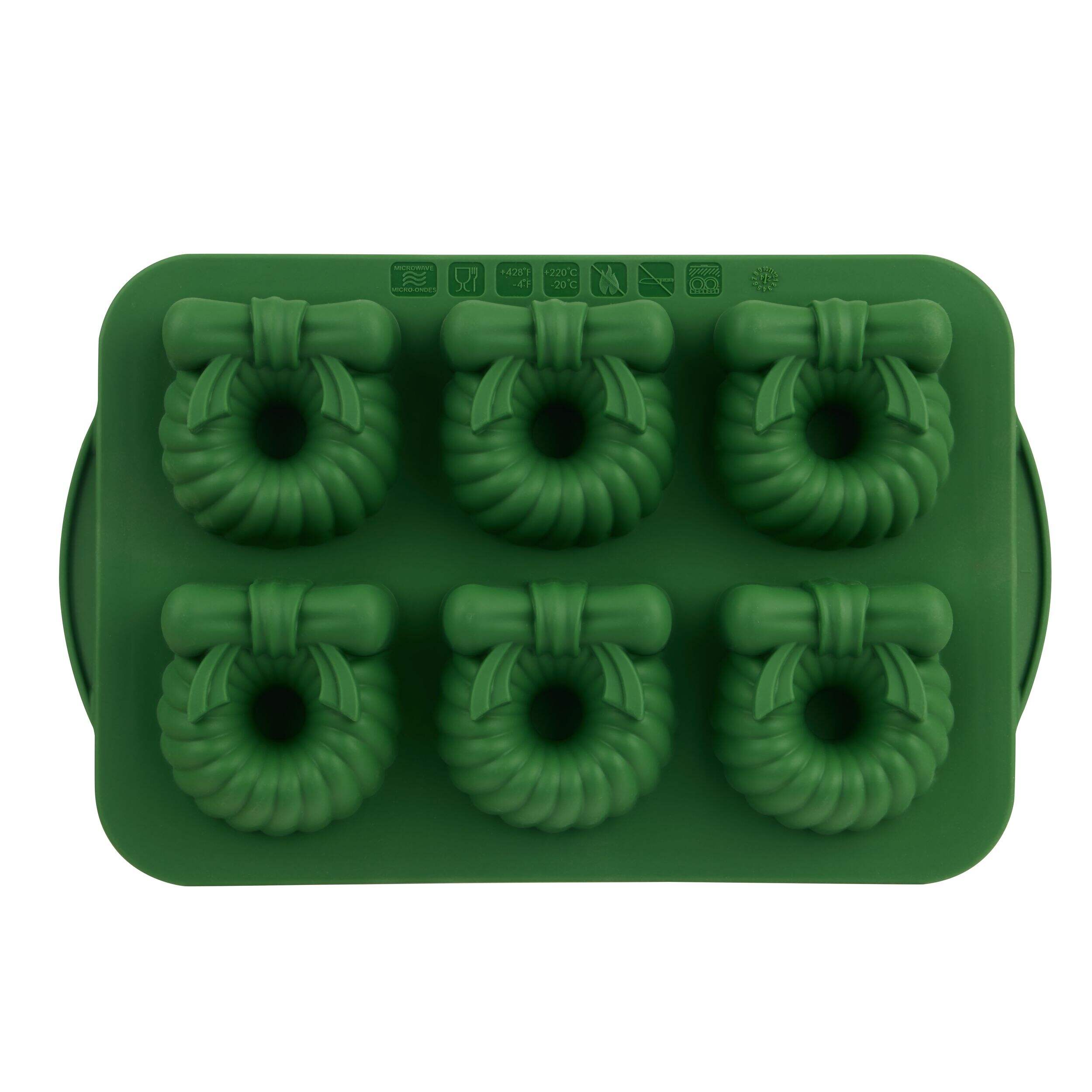 Create beautifully shaped cakes with the Trudeau Wreath Silicone Cake Pan. This green pan is perfect for festive baking, offering a unique design that will impress your guests. Enjoy hassle-free baking with its easy-to-use features.