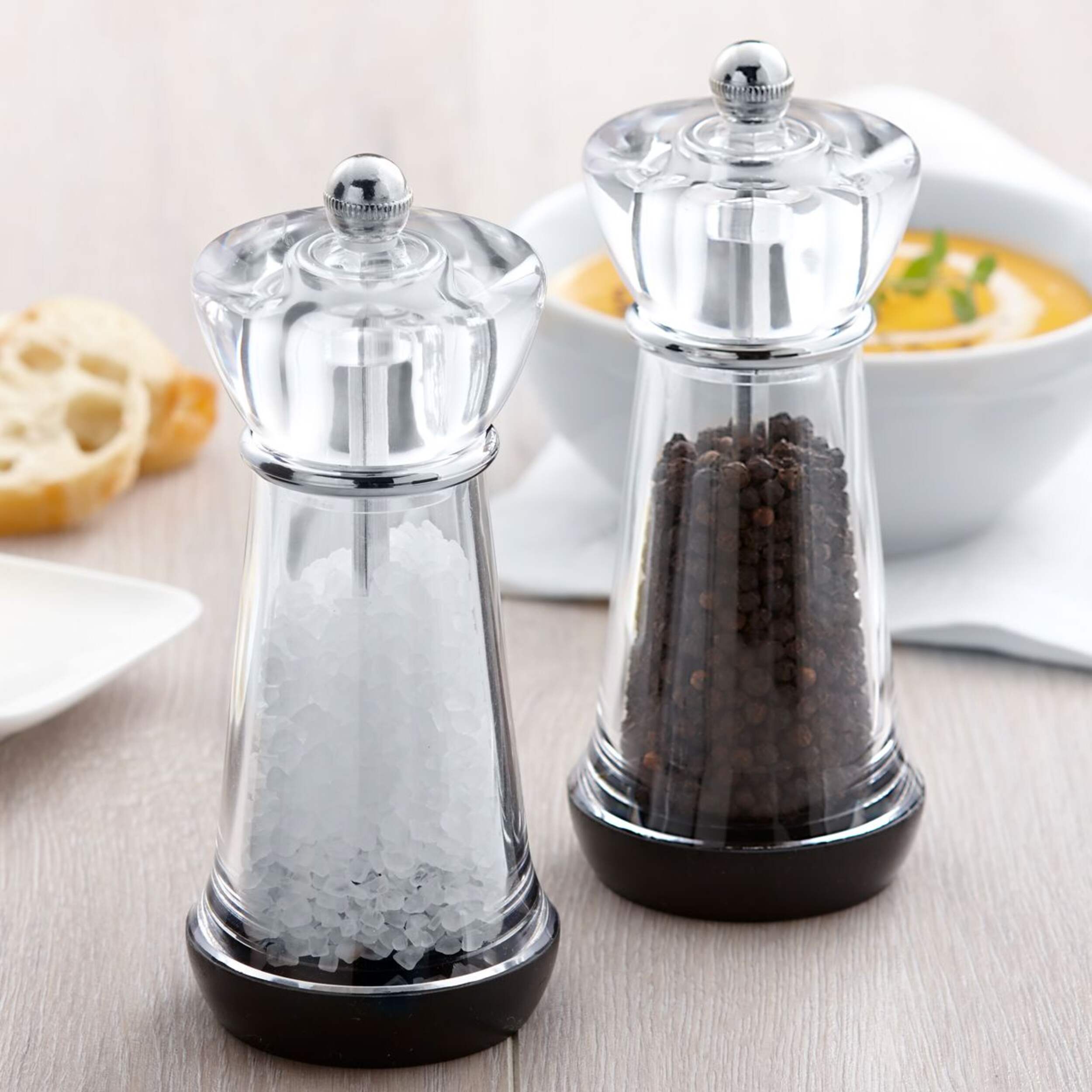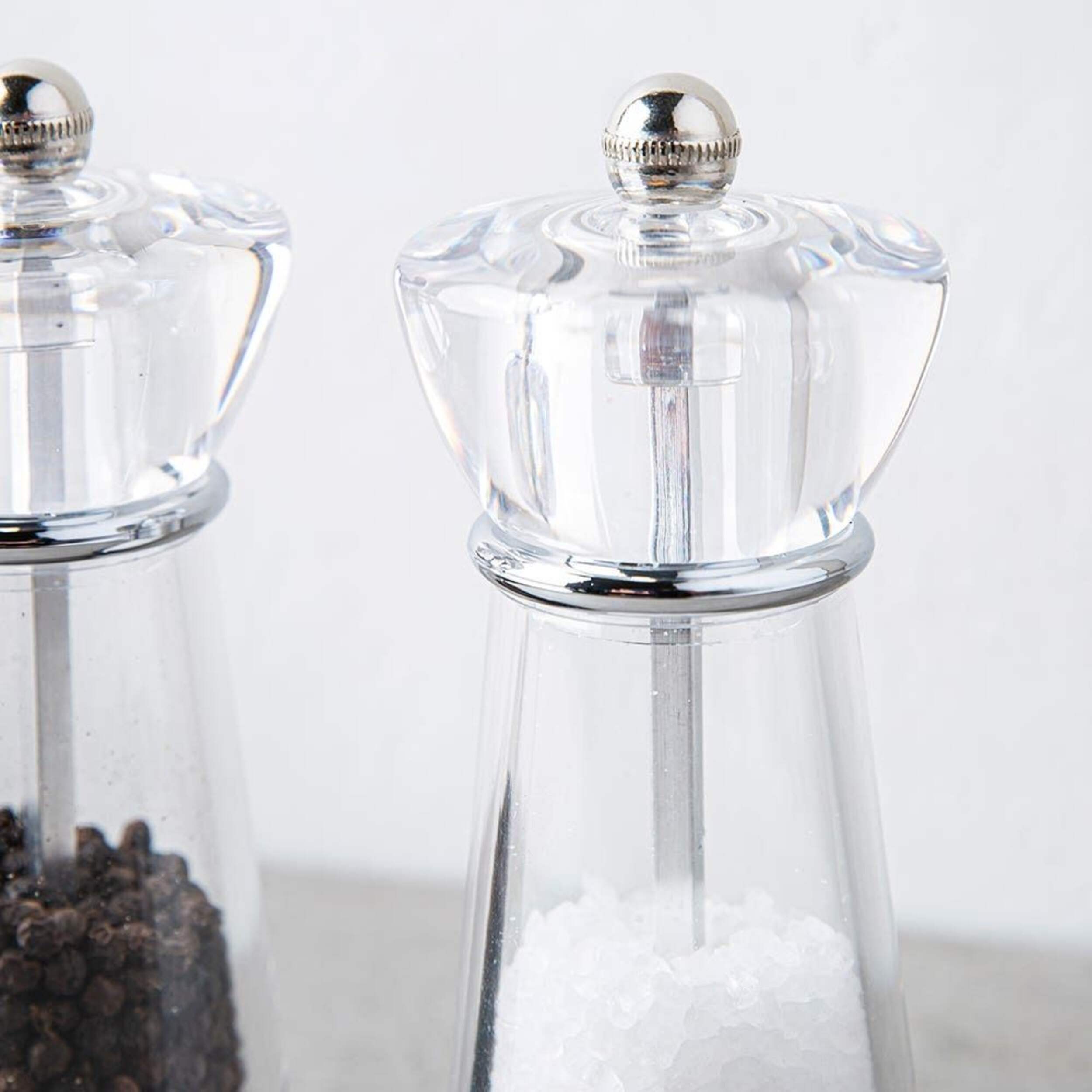 The Trudeau Maison Salt & Pepper Set's simple acrylic design suits any kitchen or dining room decor.