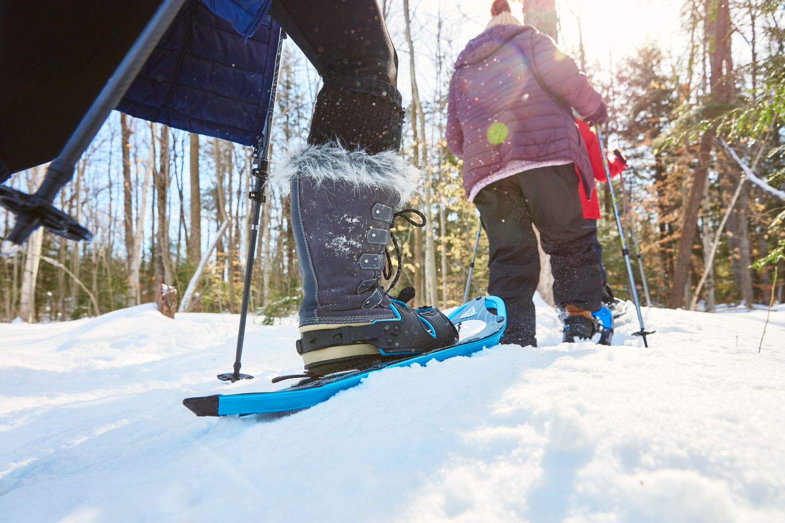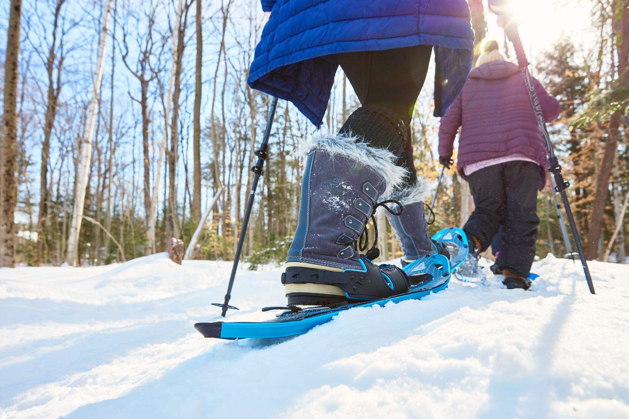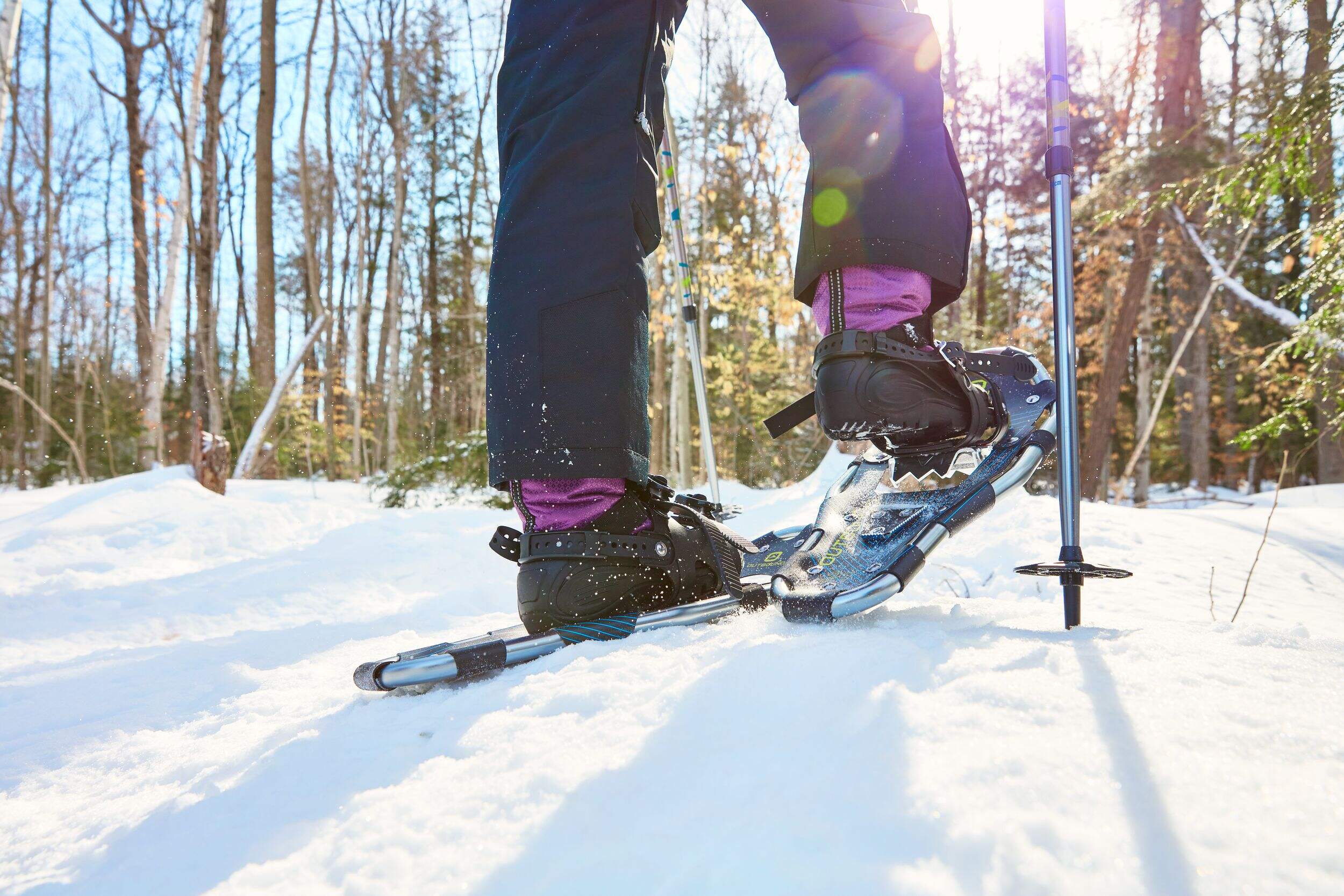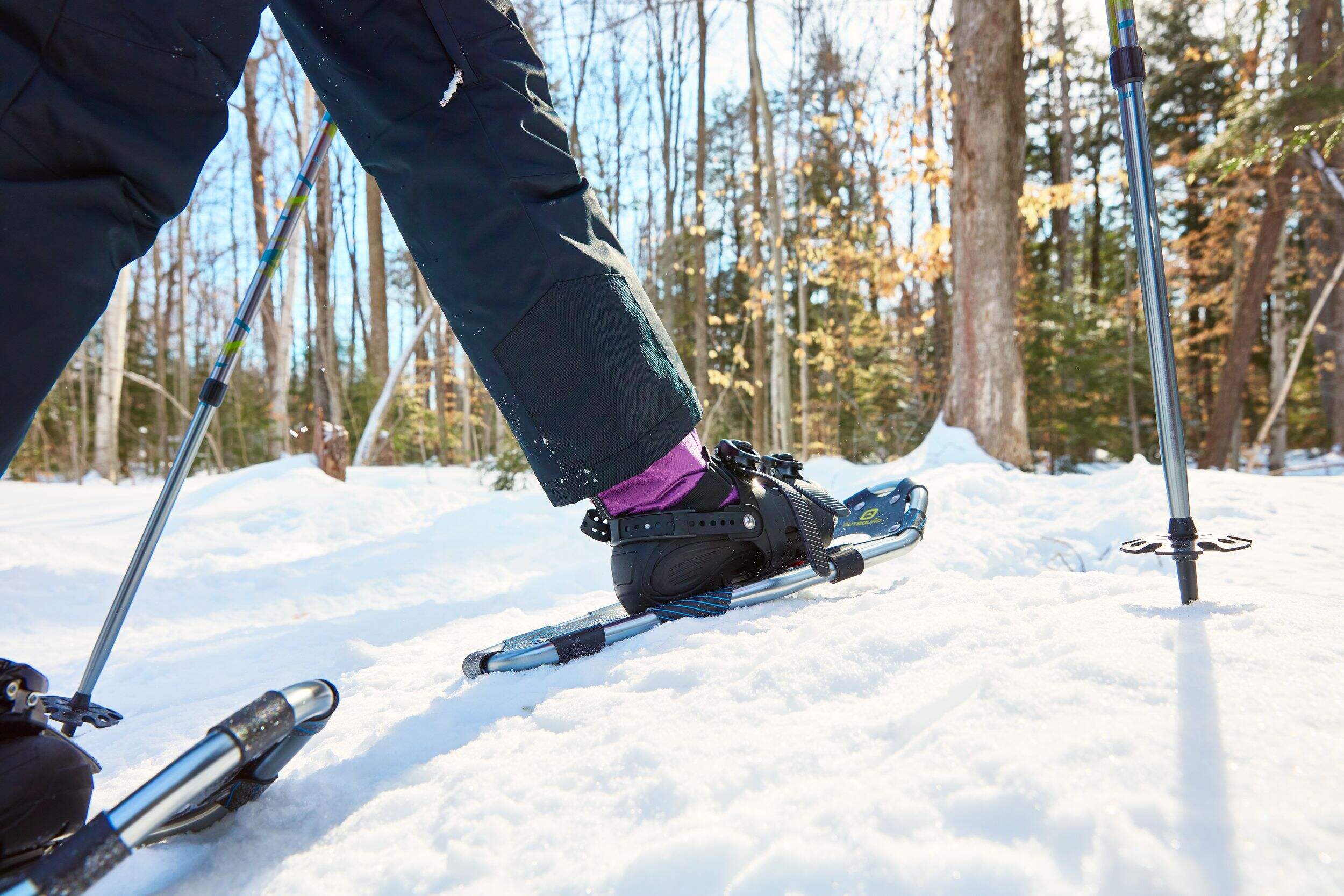 Fixed toe cord design keeps the snowshoe close to the boot for ease of use on packed trails