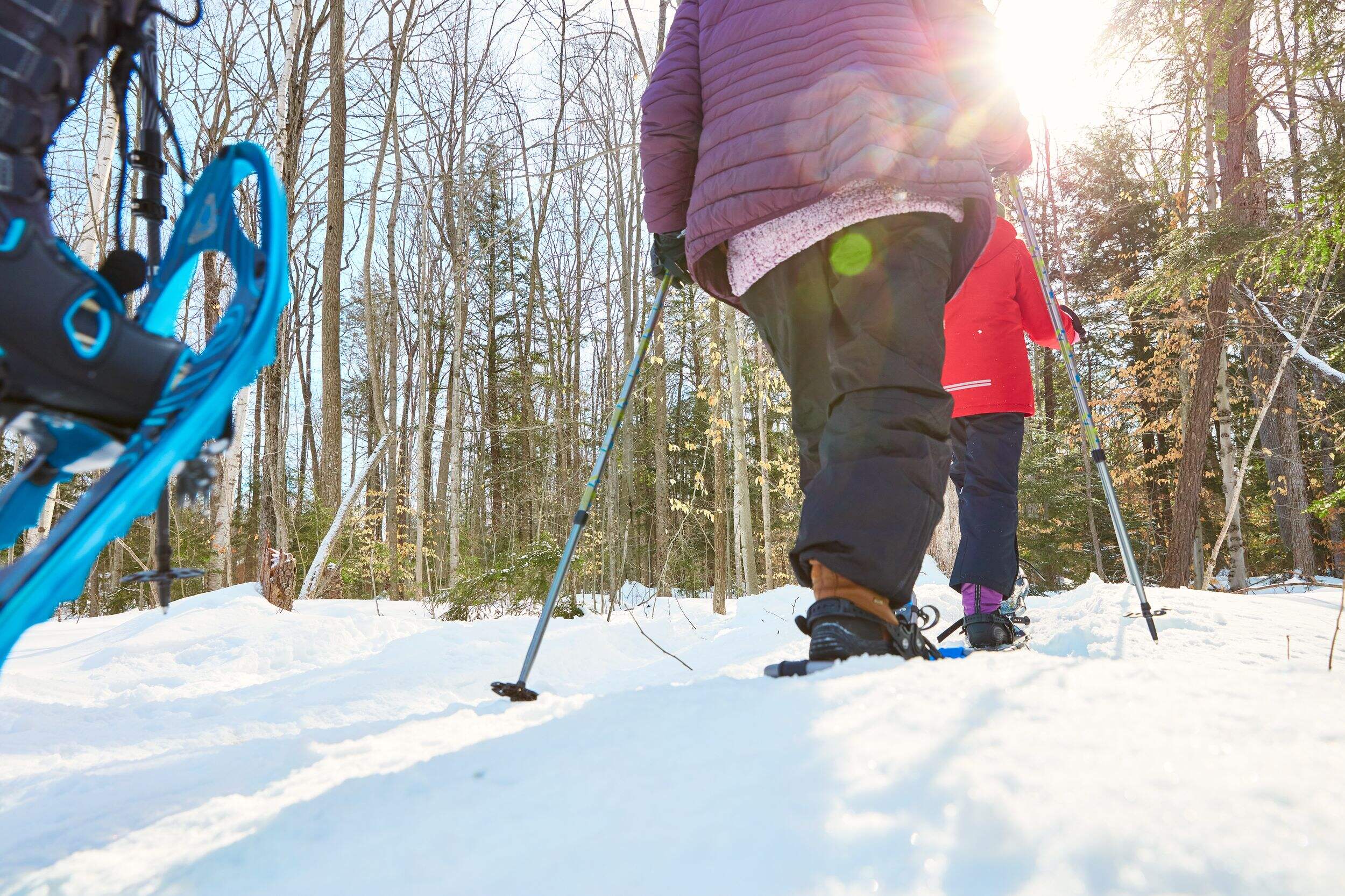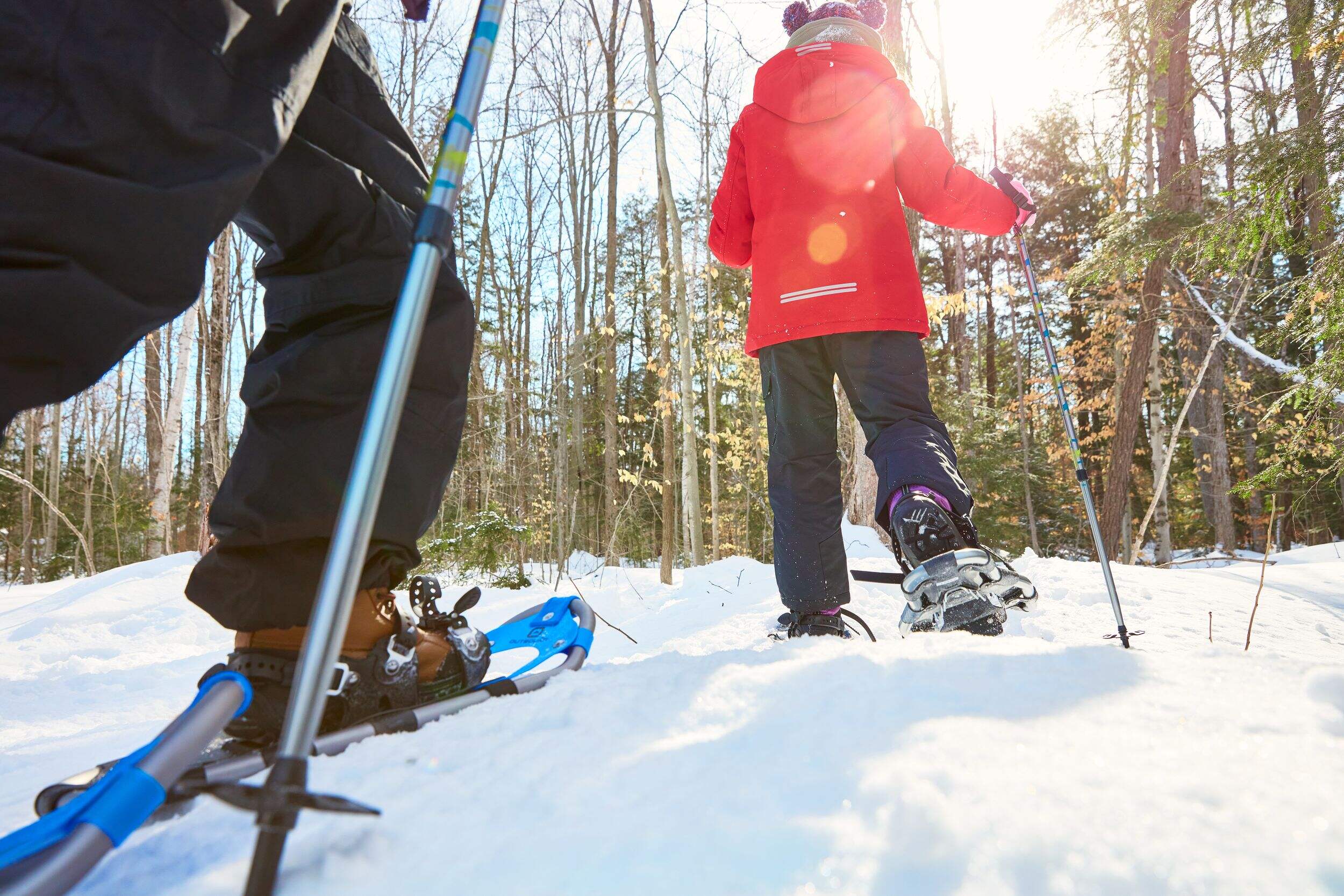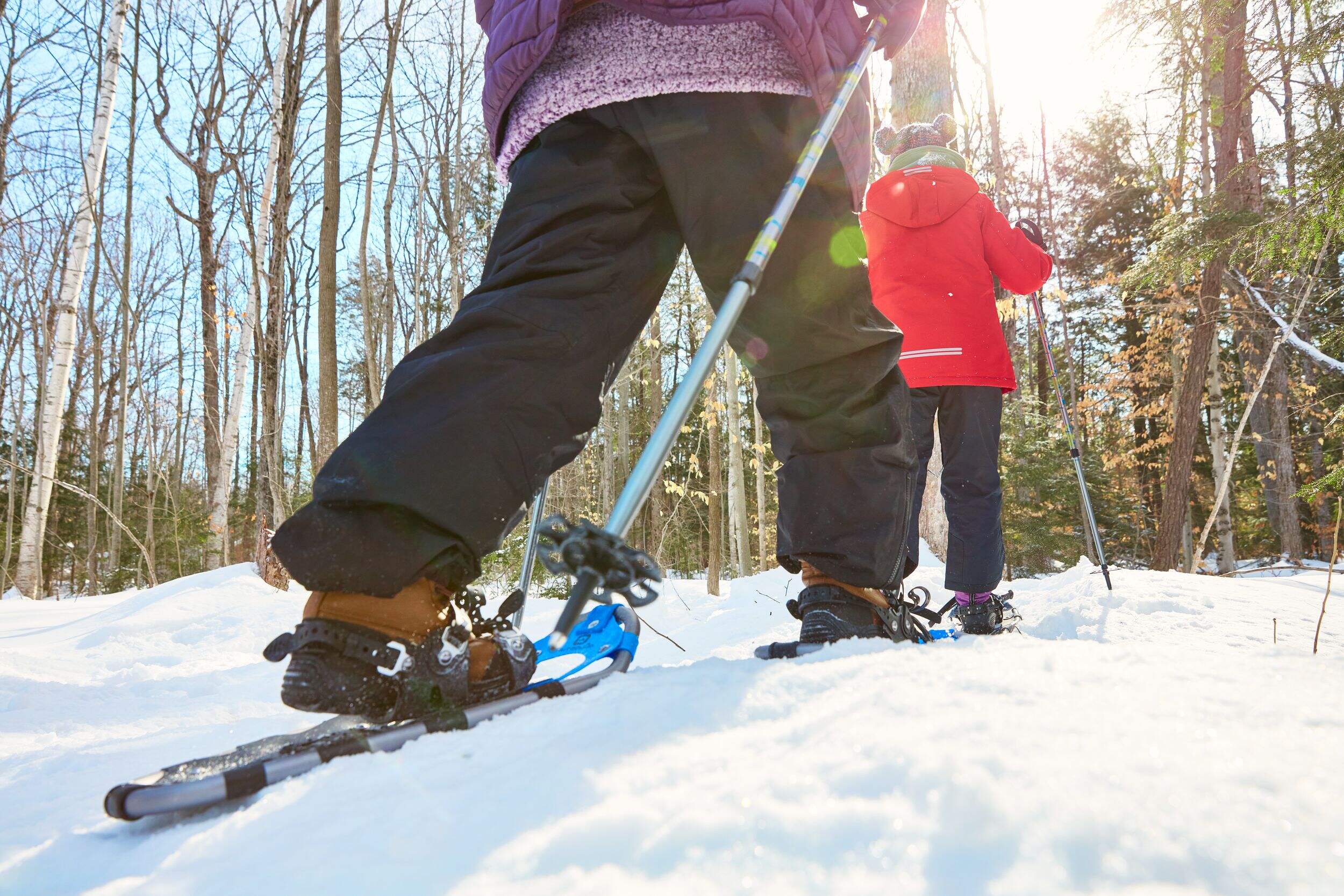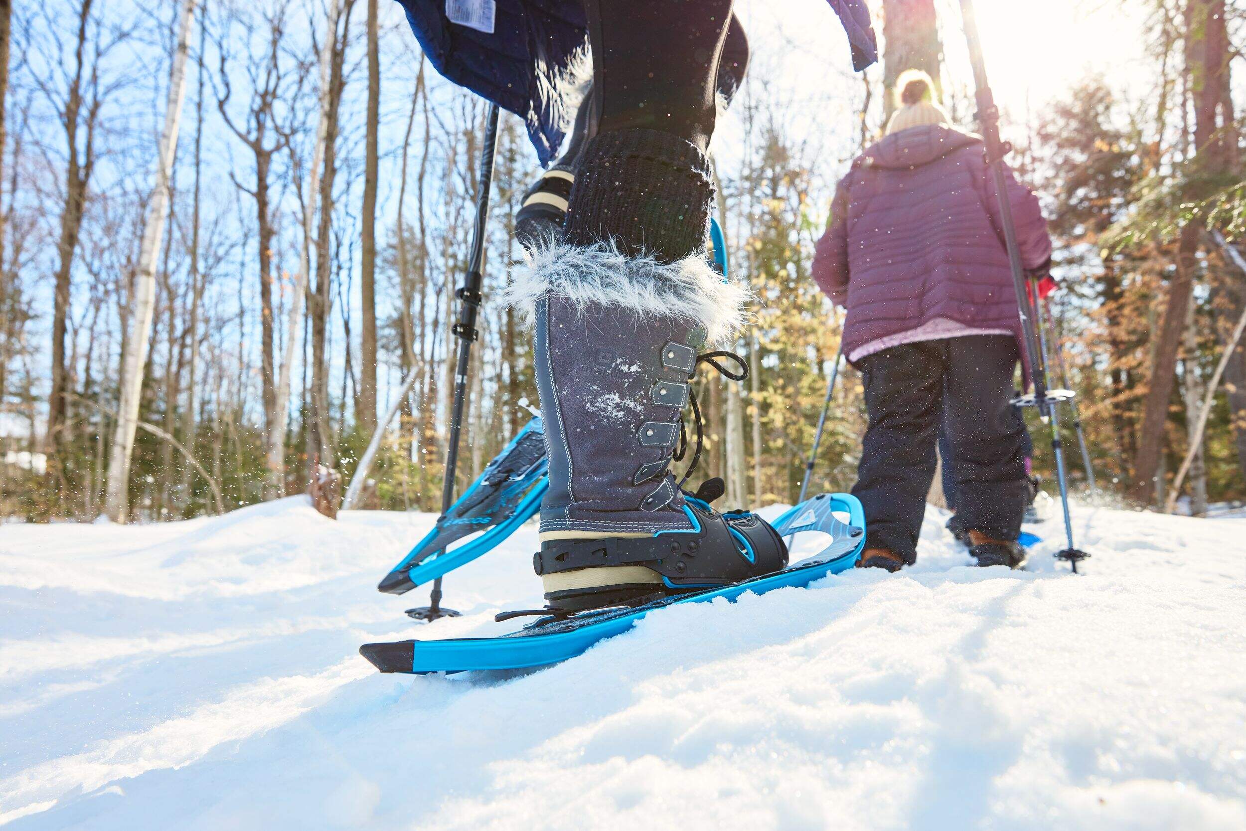 Fixed toe cord design keeps the snowshoe close to the boot for ease of use on packed trails