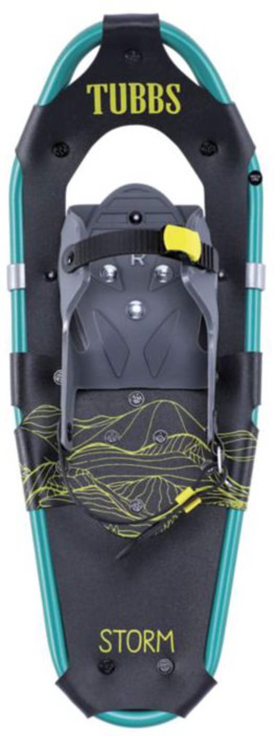 Tubbs Kids' Storm Snowshoes in pink feature a 6000 Series aluminum frame that is virtually indestructible and provides optimal stability in powder snow conditions