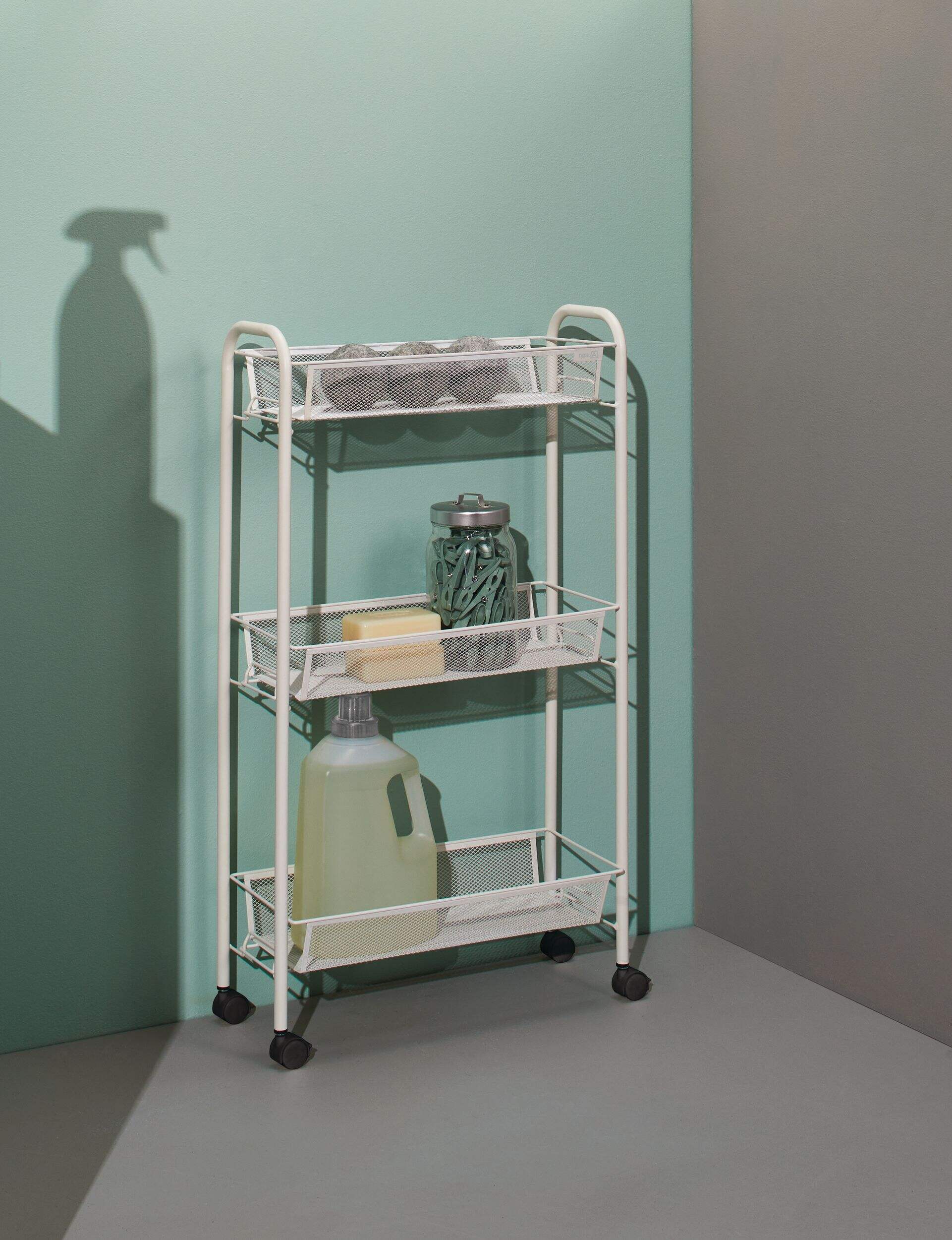 Get quick and easy organization with the type A 3-Tier Mesh Wire Slim Storage Cart, the optimal storage solution for tight spaces. This three-shelf cart can be easily moved about and is simple to set up. The slim profile of this storage cart maximizes storage capacity while occupying minimal floor space. Ideal for pantries, craft rooms, garages, and more, the type A 3-Tier Storage Cart keeps essentials neatly organized and easily accessible.