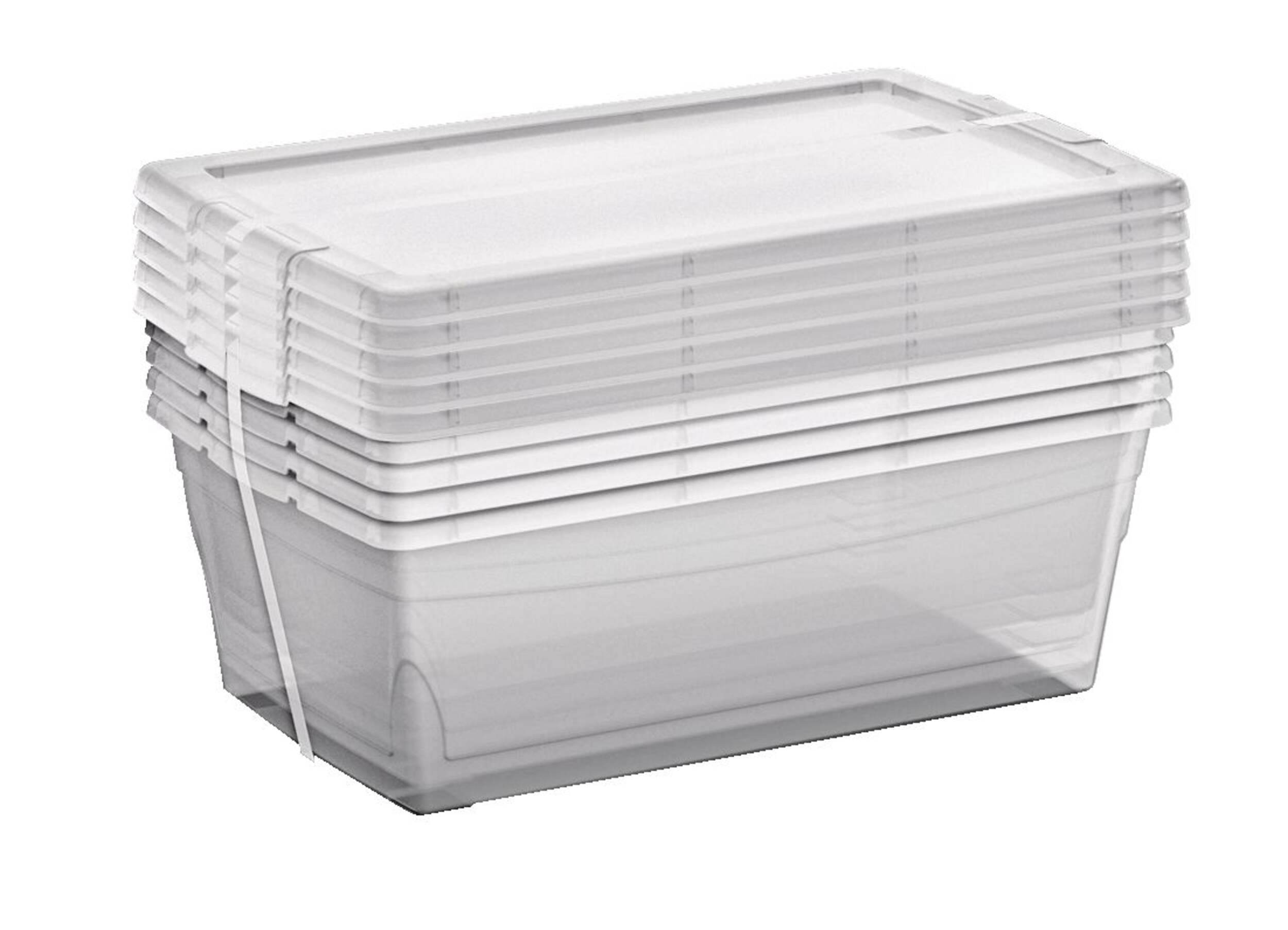 Store shoes, knick knacks, and other household items in the type A Clarity Shoe Boxes. This plastic shoe box has a clear design that lets you see what’s inside, with a snap-on lid that keeps contents safe. The modular construction allows you to stack boxes to save space in your closet or cupboards. Every pack comes with five durable reusable shoe boxes, each with a generous six litres of interior space.