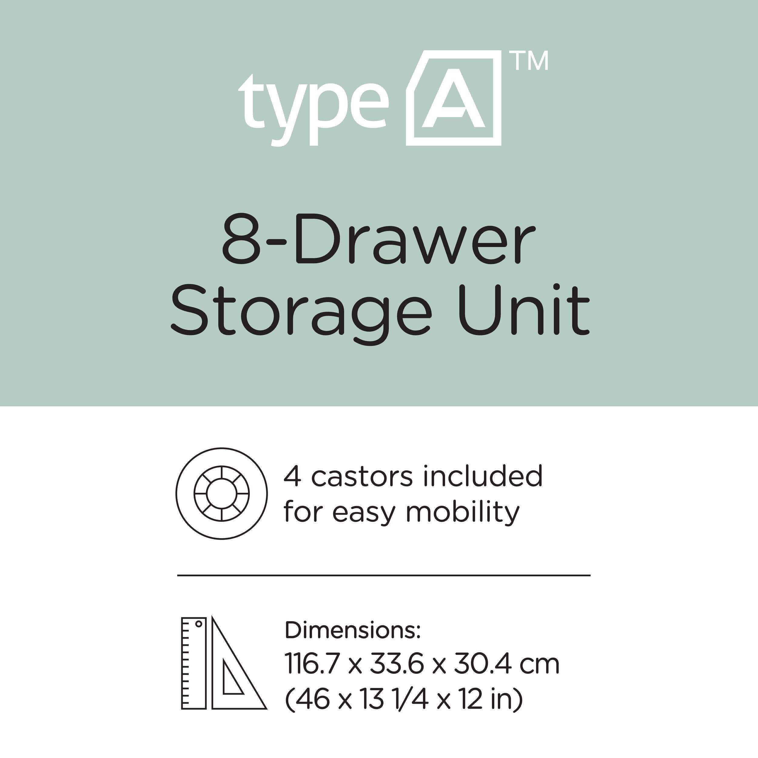 The convenient, space-saving type A 8-Drawer Storage Tower is ideal for added storage anywhere around your home. It features eight spacious drawers that are well-suited for everything from out-of-season clothing to personal items and toiletries. Each drawer is transparent, so you can see what items are inside. Lower caster wheels allow you to move your storage tower from room to room quickly and easily.