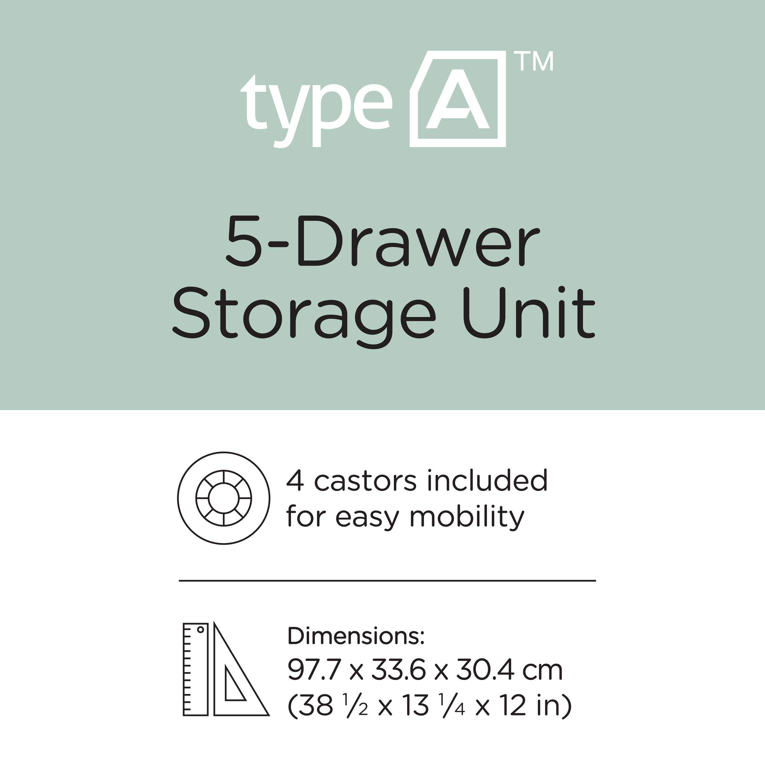 Features five deep drawers for efficient, clutter-free storage