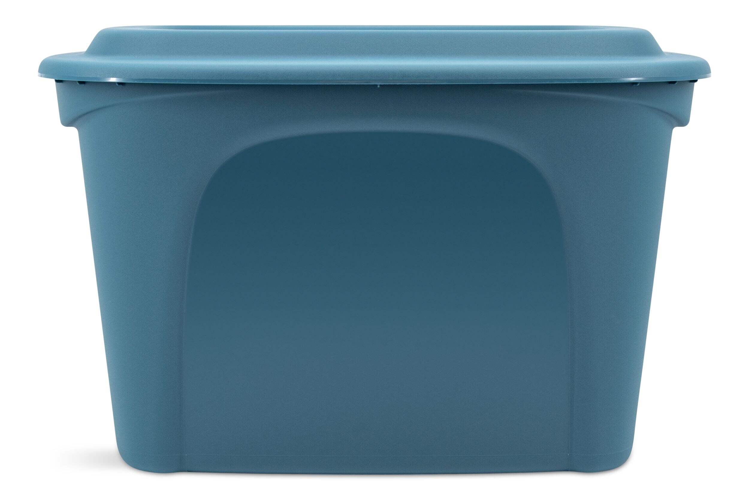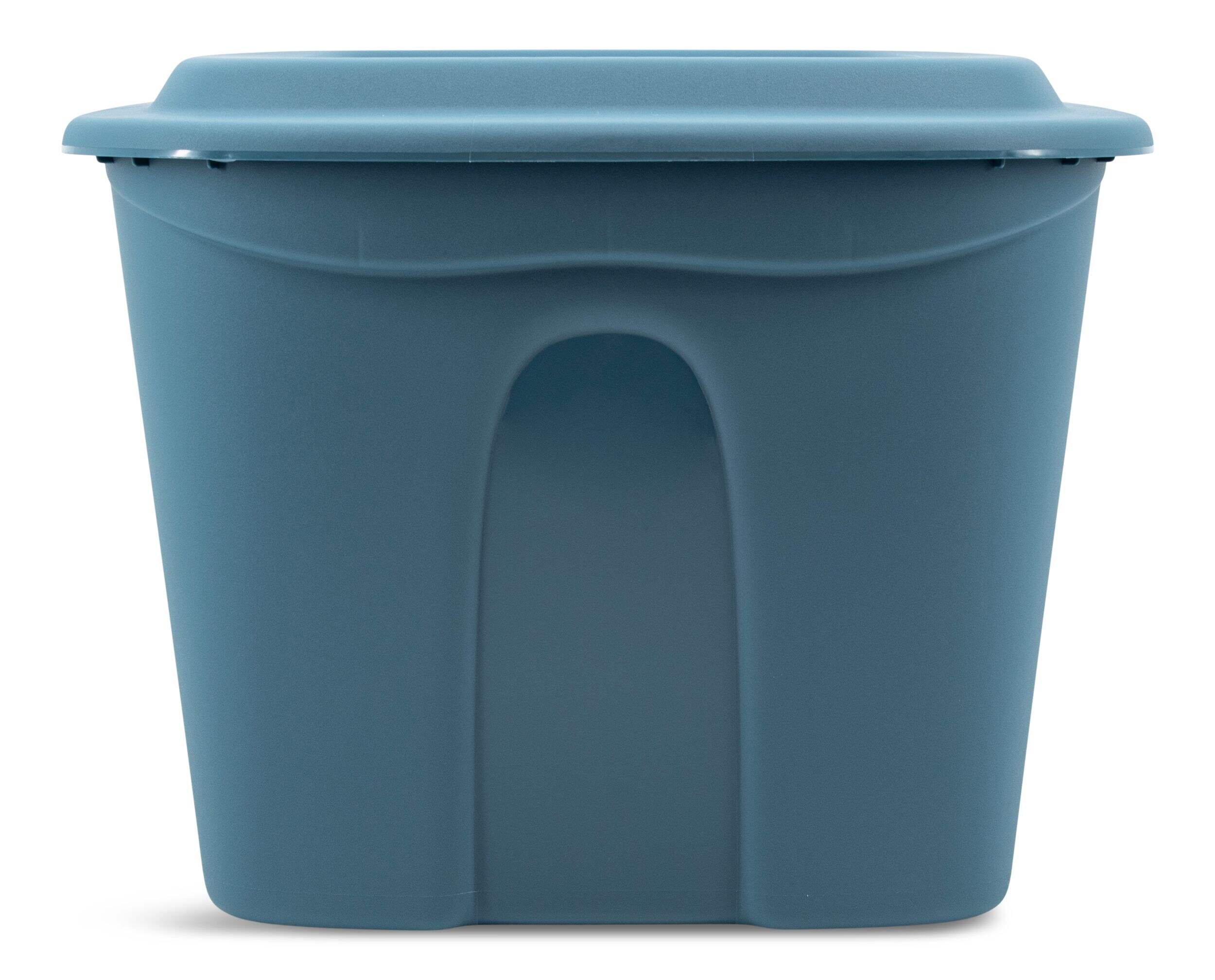 The type A Stackable Storage Box organizes 72L of supplies with its snap-on lid and sturdy handles for secure transport. The modular blue bin stacks neatly to maximize space, while its interlocking design allows for clutter-free storage. Built from durable materials, its large capacity is ideal for classrooms, offices, garages and beyond.