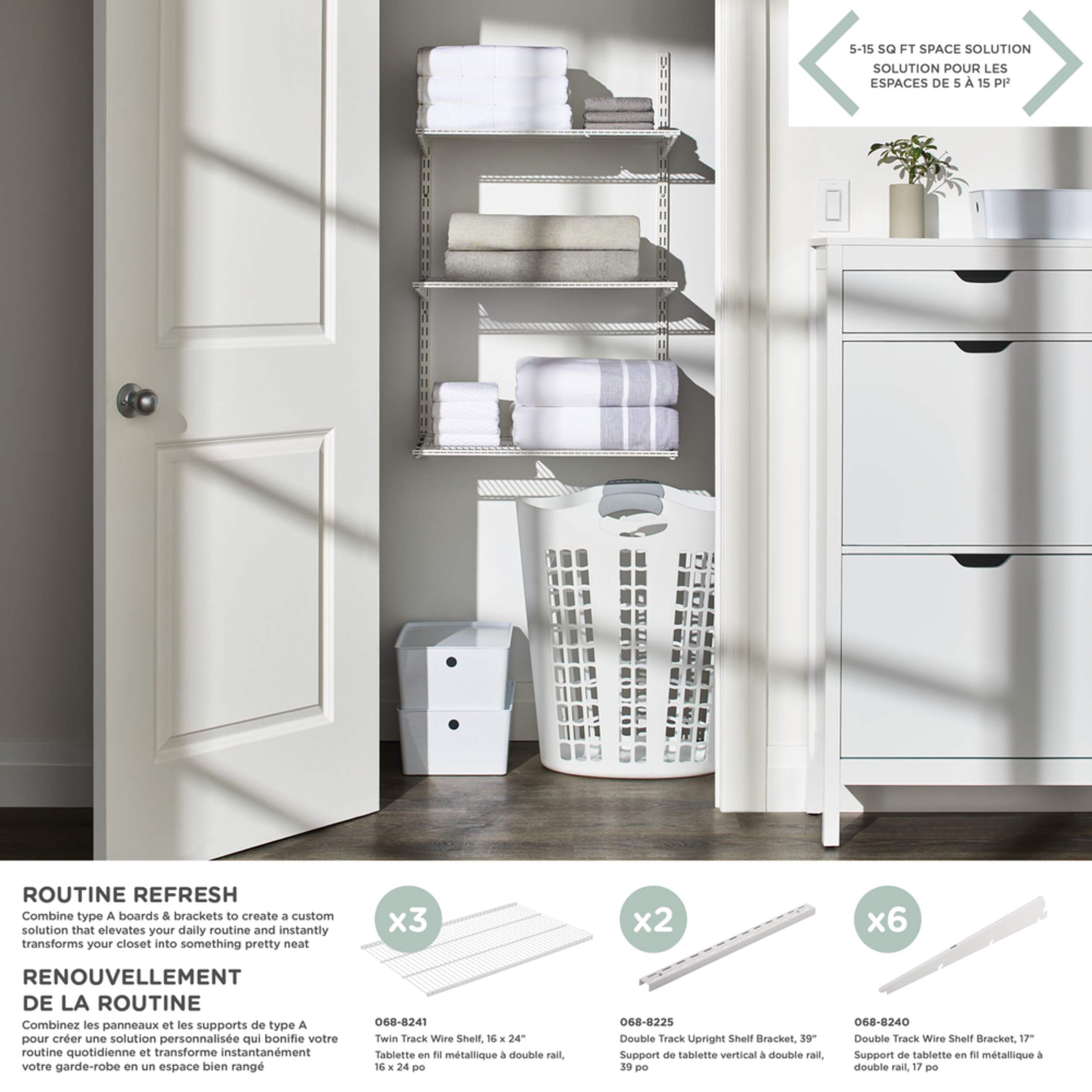Measuring 16-inches wide by 24-inches long, the type A Wire Shelf offers ample storage space to display your books, houseplants, knick-knacks, office supplies, and much more. This wire shelf is designed for use with wall shelf brackets, allowing you to create your own custom shelving solution built to accommodate your specific items.