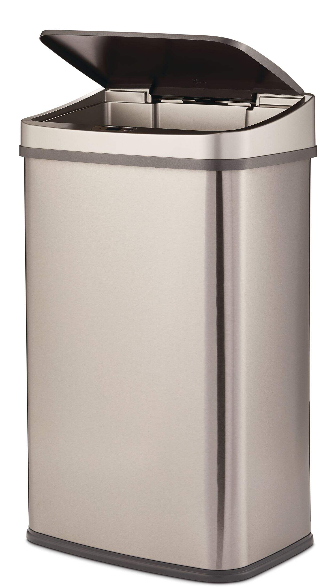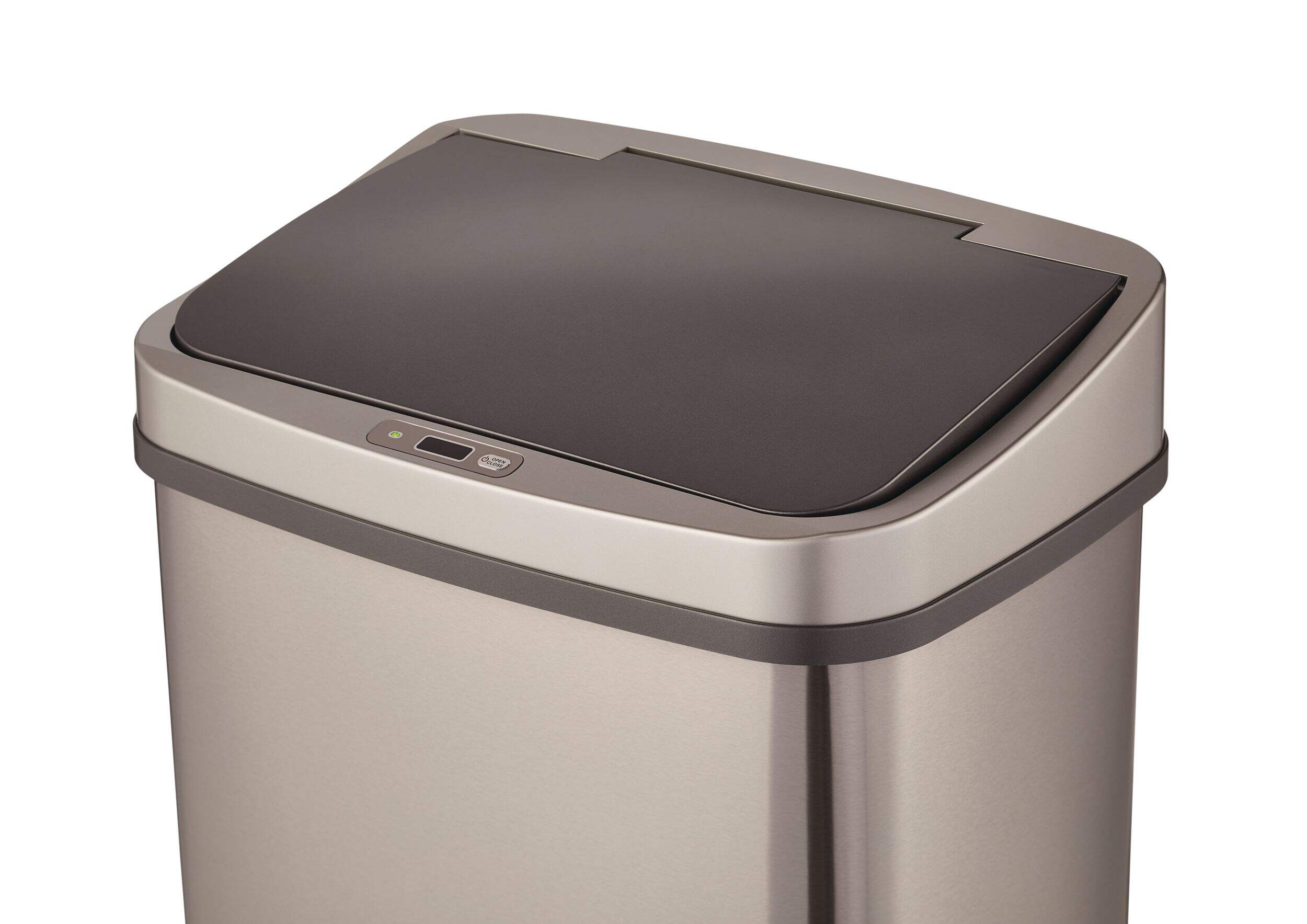 This type A Motion Sensor Wide Garbage Bin has a capacity of up to 50 litres or 13.2 US gallons, which makes for fewer trips to the curb or dumpster. Stainless steel finishing on the exterior and base is combined with an ABS plastic lid to offer you long-term durability while creating a sleek modern look that effortlessly complements the appliances in your home.