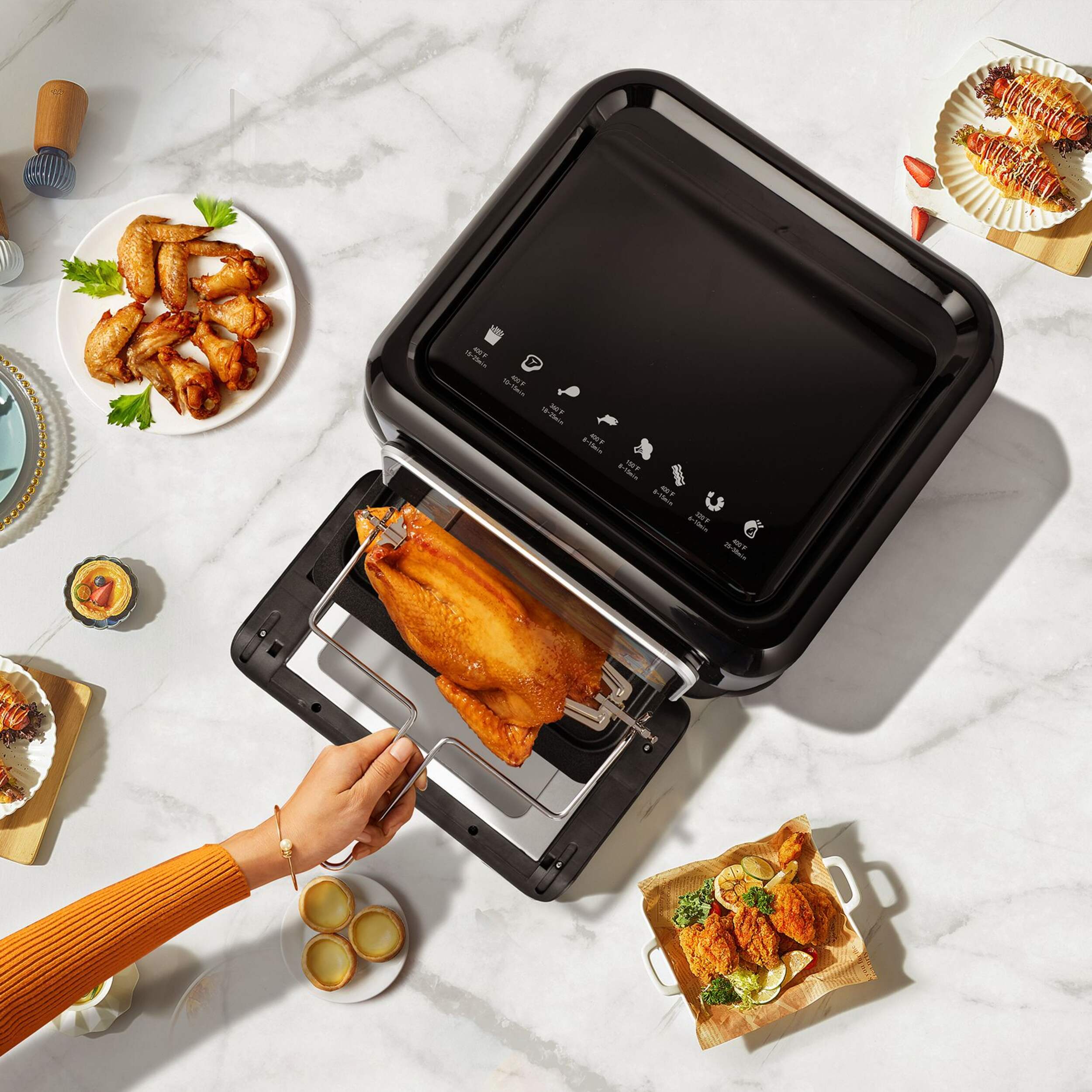 Large capacity allows you to grill an entire rotisserie chicken