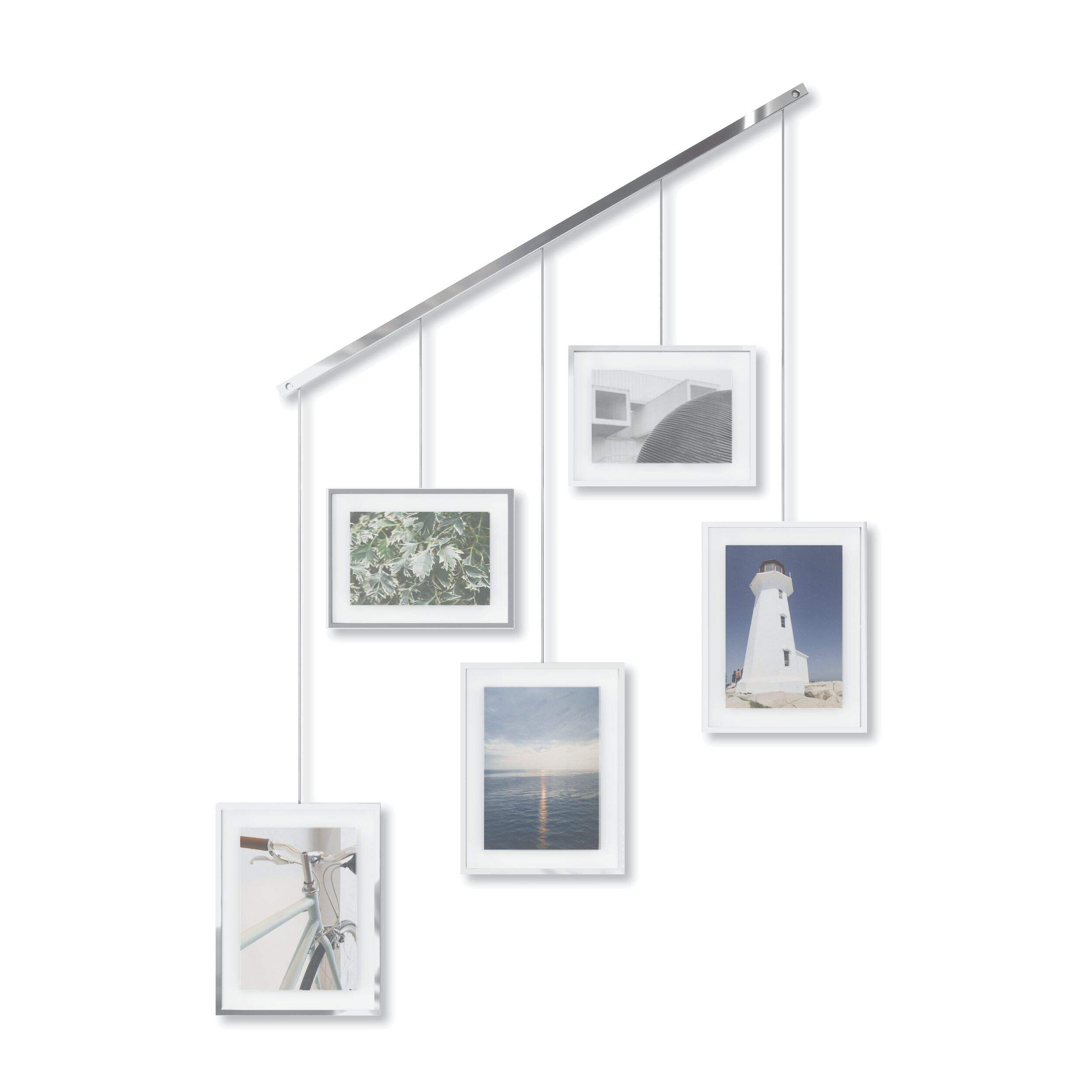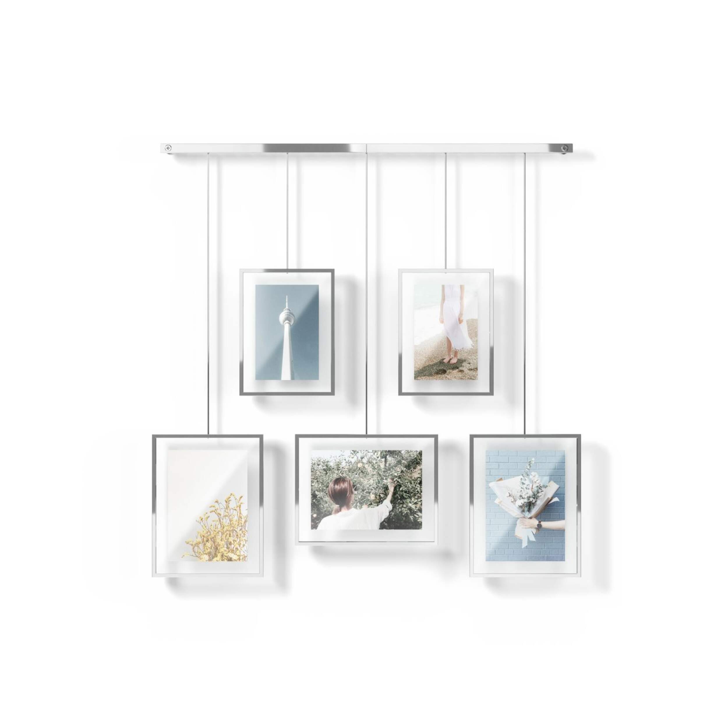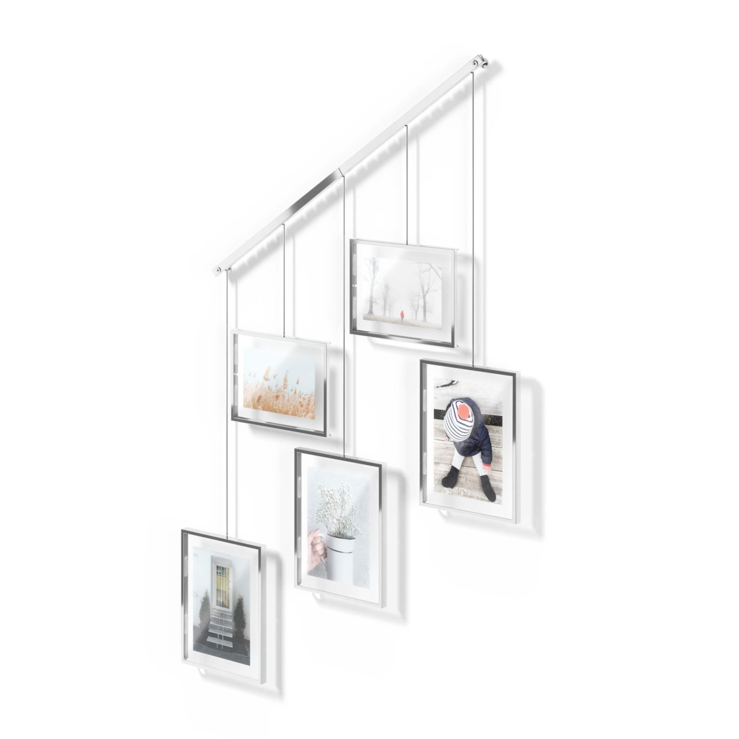Display your favourite photos in an eye-catching fashion with two 4" x 6" (10.1 x 15.2 cm) and three 5" x 7" (12.7 x 17.7 cm) picture frames suspended from a modern and sleek beam
