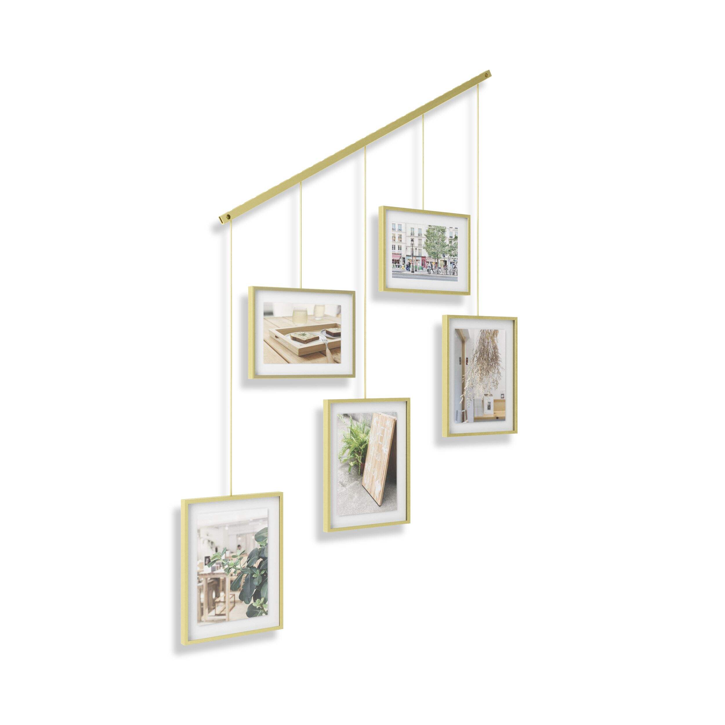 Display your favourite photos in an eye-catching fashion with two 4" x 6" (10.1 x 15.2 cm) and three 5" x 7" (12.7 x 17.7 cm) picture frames suspended from a modern and sleek beam
