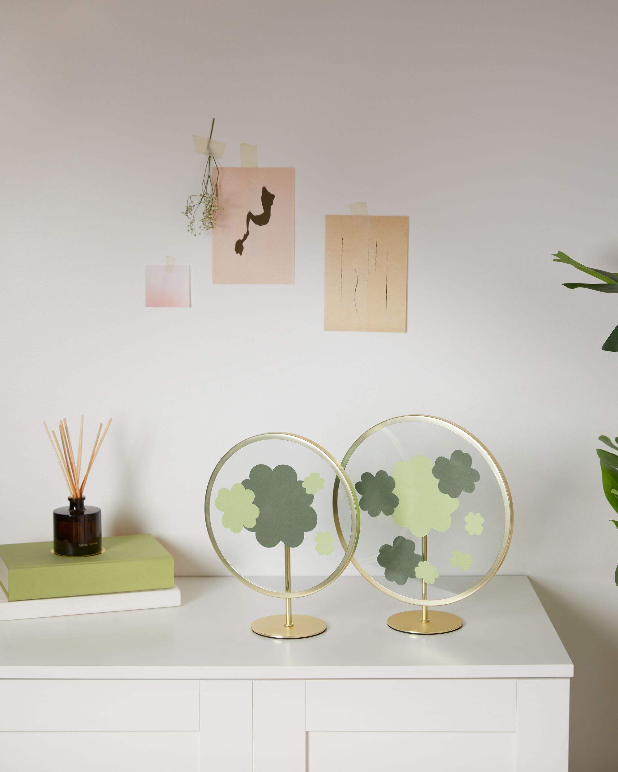 Holds both portrait and landscape photos between two panes of glass to add a transparent border around your image and a dimensional element to your table or wall