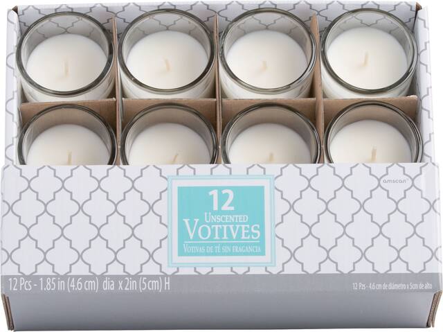 These unscented votive candles are perfect for simply setting the mood. The set of 12 white candles in glass jars are ideal for weddings, holidays or any time you want to add a subtle glow to your tables or mantel. Just light them up for a warm ambient lighting effect that will make hosting dinner parties or get-togethers just a little more magical. The unobtrusive, fuss-free design means they'll complement any style of decor without distracting from the focus of your event.
