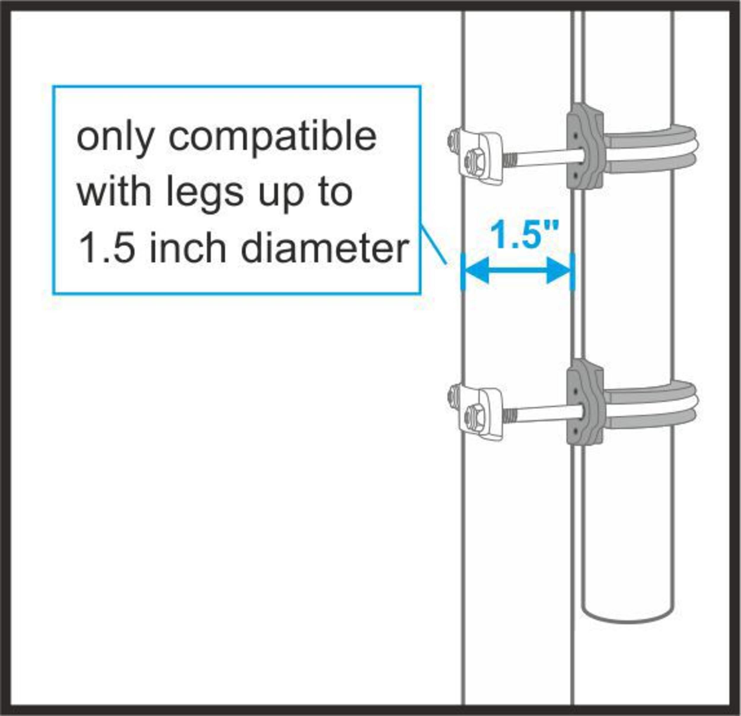 Compatible with trampoline legs of up to 1.5" (3.8 cm) D