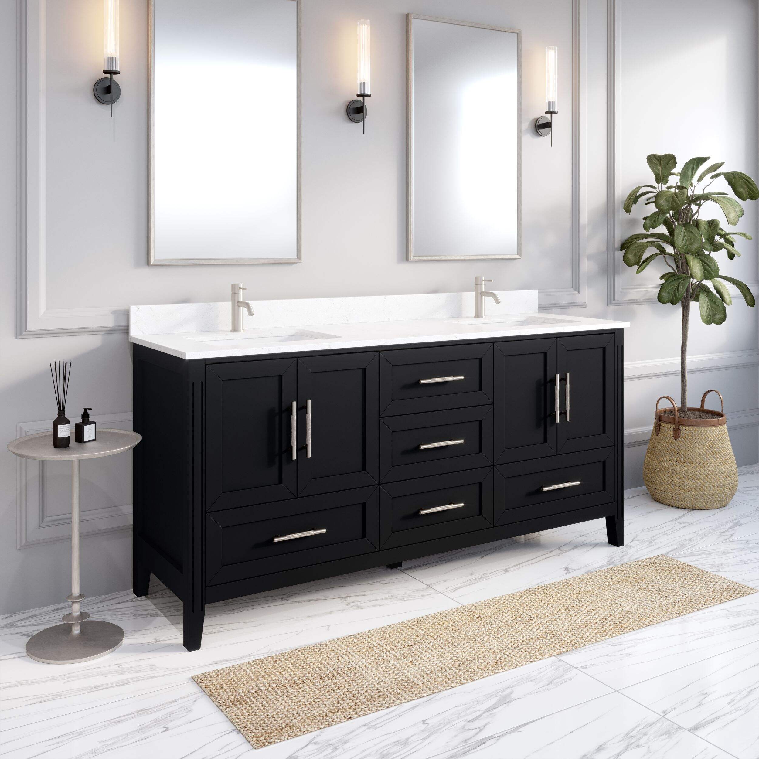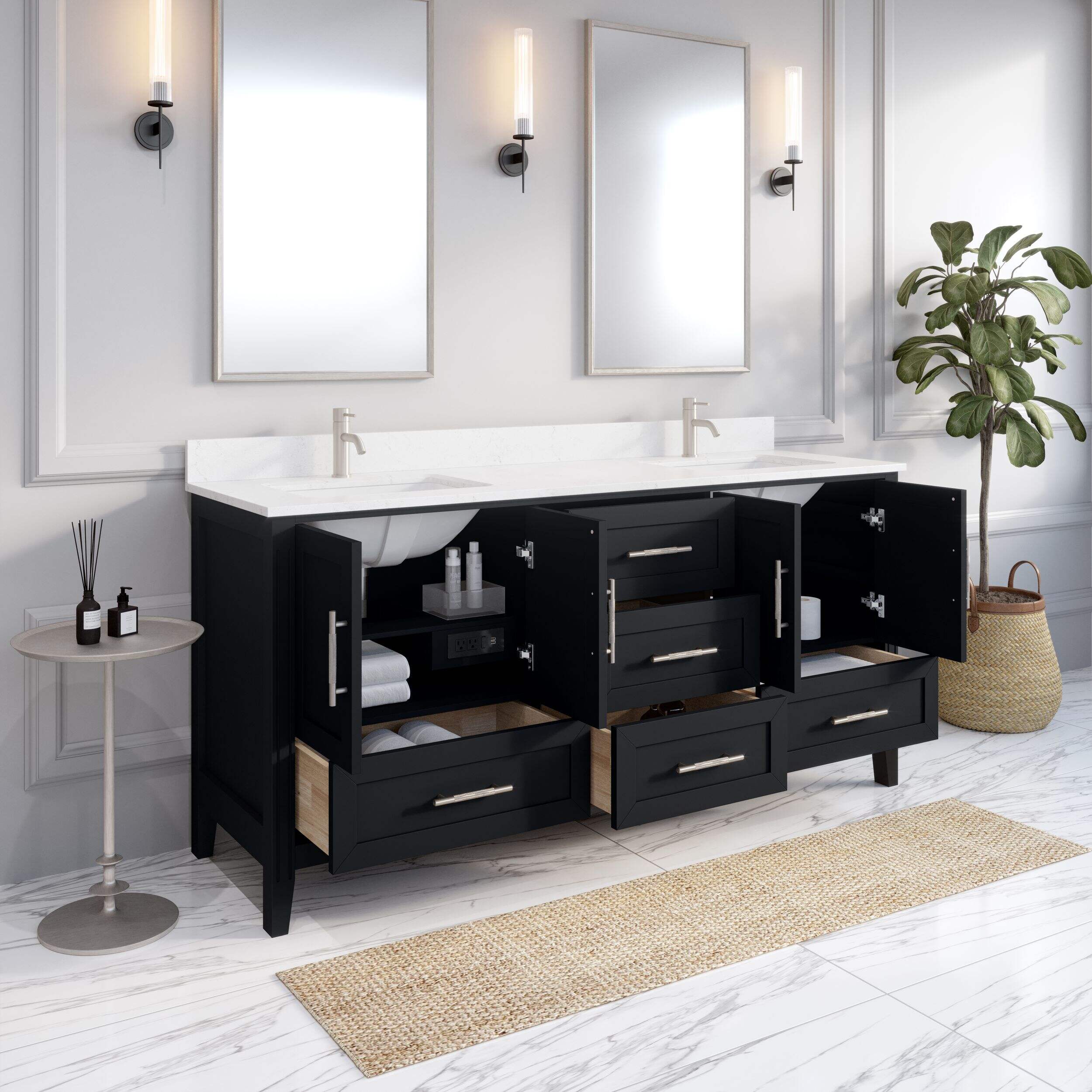 The Urban Bathe Houston 72-inch Single Bathroom Vanity features a spacious interior with adjustable shelves and a power bar, allowing you to neatly organize toiletries while keeping devices charged. The solid hardwood frame and high-quality plywood panel construction on this bathroom vanity ensure durability, accentuated by a rich espresso finish and gunmetal hardware.