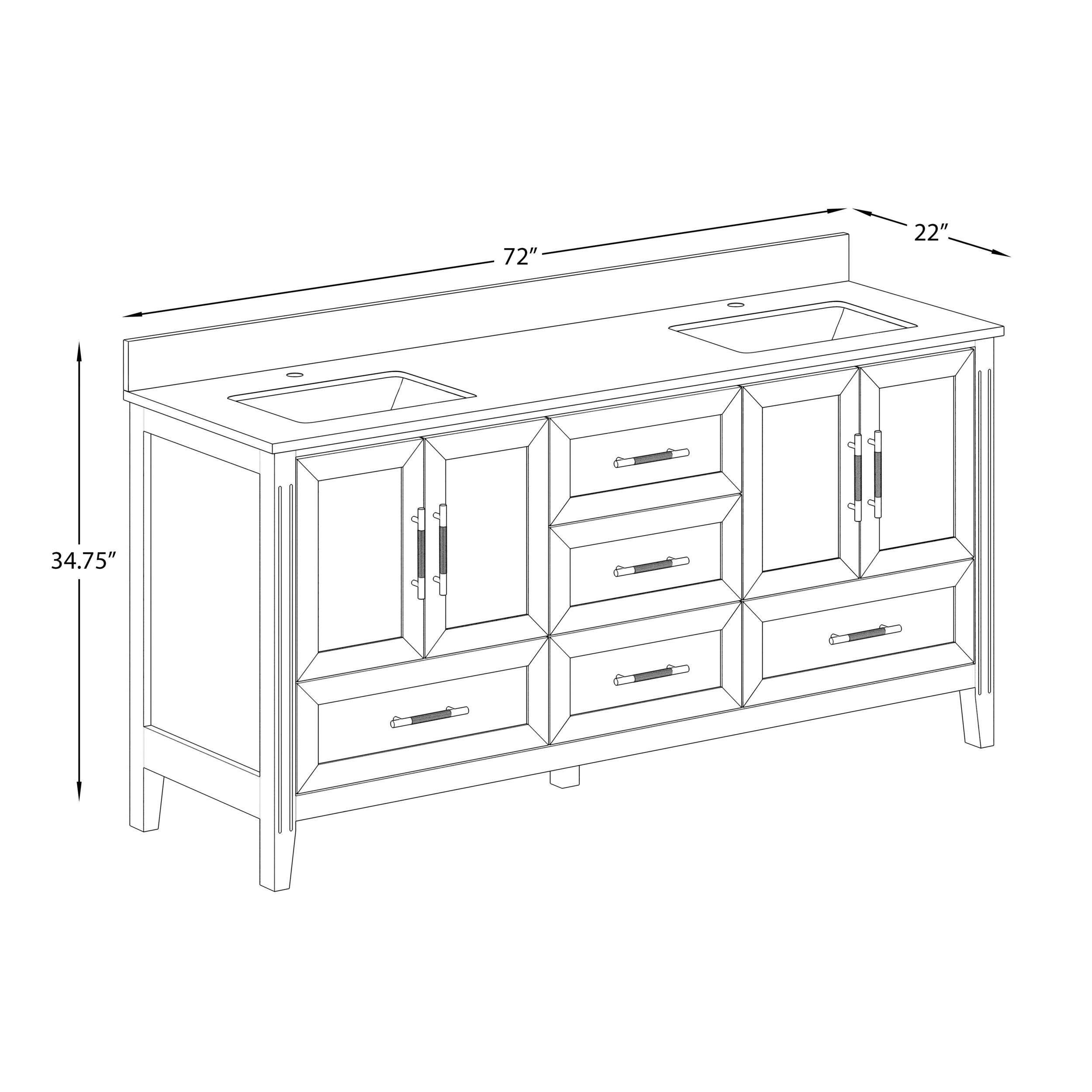 The Urban Bathe Houston Single Bathroom Vanity brings sleek style and organization to your bathroom. This spacious 72-inch bathroom vanity features a solid hardwood frame and durable white enamel finish, and the white diamond quartz countertop is pre-drilled for single faucet installation. The soft-closing cabinet doors and drawer glides also ensure smooth, quiet operation, with a removable organizer tidies inside the drawer as well.