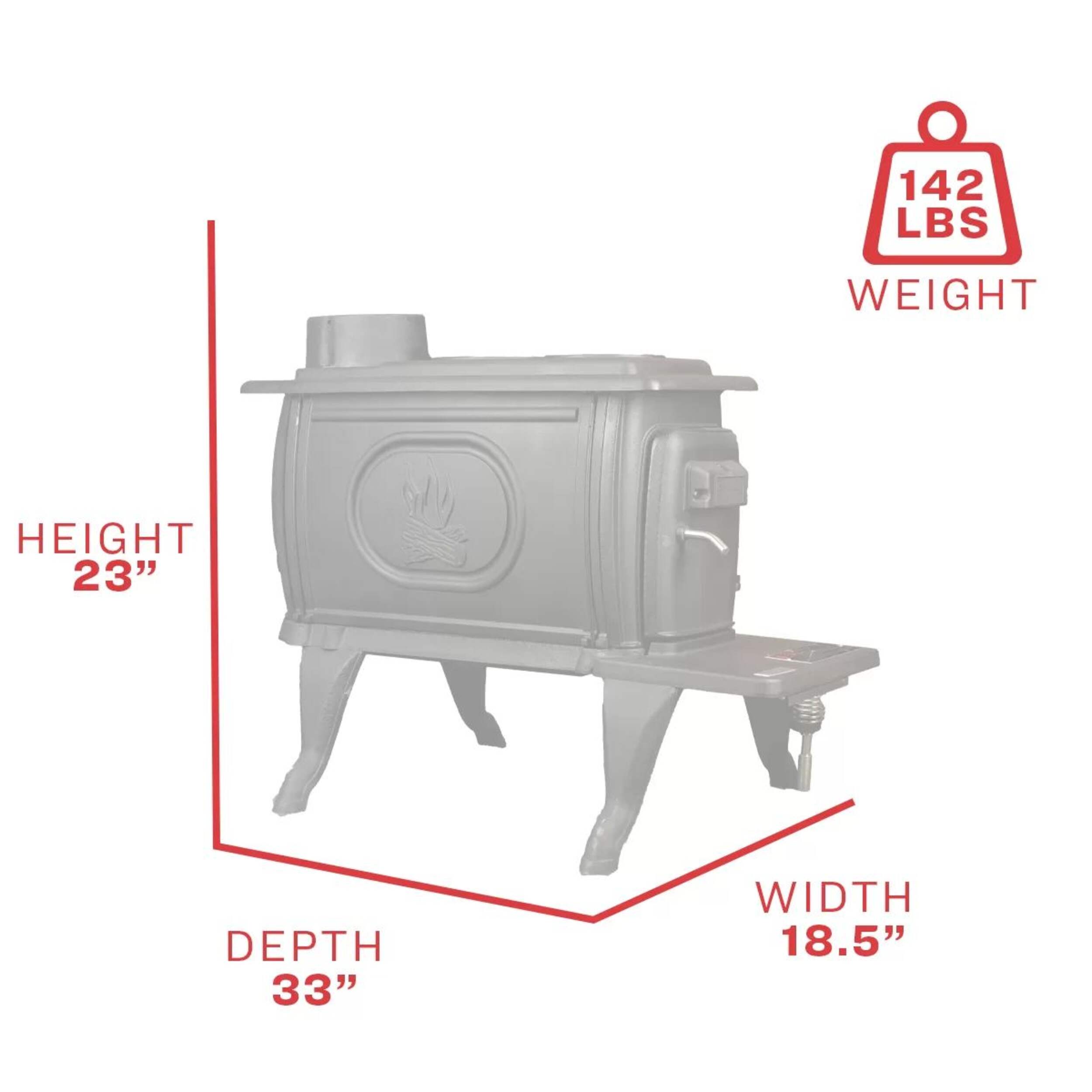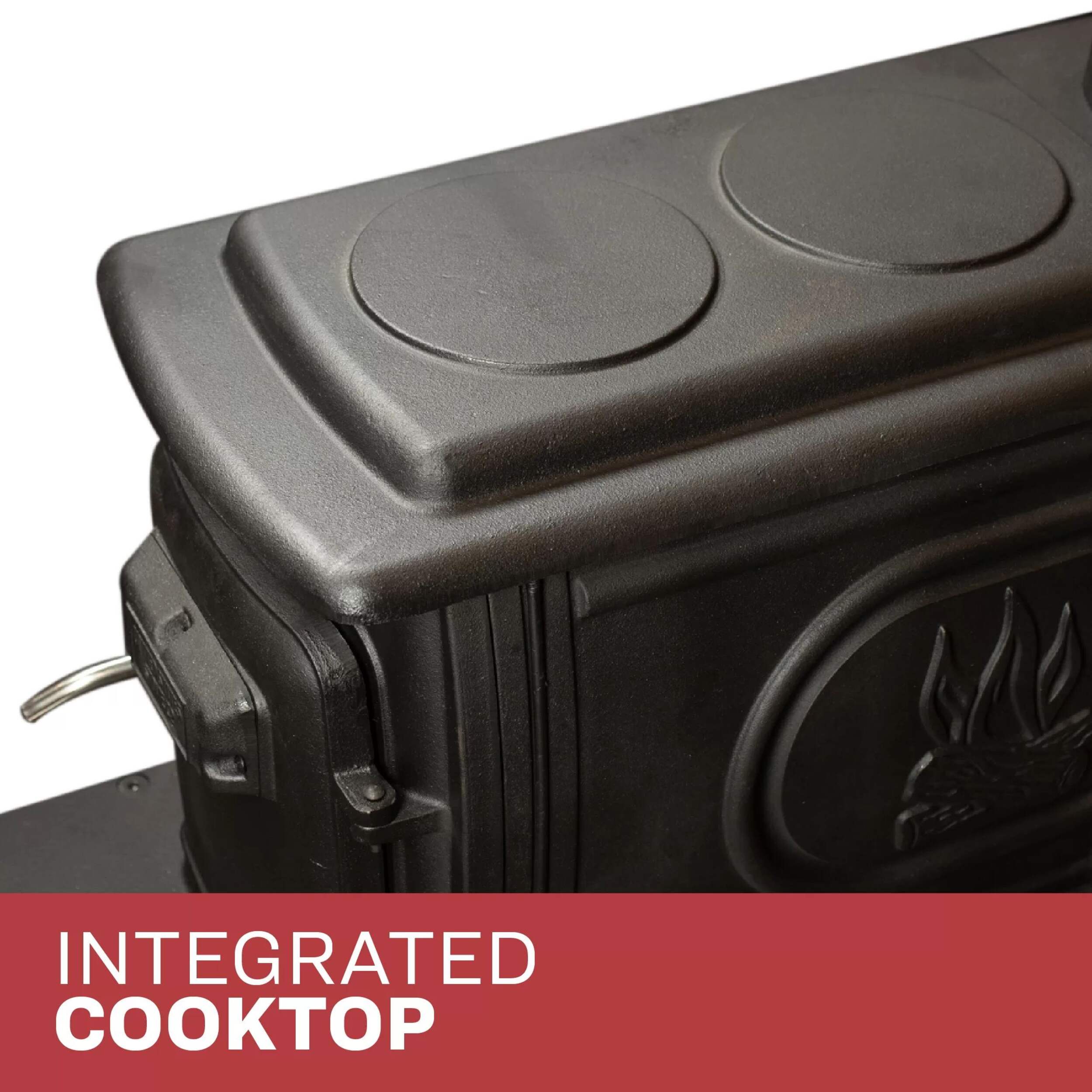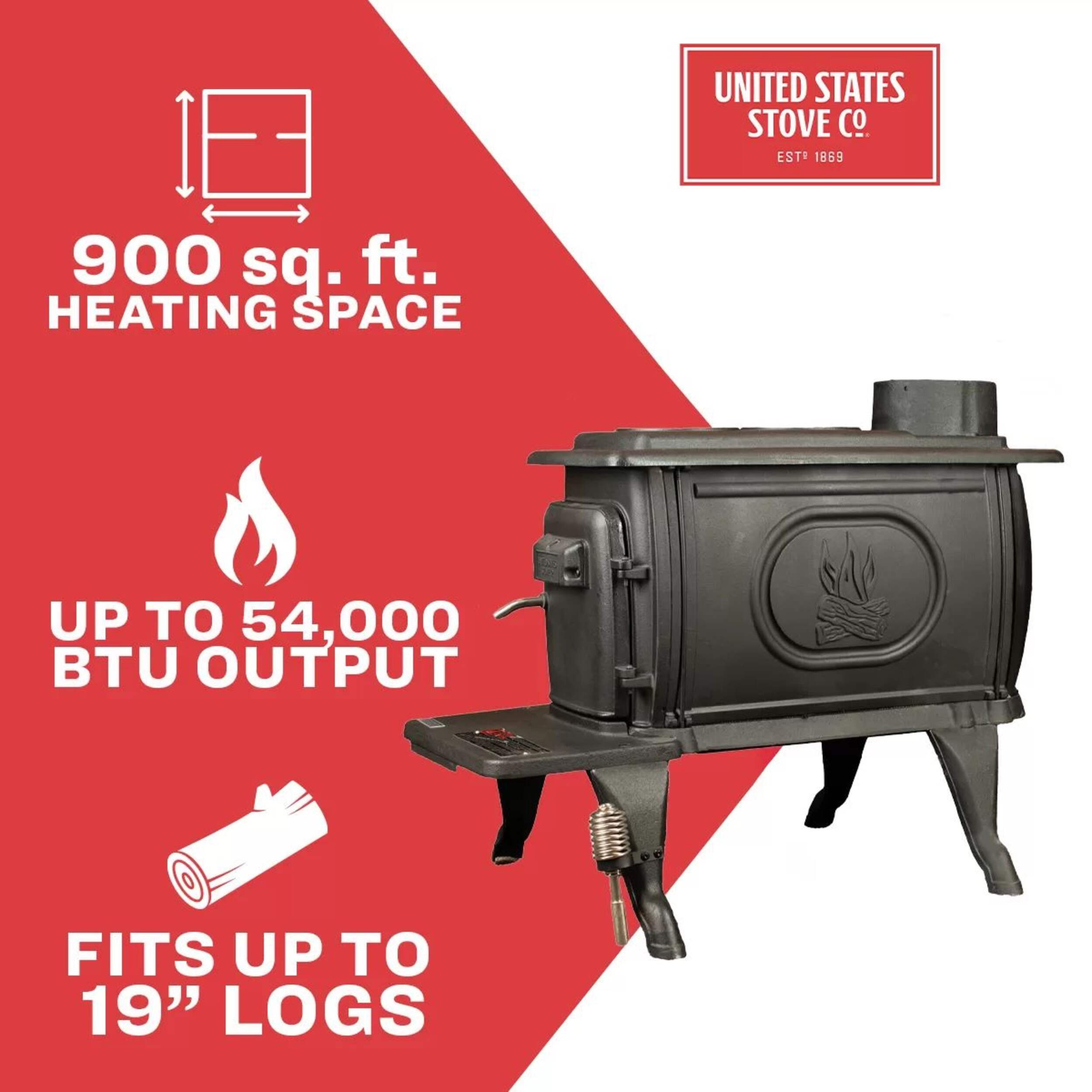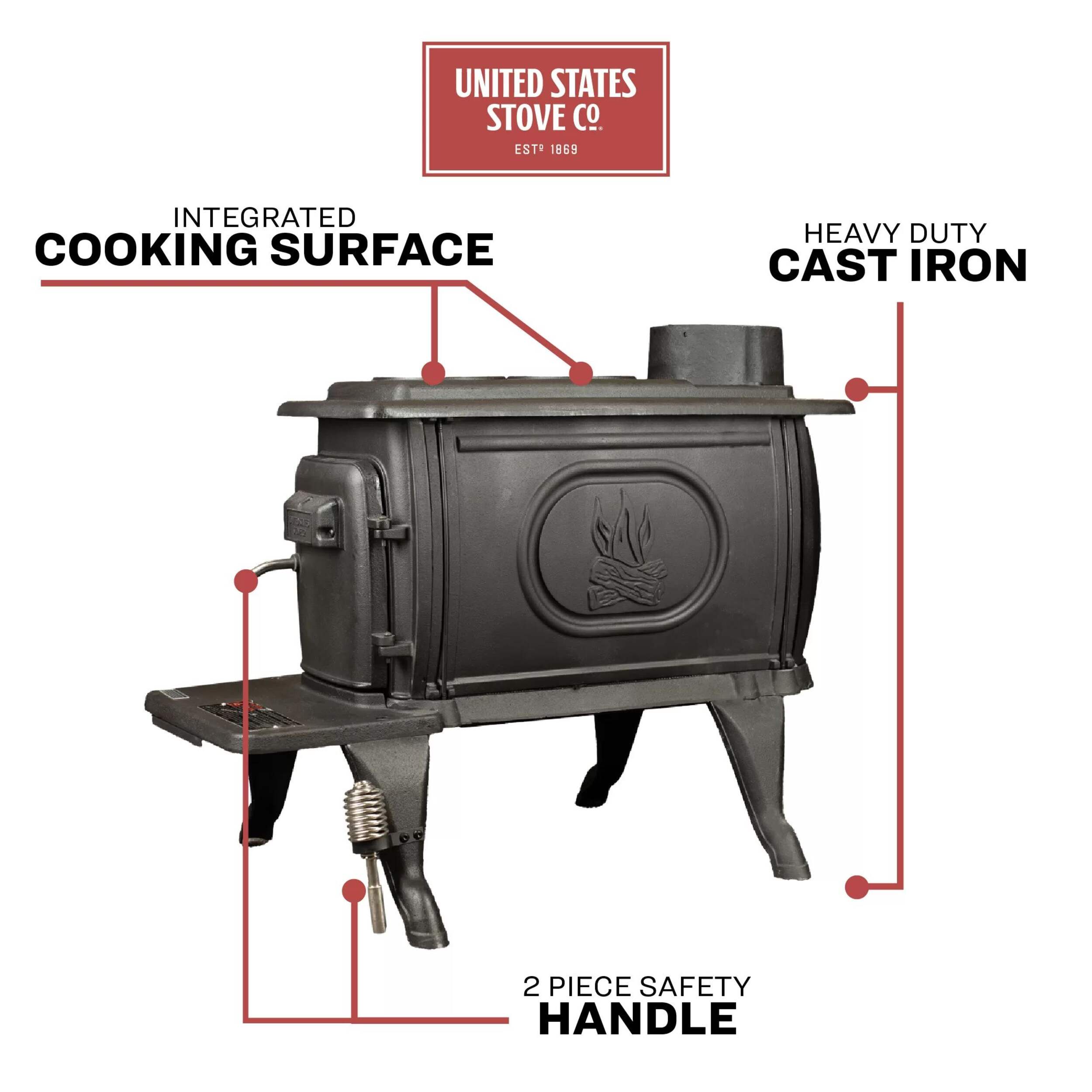 The US Stove Company Cast Iron Wood Stove is a fusion of classic style and modern technology. Constructed from robust cast iron with an elegant black wood door handle. The stove emits up to 54,000 BTUs of heat that’s capable of warming spaces of up to 900 square feet. It includes a handy built-in cooking surface on top.