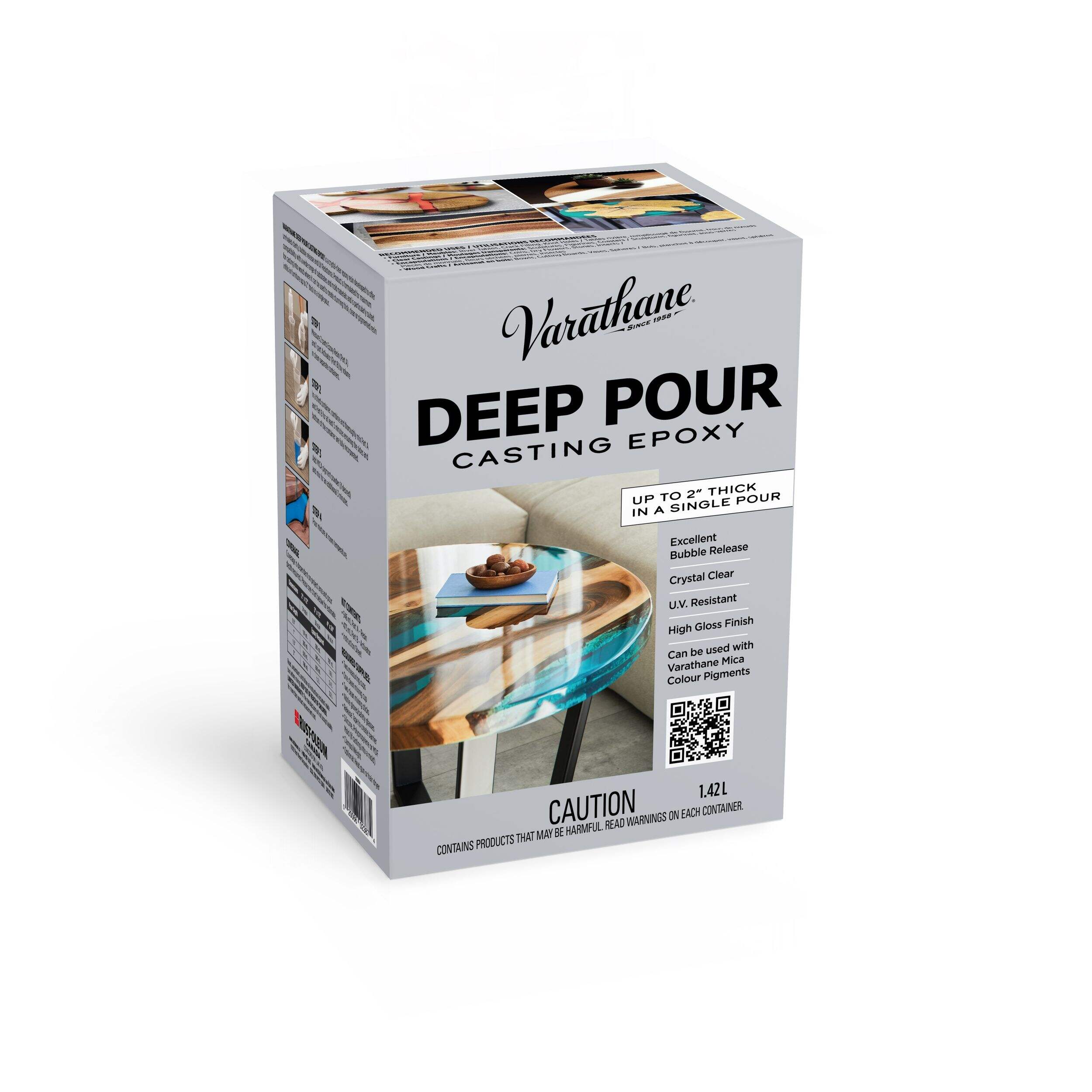 Varathane Deep Pour Epoxy Casting delivers crystal clarity and versatile bonding in a 1.42-L kit. Formulated for maximum compatibility across substrates like wood, this epoxy resin enables deep 2-inch pours in a single application. The easy flow and self-leveling properties provide exceptional bubble release for flawless high-gloss resin infills to enhance furniture.