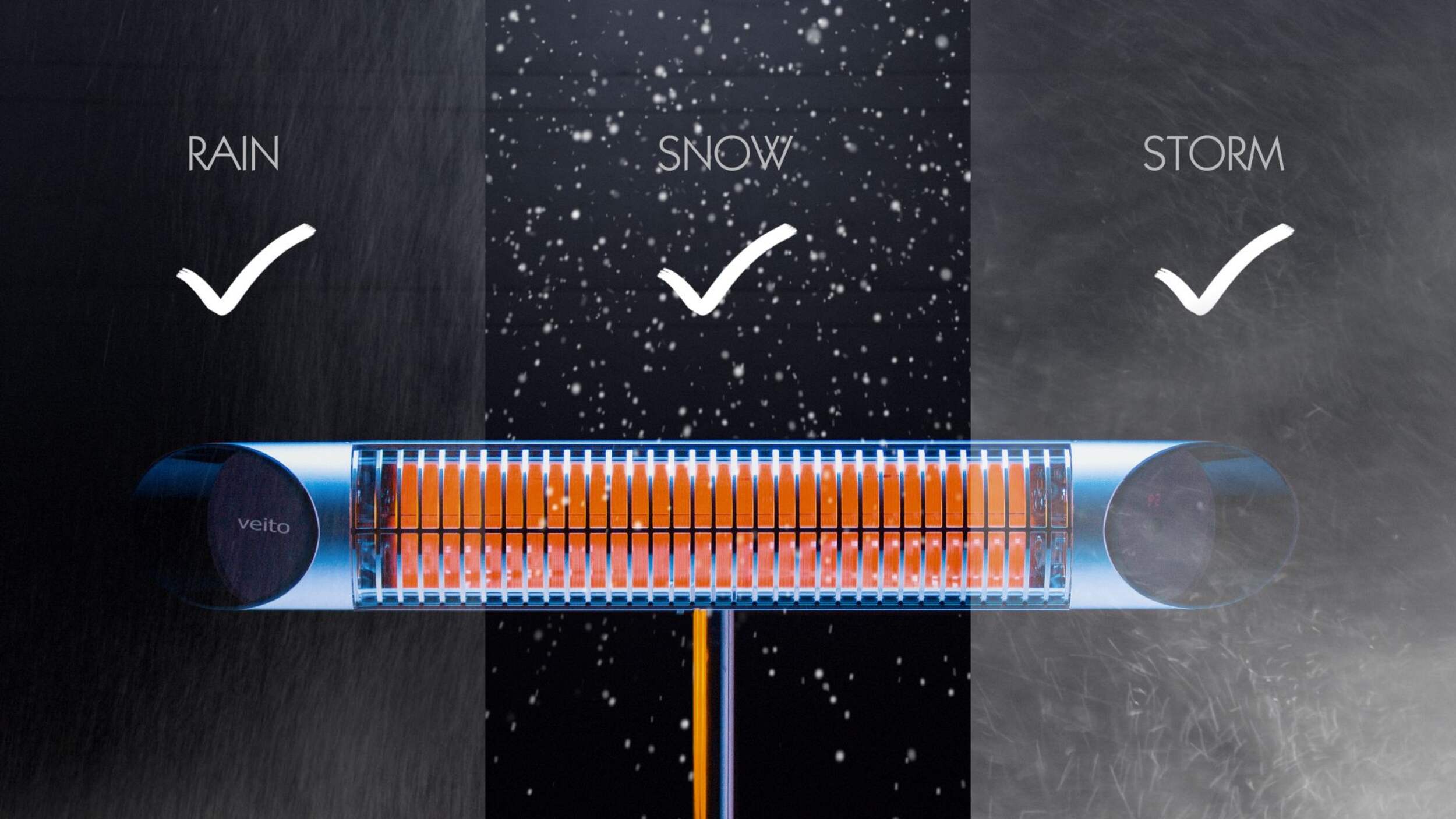 Veito Indoor/Outdoor Blade Infrared Heater provides instant heat with the new carbon heating technology