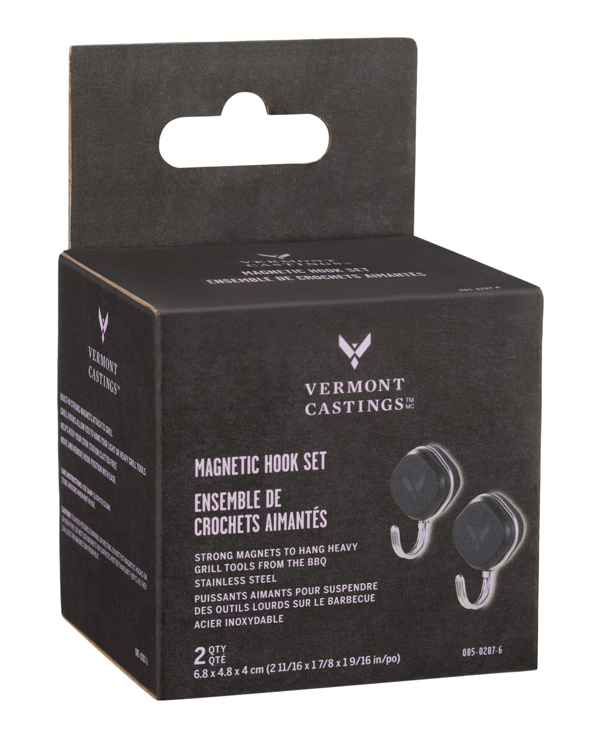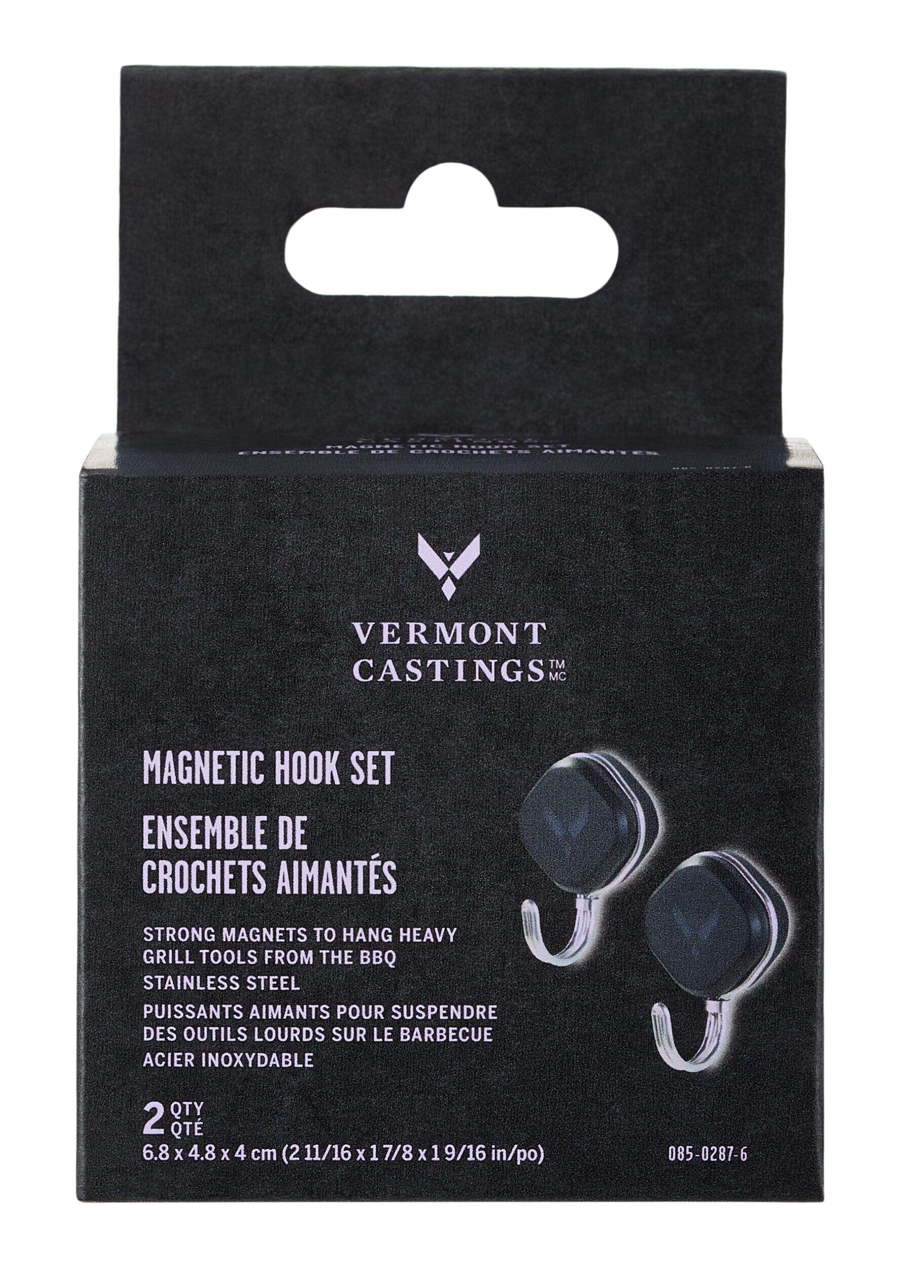 Organize your grilling space with the Vermont Castings Stainless Steel Magnetic BBQ Grill Hook Set. Featuring built-in strong magnets, these hooks easily attach to your grill, providing a secure spot for hanging both light and heavy grill tools. Keep your cooking station clutter-free and efficient by having your tools within easy reach. The hooks are designed for effortless positioning, allowing you to move and remove them as needed.