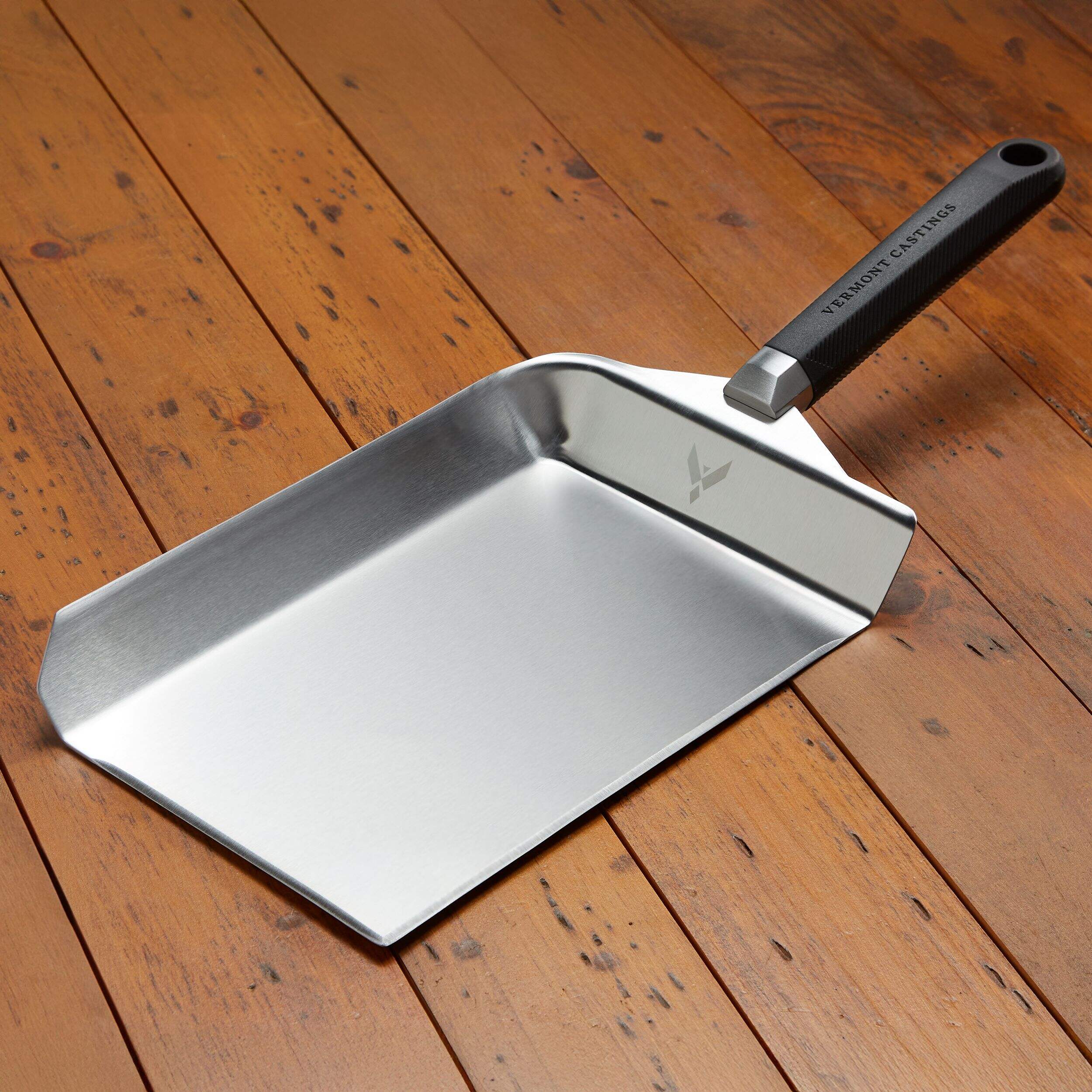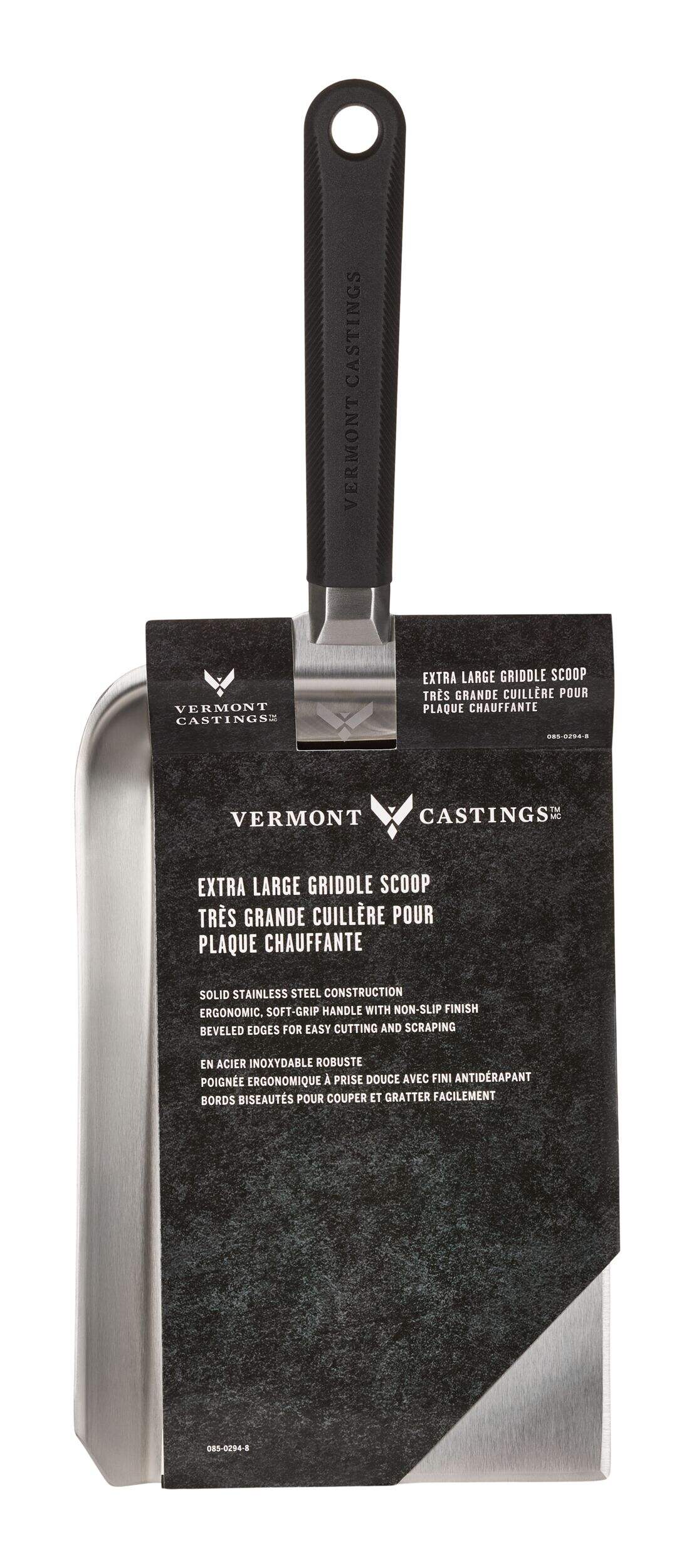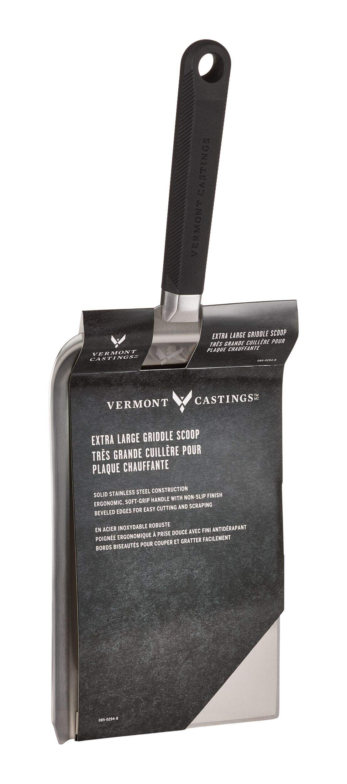 Upgrade your griddle toolkit with the Vermont Castings XL Stainless Steel Griddle Scoop, designed for ultimate performance and convenience. This handy griddle food mover is ideal for serving or mixing large quantities of food efficiently on your flattop, including rice, scrambled eggs, diced vegetables and more. Crafted from durable solid stainless steel, the griddle scoop is built to last through countless cookouts. The ergonomic, soft-grip handles with a non-slip finish provide superior comfort and control, ensuring a secure hold even in the heat of griddle cooking. Featuring beveled edges, the tools are perfect for easy cutting and scraping, making your cooking process smoother. Enhance your griddling experience with the Vermont Castings XL Stainless Steel Griddle Scoop.