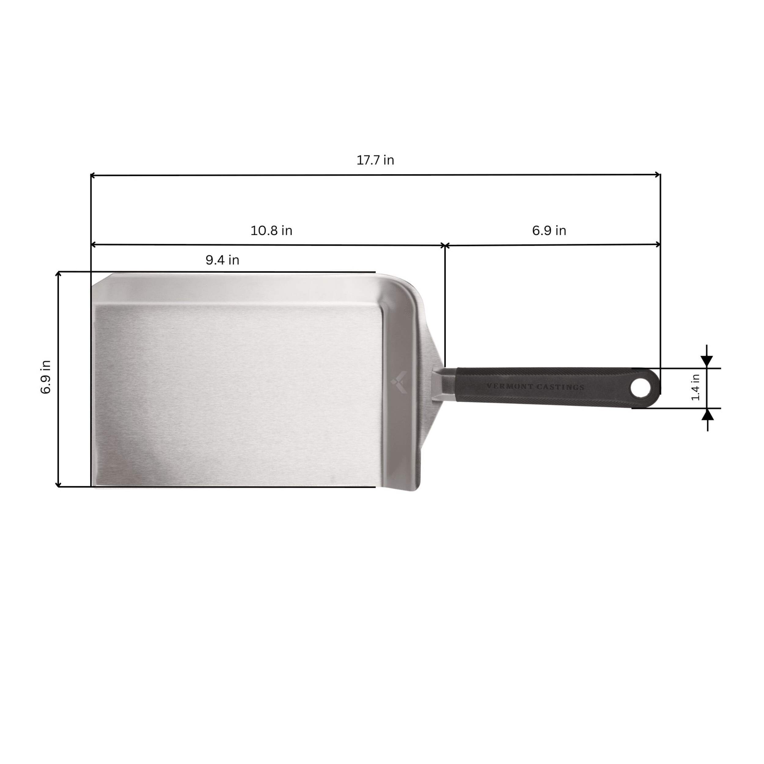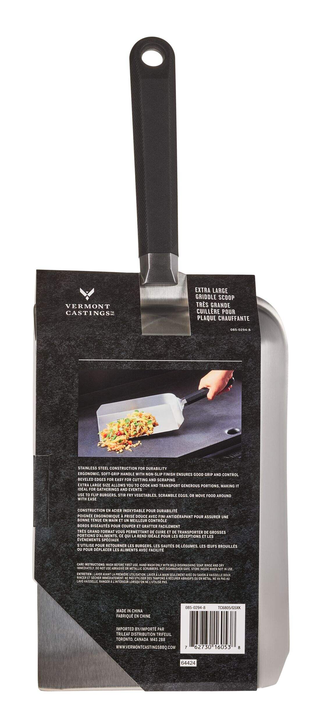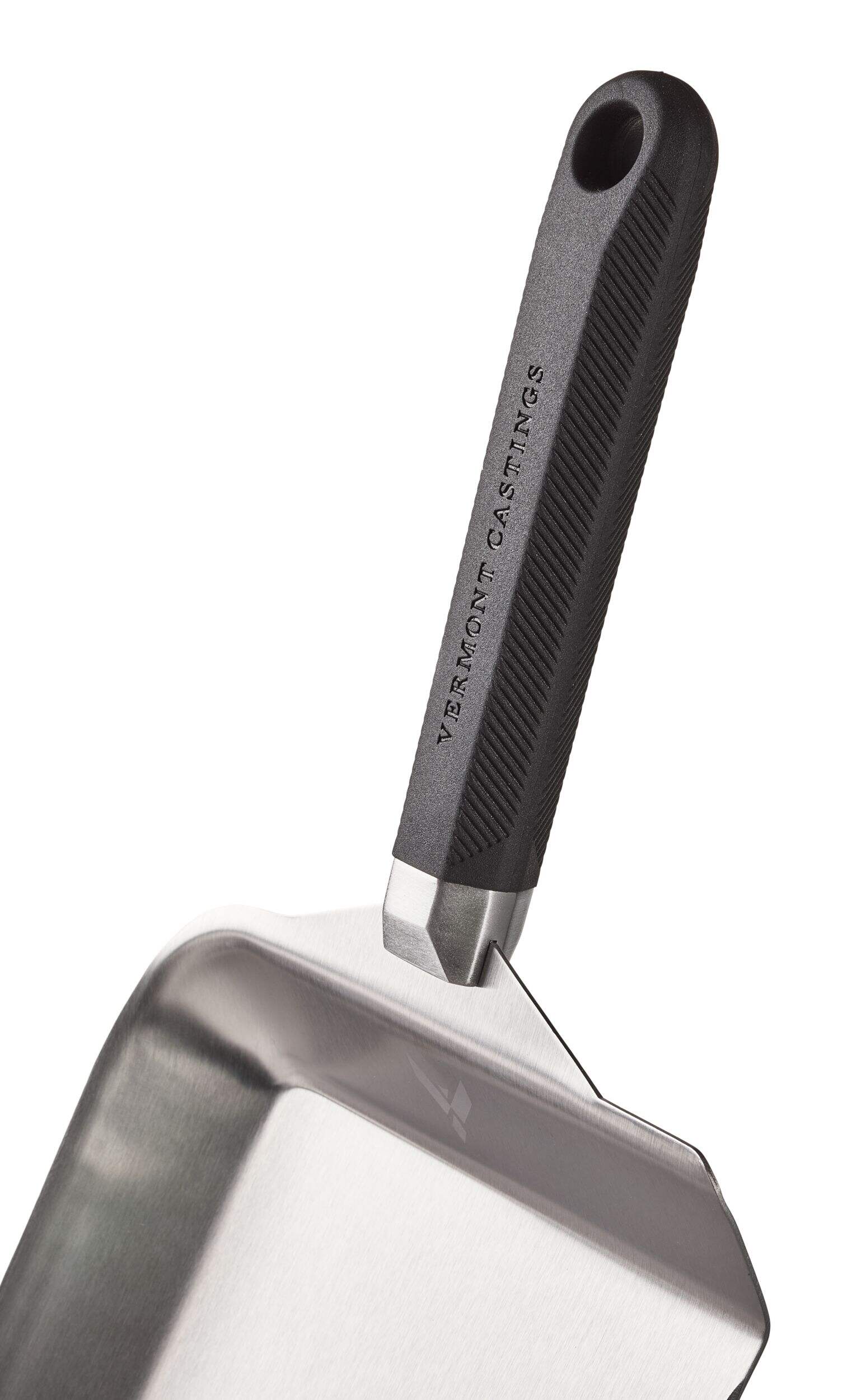 Upgrade your griddle toolkit with the Vermont Castings XL Stainless Steel Griddle Scoop, designed for ultimate performance and convenience. This handy griddle food mover is ideal for serving or mixing large quantities of food efficiently on your flattop, including rice, scrambled eggs, diced vegetables and more. Crafted from durable solid stainless steel, the griddle scoop is built to last through countless cookouts. The ergonomic, soft-grip handles with a non-slip finish provide superior comfort and control, ensuring a secure hold even in the heat of griddle cooking. Featuring beveled edges, the tools are perfect for easy cutting and scraping, making your cooking process smoother. Enhance your griddling experience with the Vermont Castings XL Stainless Steel Griddle Scoop.