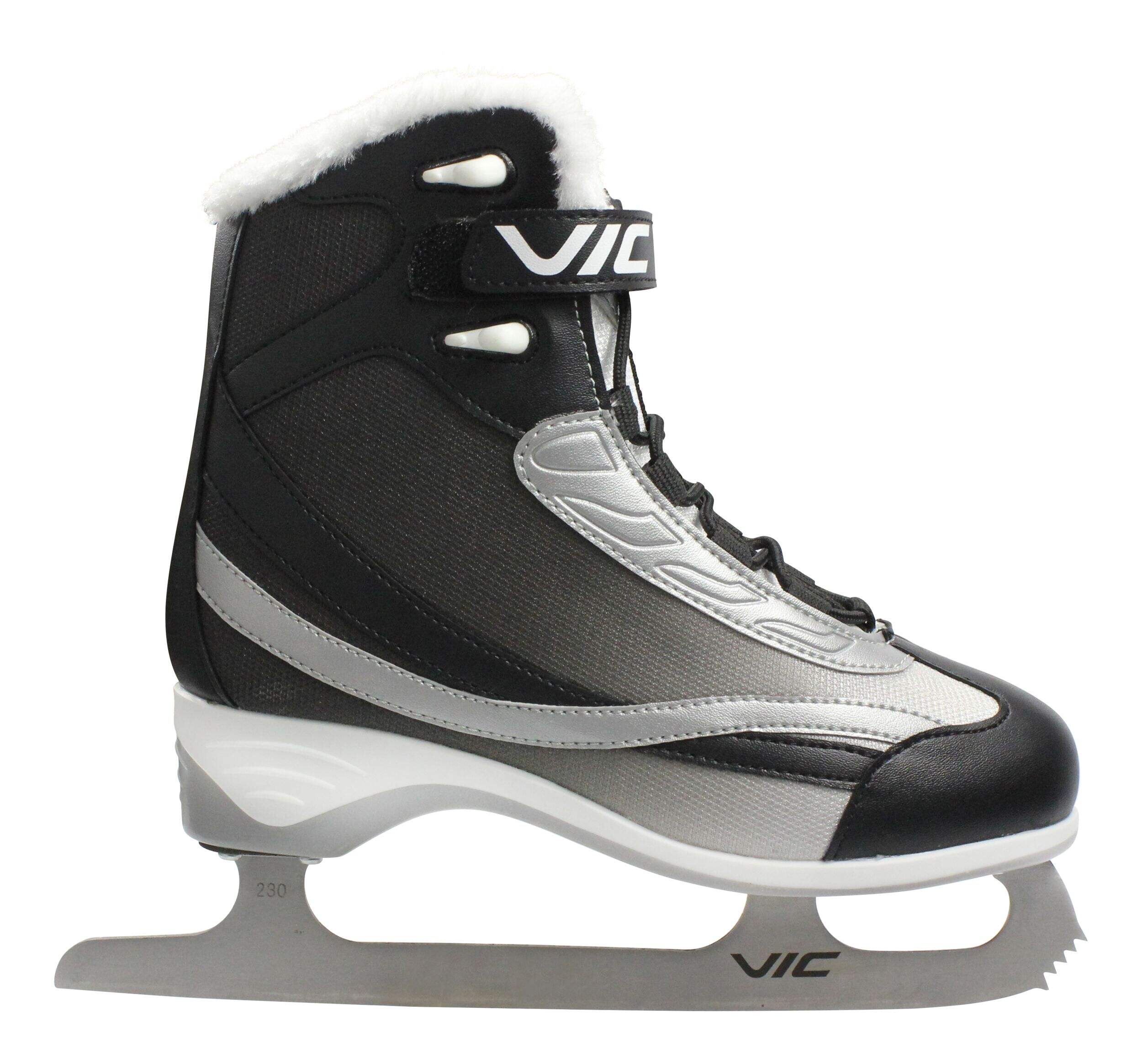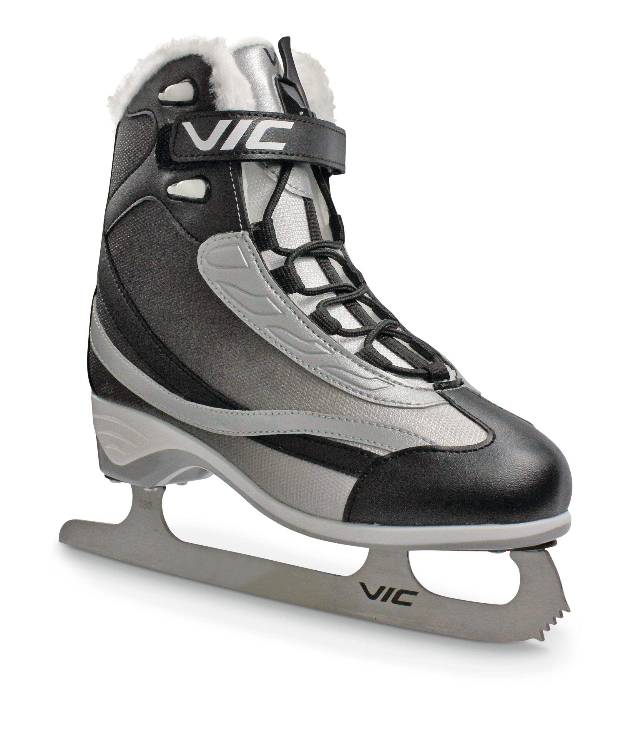 Comfortable and chic, VIC Motion Women's Recreational Skates will get you noticed at the rink. These ice skates feature a nickel-plated stainless steel blade to prevent rust, along with a thick exterior for impact absorption. The toe pick on the front of the blade provides added traction, while the thick liner adds some extra comfort and warmth. Finished with a quick lace system with a power strap for easy on and off, these ice skates are ready to hit the ice.