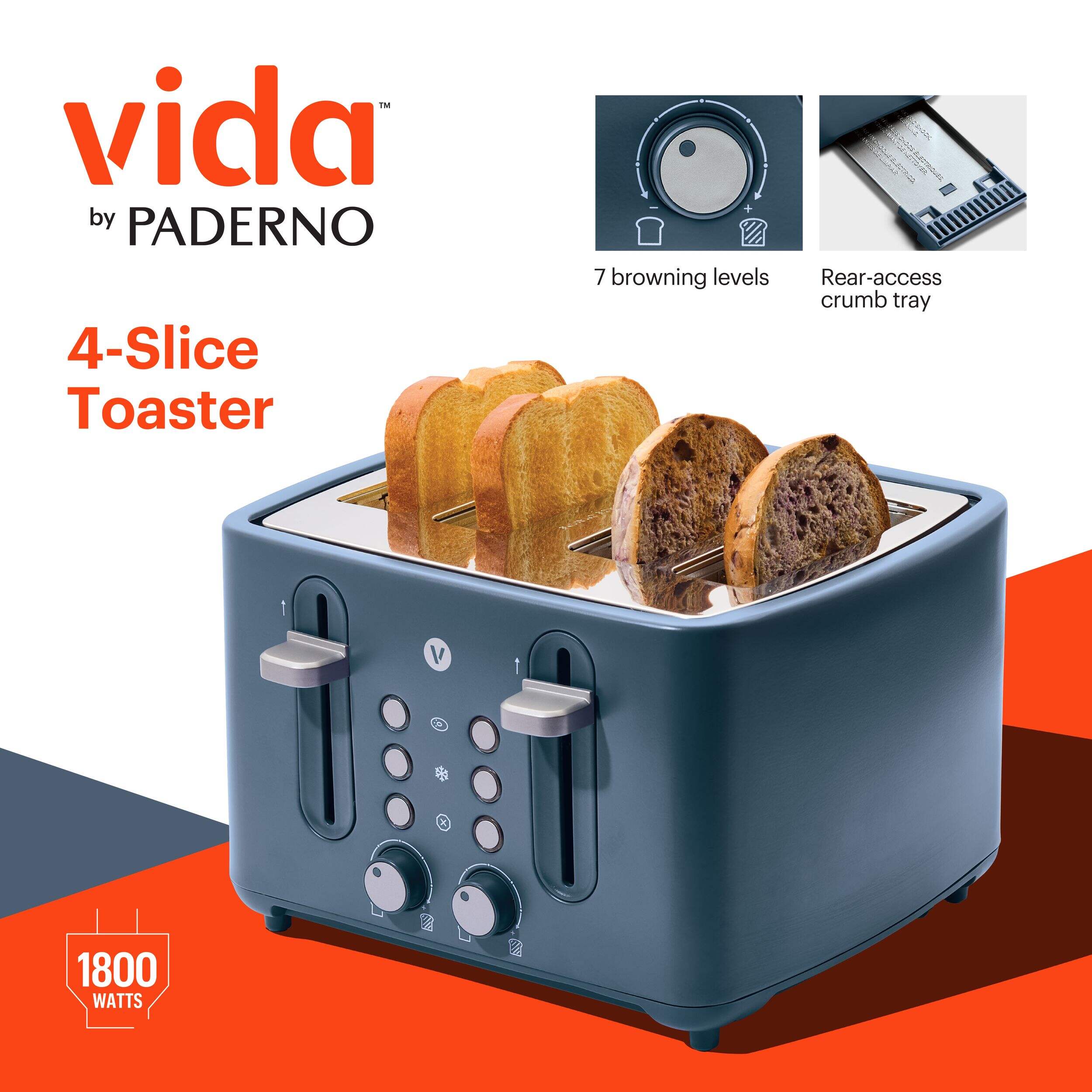 Elevate your breakfast experience with the Vida 4-Slice Toaster in Bluefin. Designed to accommodate a variety of breads and bagels, this toaster features extra-wide slots and multiple functions to ensure perfect toasting every time. Its sleek blue finish adds a stylish touch to any kitchen.