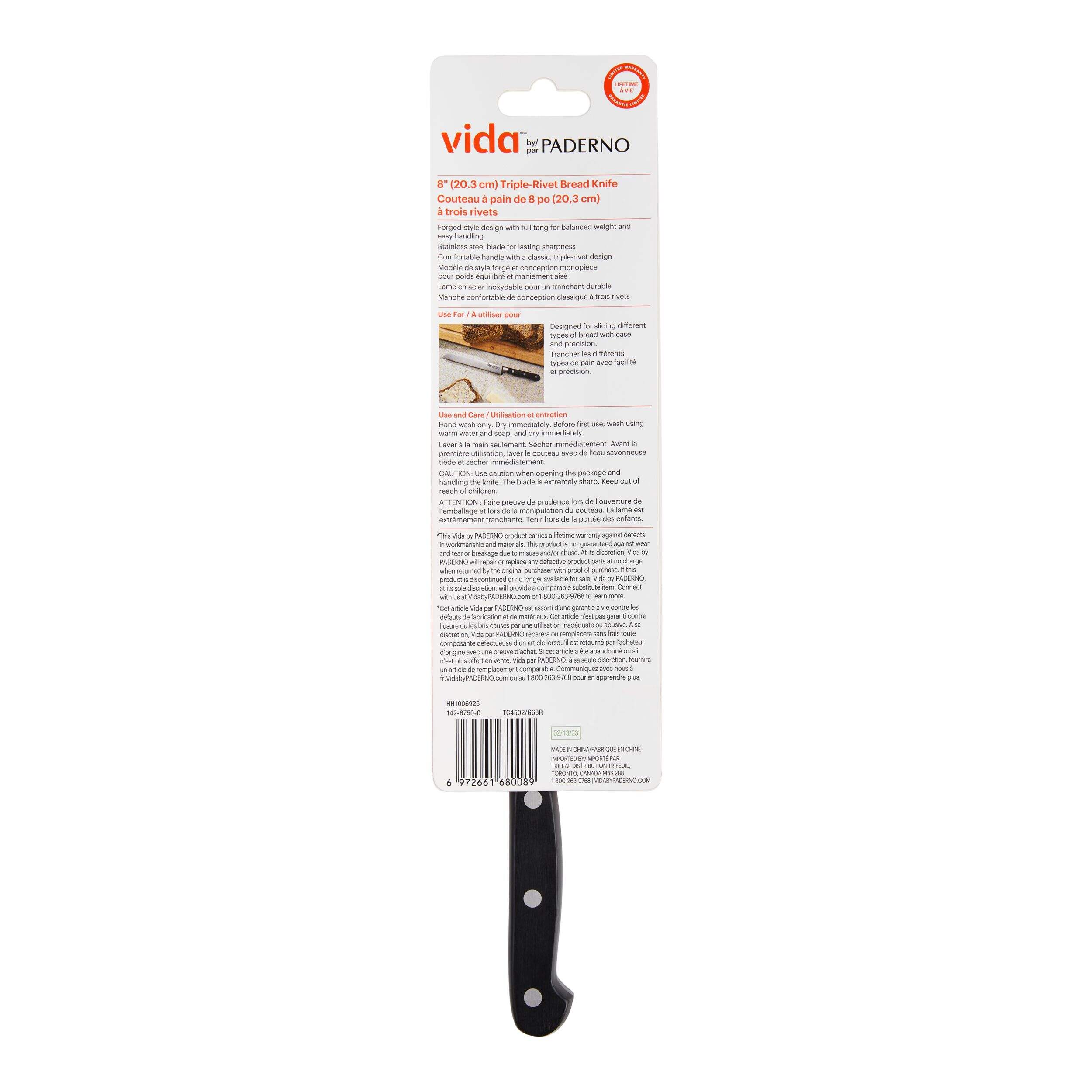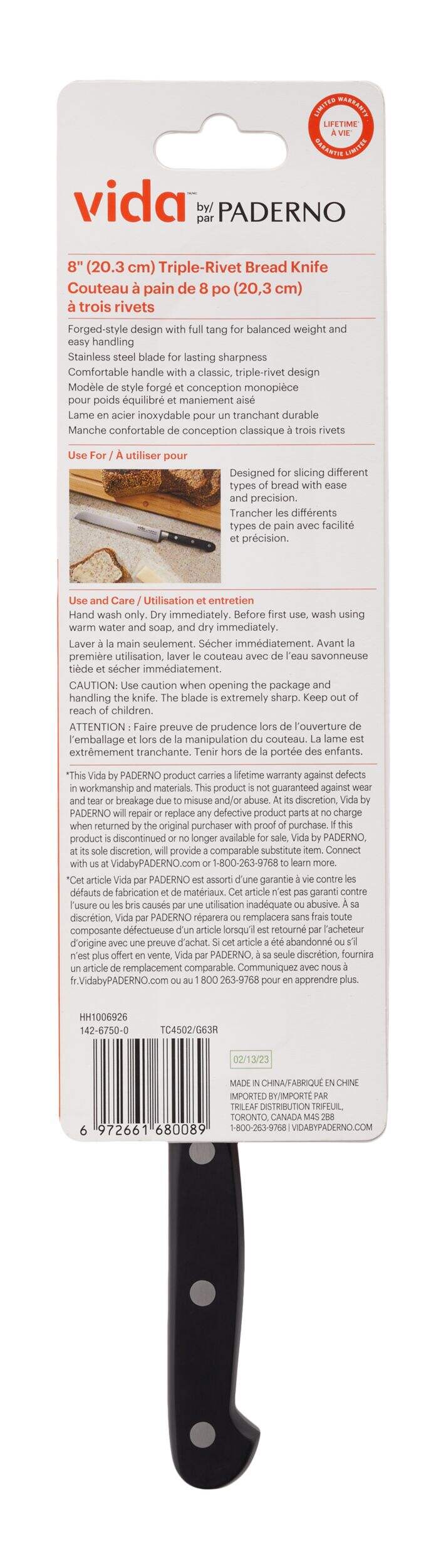 Vida by PADERNO Bread Knife has triple-rivet handles for modern design