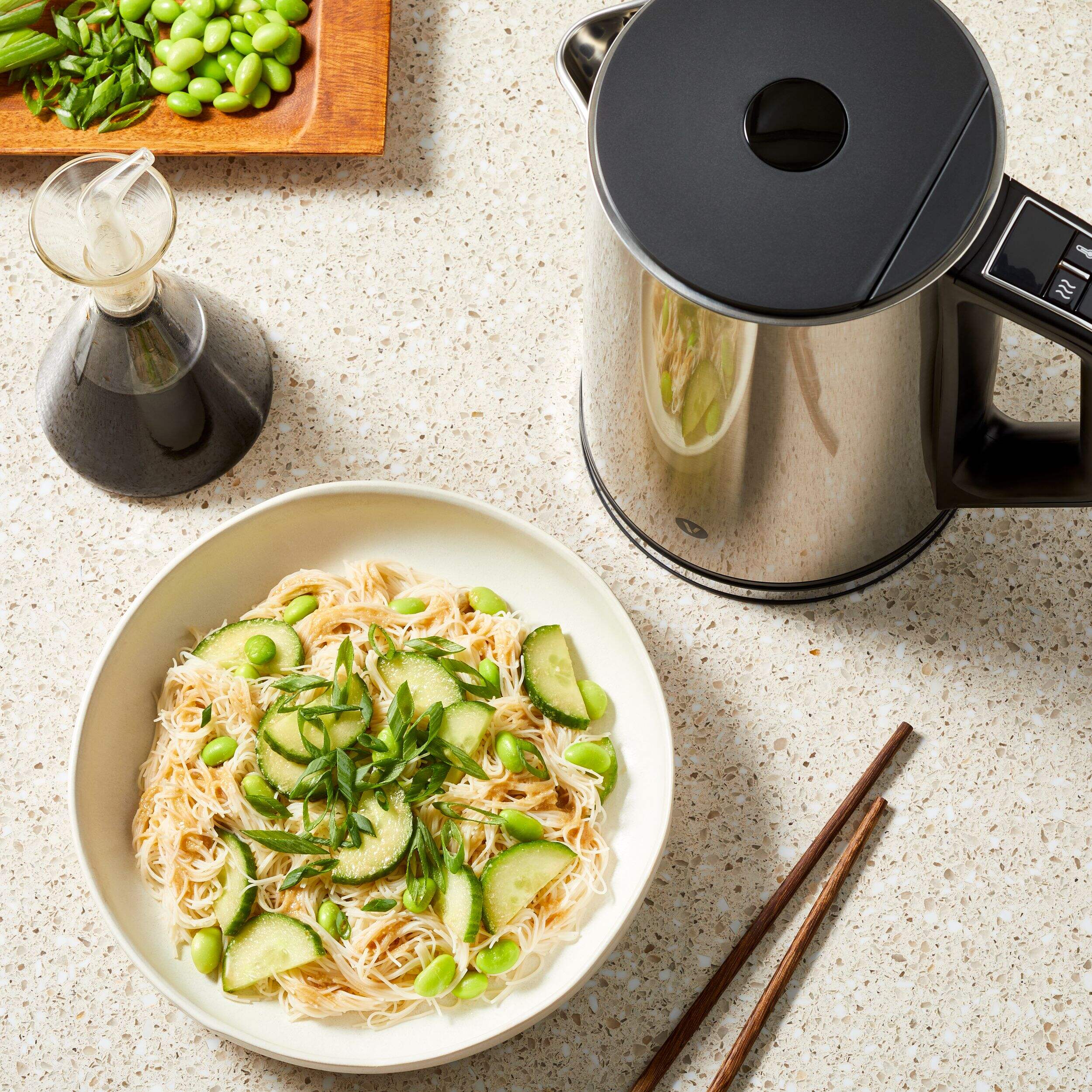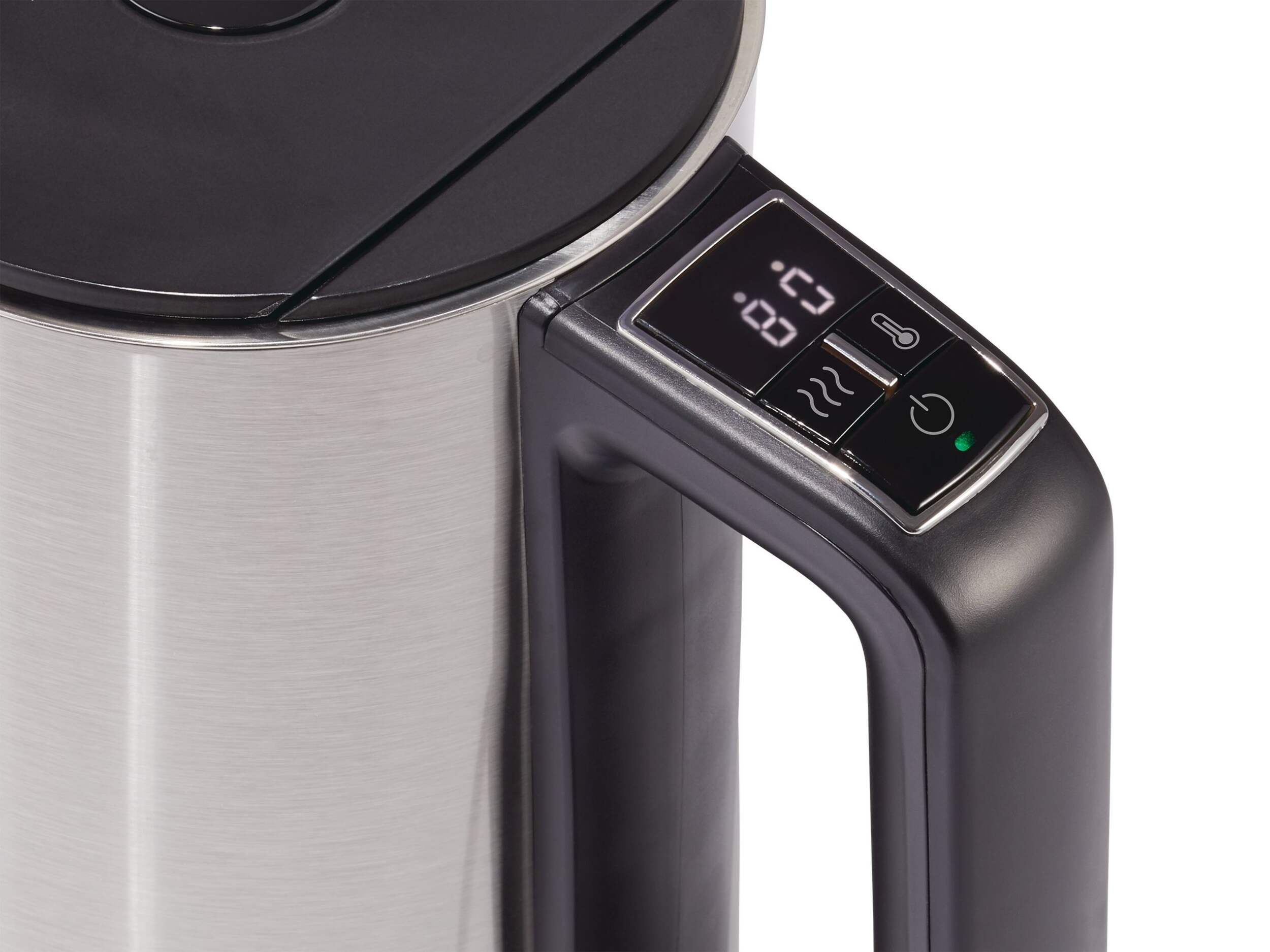 Make delicious coffee, tea, and other hot beverages with ease with the Vida by PADERNO Cordless Temperature Control Stainless Steel Electric Kettle. It features a double stainless steel wall to help keep you safe, since the exterior will stay cooler to the touch. It plugs into your standard outlet to heat water, so you don't have to use a stove top. The tea kettle features a 360-degree stainless steel power base along with an easy-to-use pop-up lid for easier effortless filling. It also has a white LED digital control, so you can easily see what you're setting, and a temperature display so you know when it's reached your intended temperature. The cordless electric kettle has variable temperature control from 40 degrees Celsius to 100 degrees Celsius, seperated by 10 degrees per setting for more personalized control. There's also a 30-minute keep-warm function that will keep your water piping hot and ready to enjoy, making it ideal for serving multiple people or for when you want a second cup. This electric kettle also has an auto shut-off after the keep-warm time is up, and a boil dry protection that will turn the tea kettle off when the water is out.