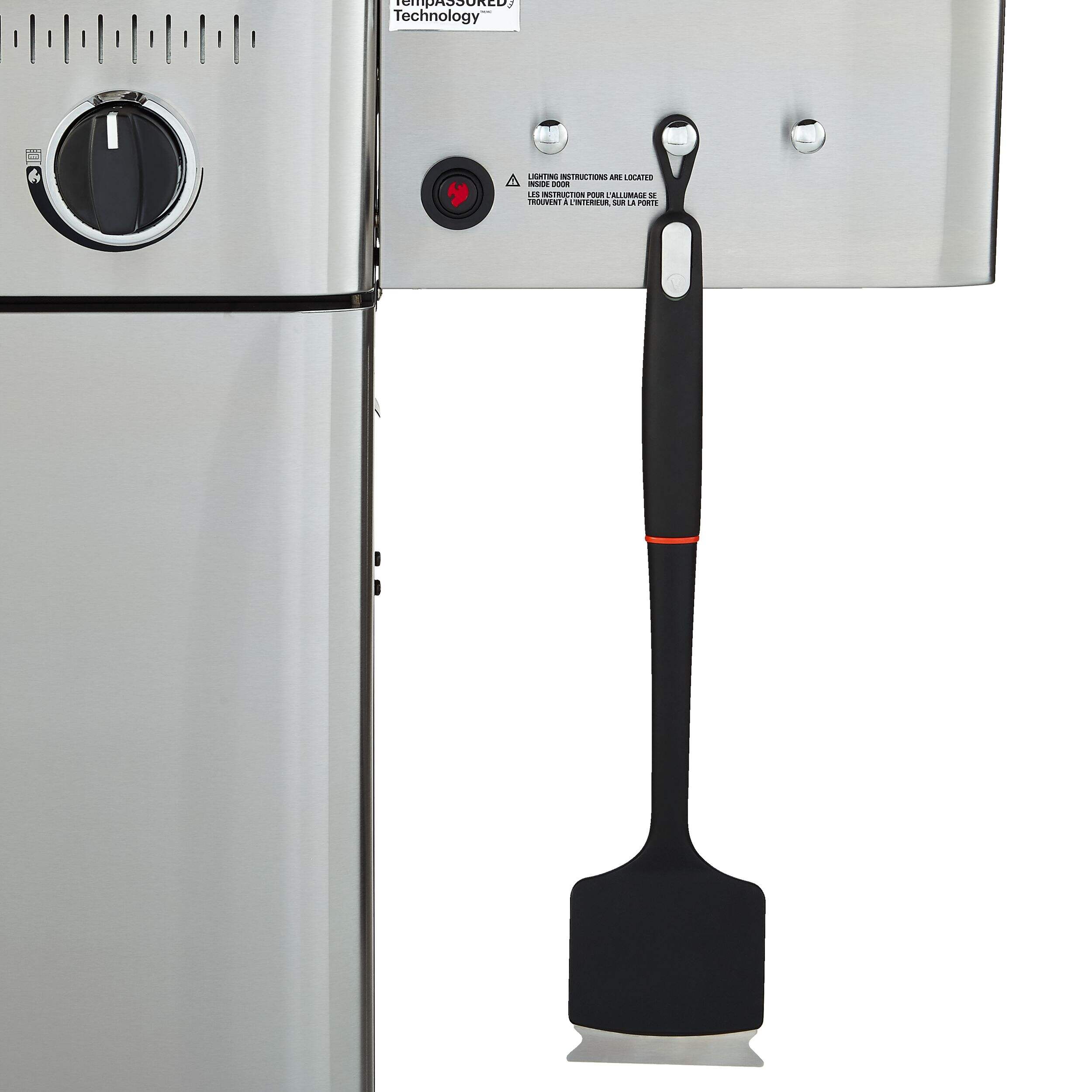 The Vida by PADERNO Grill Brush with Nylon Bristle & Removable Head For Cleaning BBQ Grill & Grates, features rugged, grit-infused bristles for increased cleaning ability. The grill cleaner has a removable head for easy cleaning and replacement. This grill-cleaning tool virtually eliminates the safety concerns associated with wire bristles. Its high-quality bristles are heat-safe up to 340 °F, so you can safely use this brush on a cool grill. This BBQ cleaning brush is ideal for cleaning porcelain and chrome wire grids and cast iron grates. Burnt-on food or grease on the grate, this BBQ grill brush keeps your grill ready for the next round of cooking.