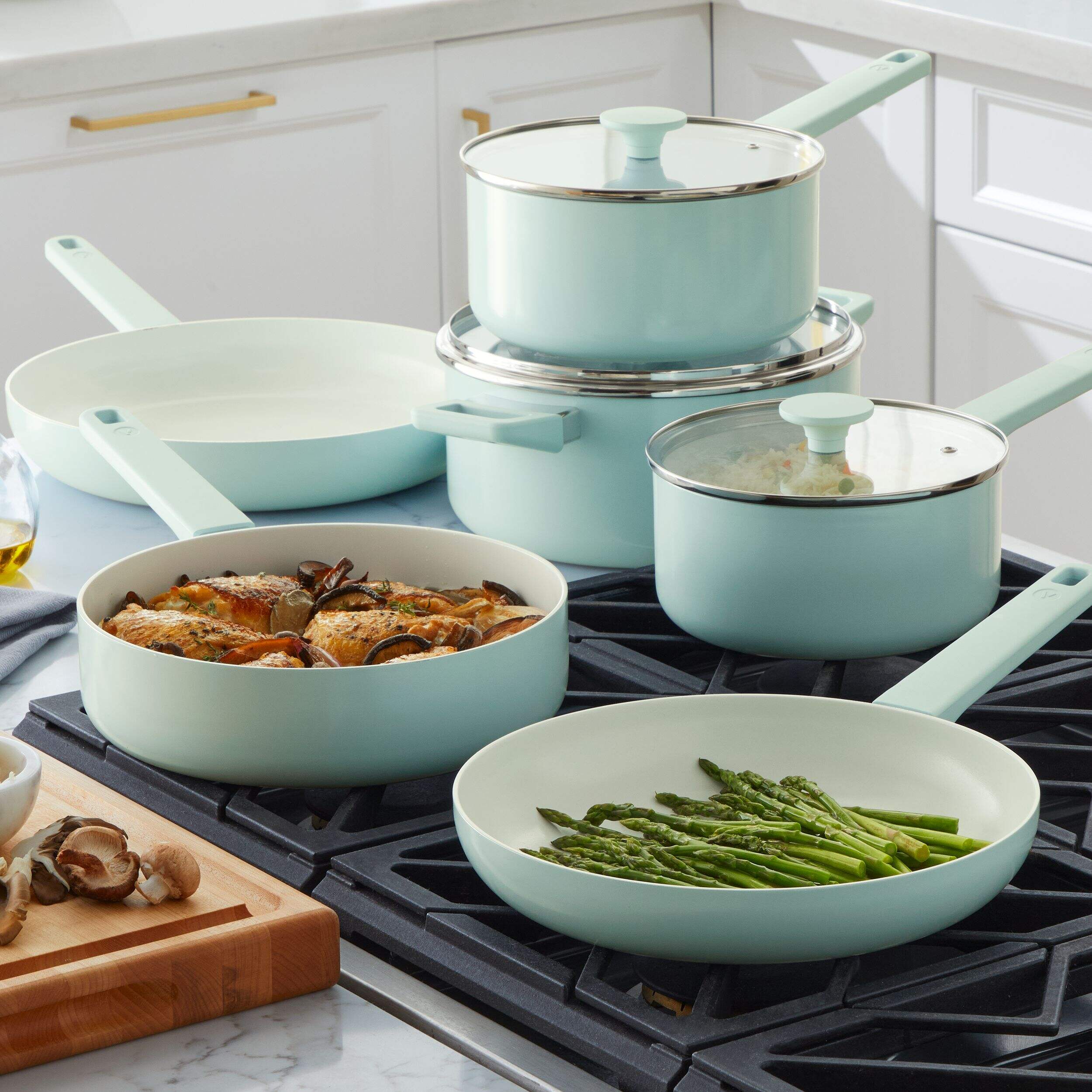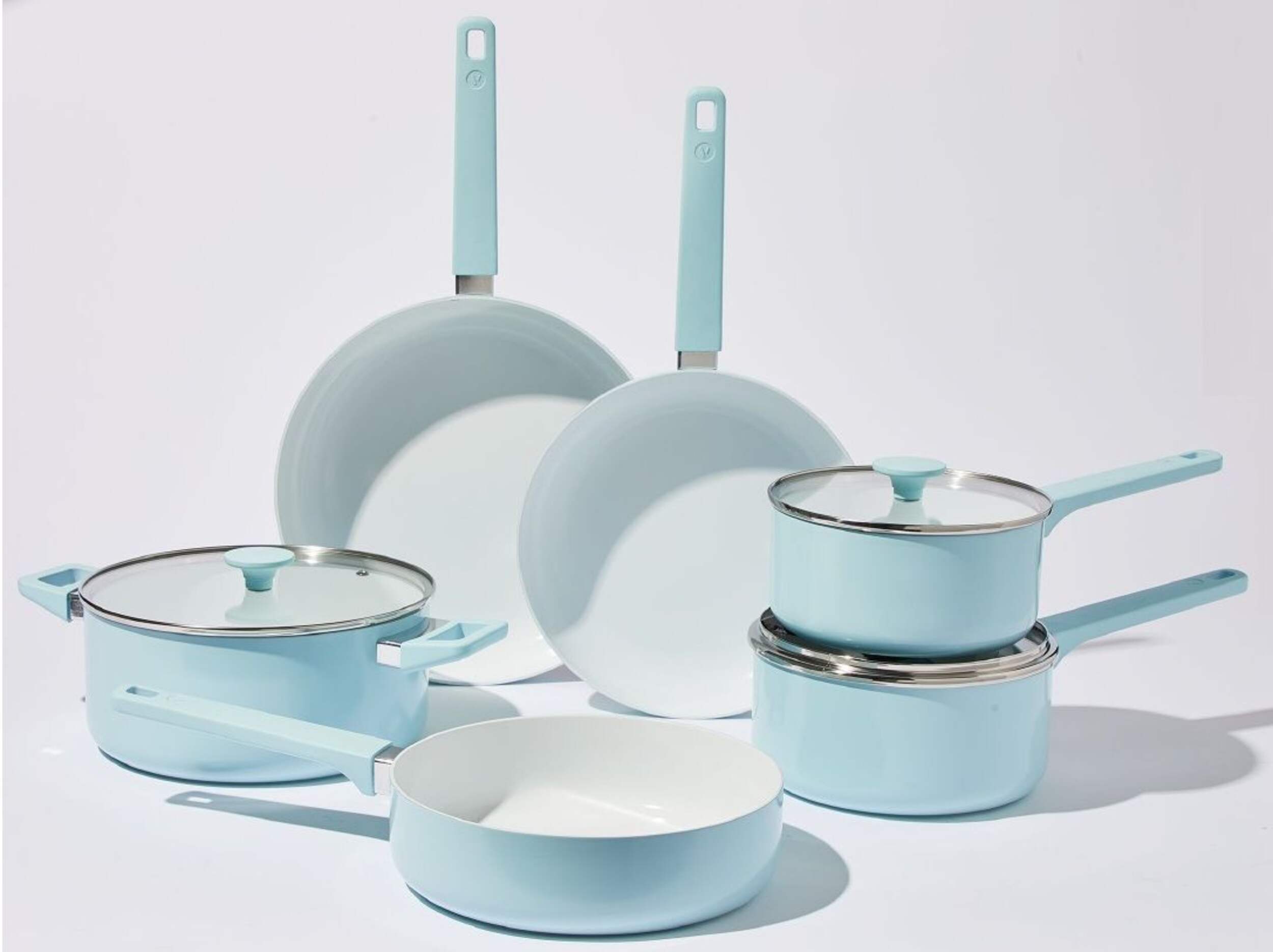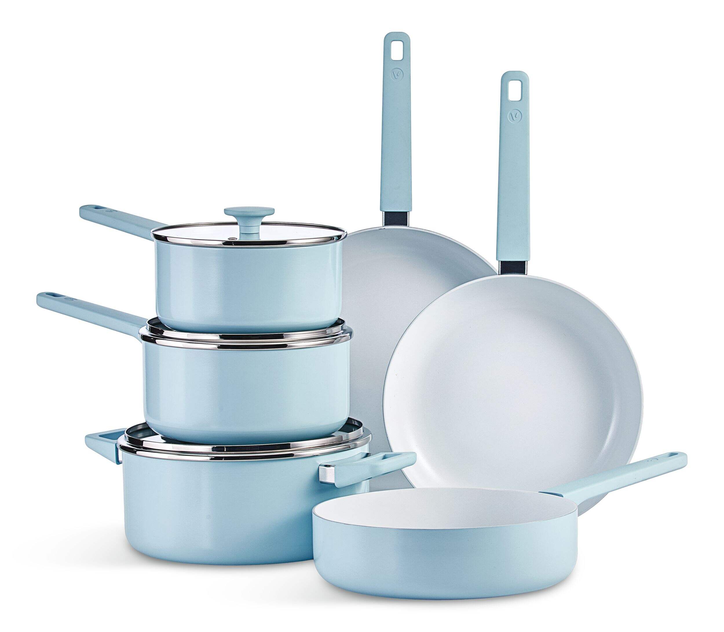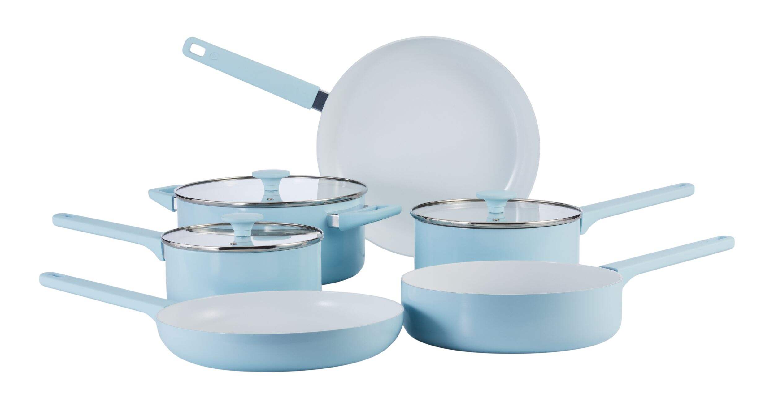 This 9-piece cookset includes: 2.2-qt saucepan with lid, 2.9-qt saucepan with lid, 5-qt casserole with lid, 10" frypan, 12" frypan, and 3-qt jumbo cooker (shares lid with 5-qt)